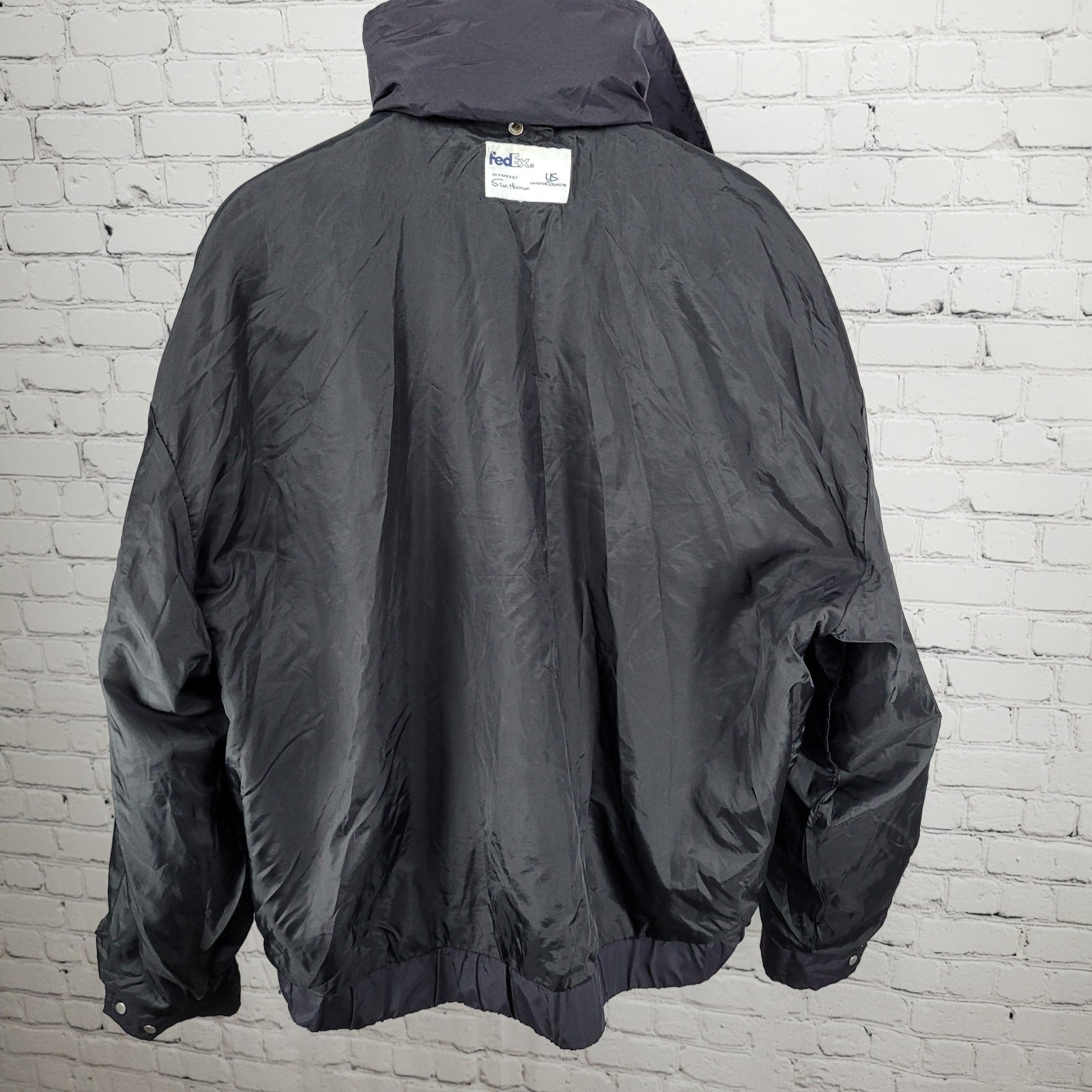 Fedex Black Double Zip Hideable Hood Relflective Windbreaker Jacket Size 3XL