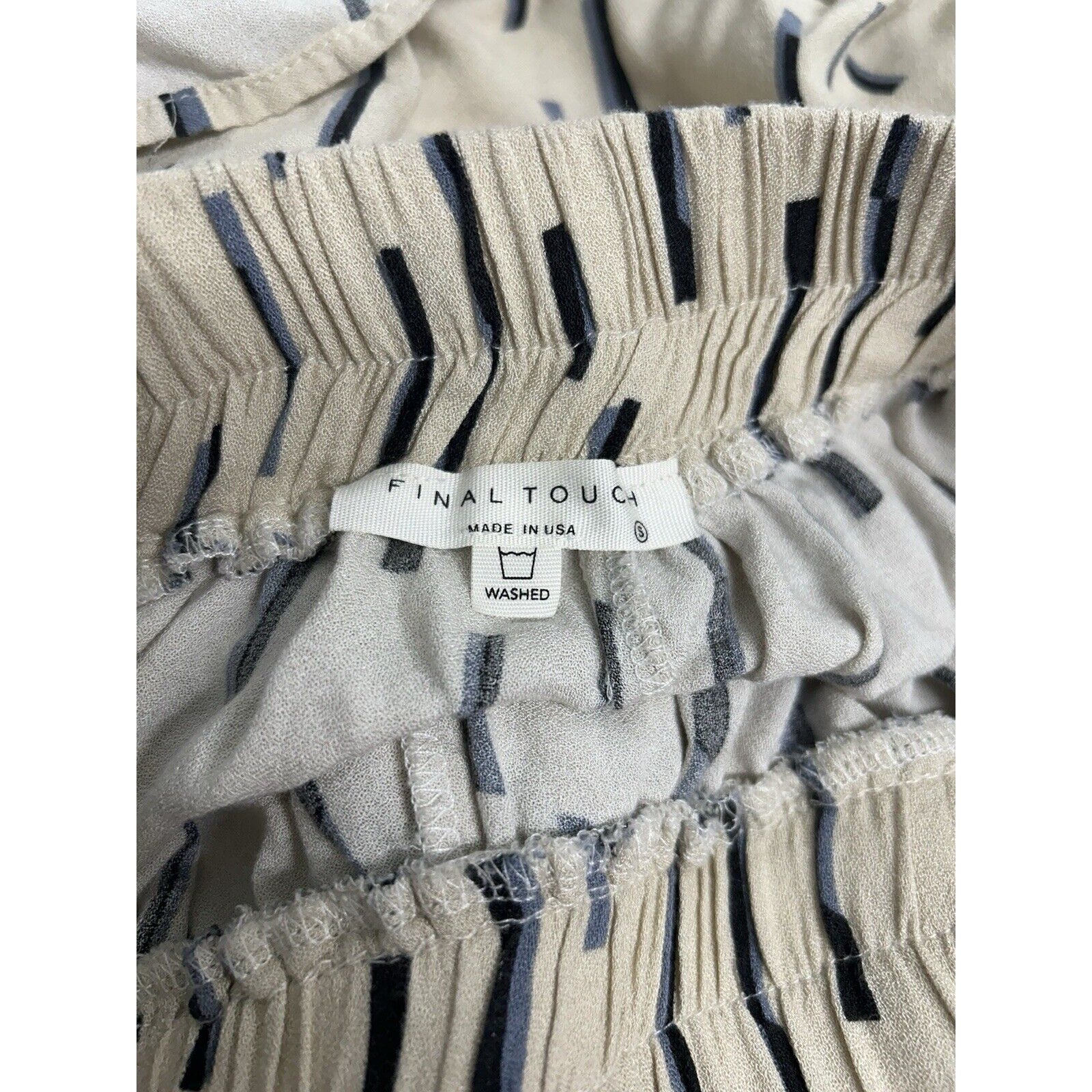 Final Touch Beige Blue Black Lines Elastic Waist High Rise Women’s Shorts S