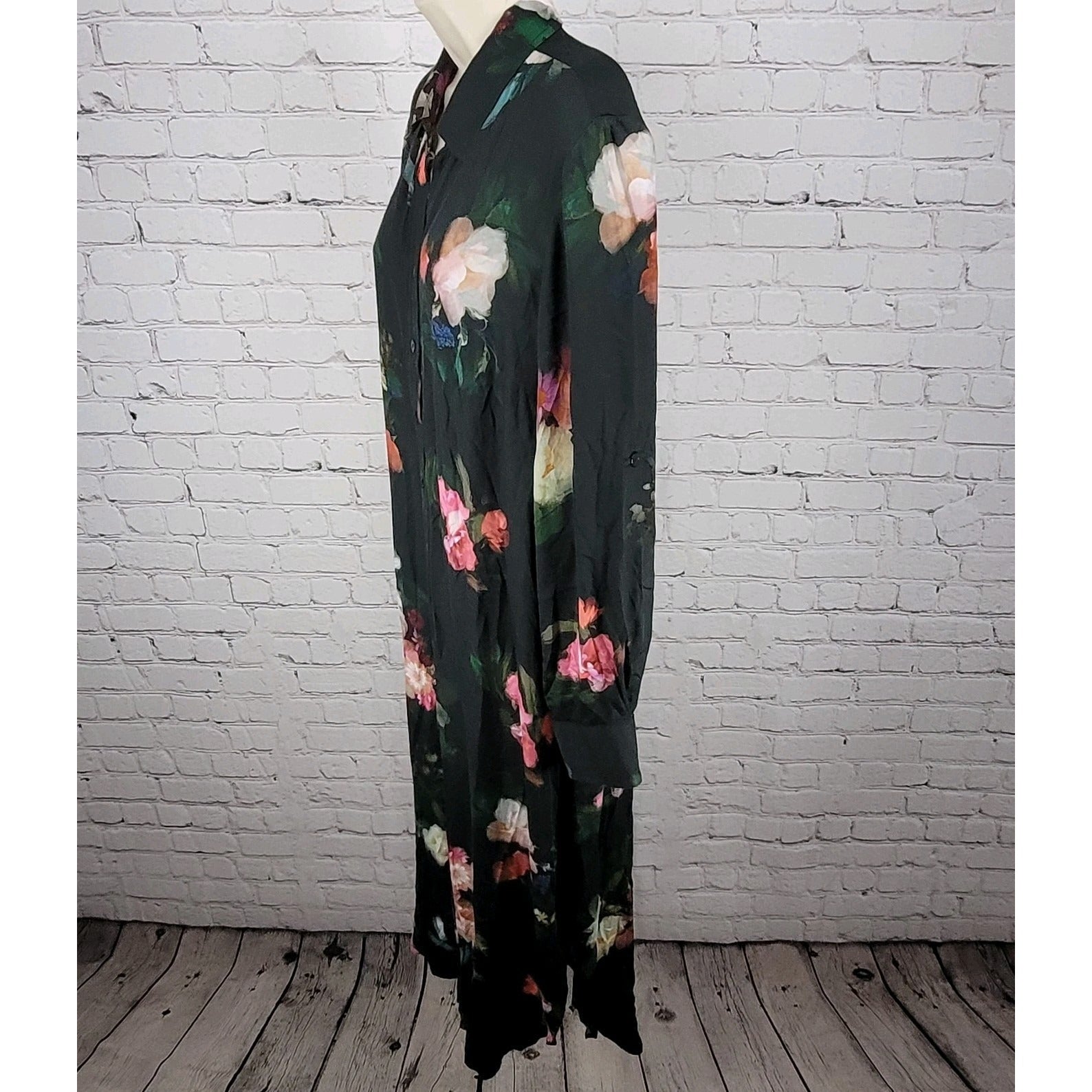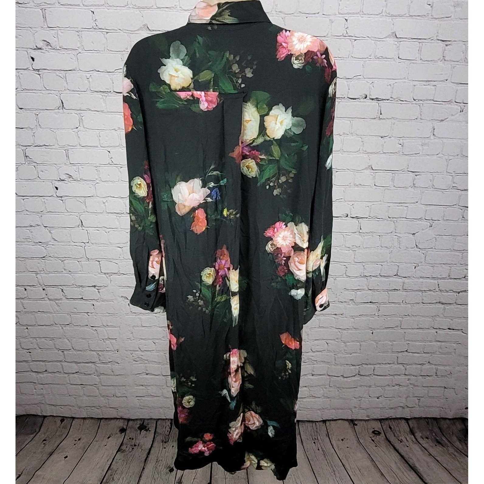 Finley Black Floral Lightweight Long Sleeve Shirt Dress USA Made Size Medium M