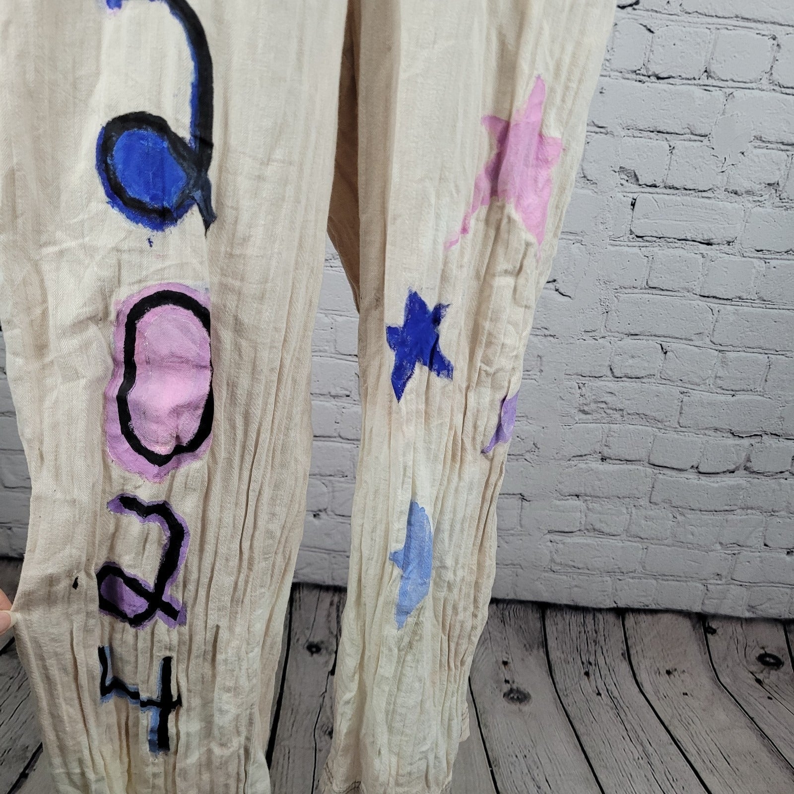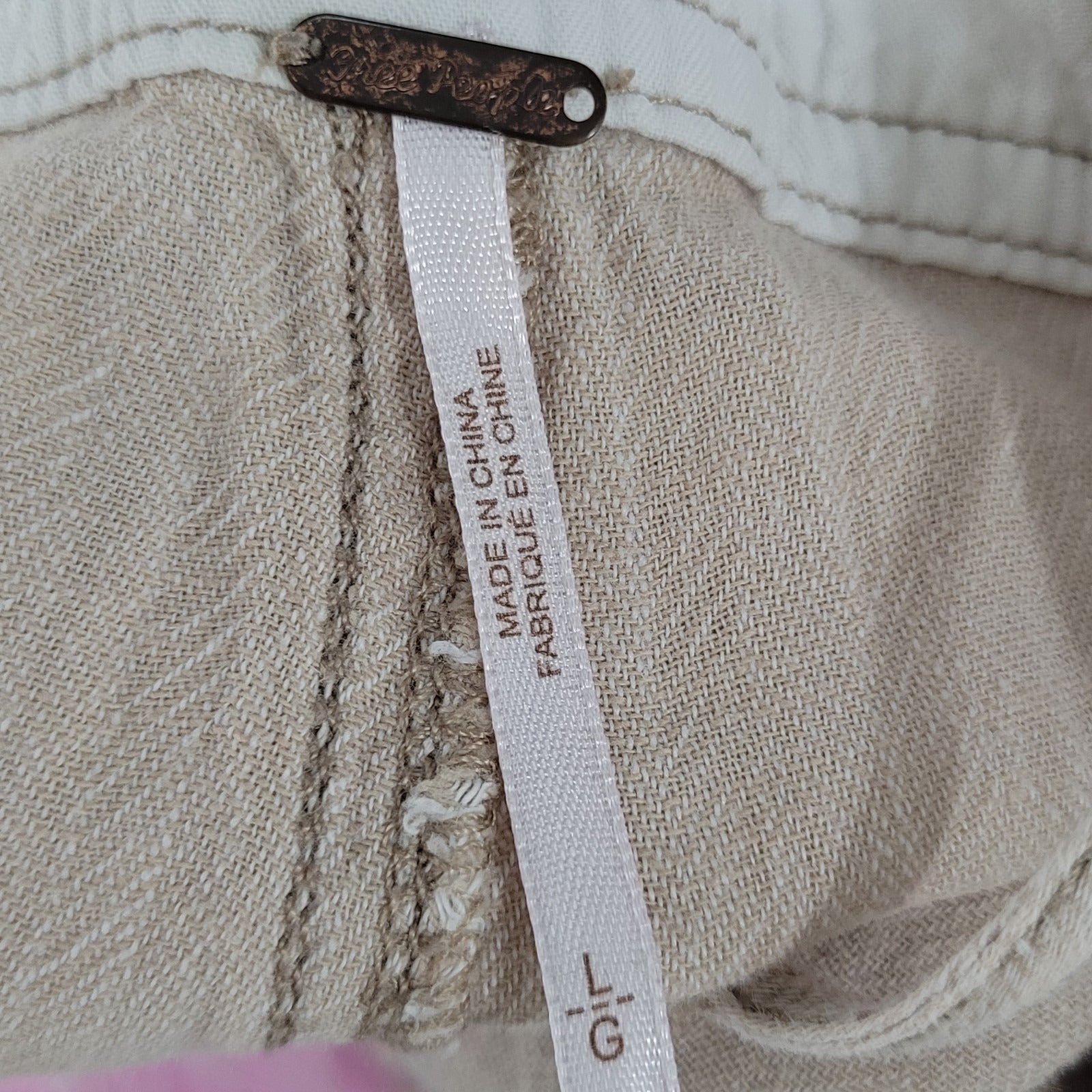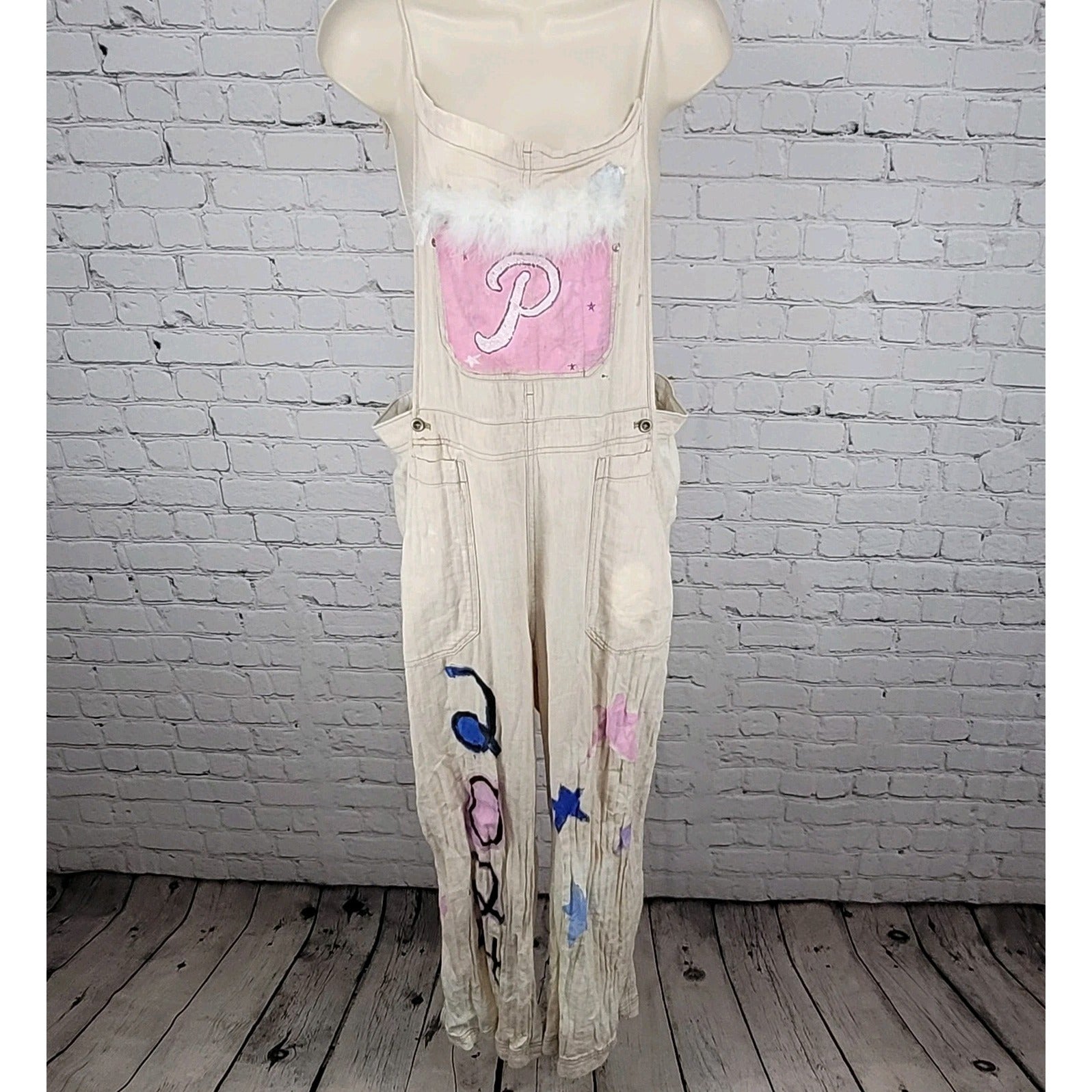 Free People Beige Linen Cotton Blend Reworked Painters Overalls Jumpsuit Large L