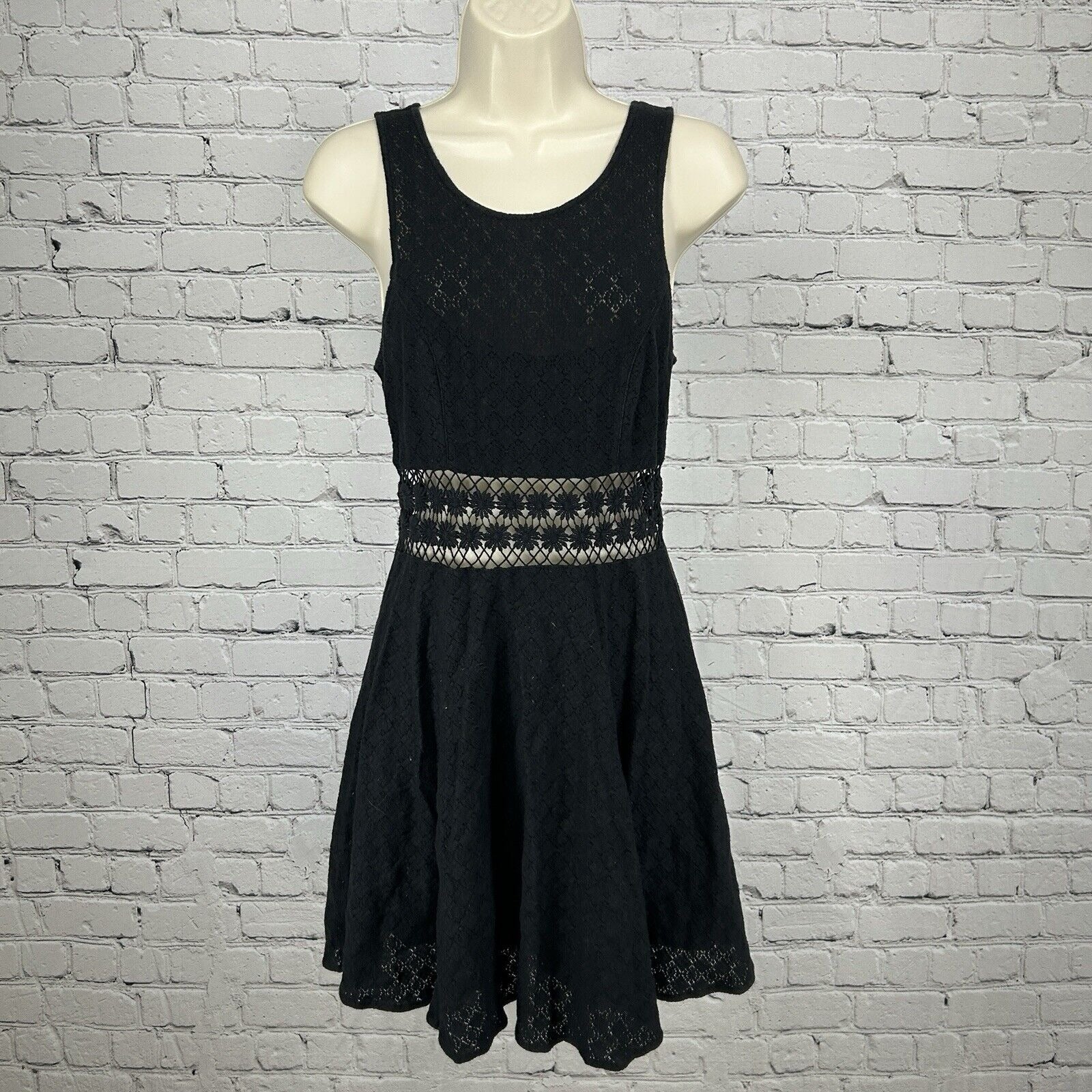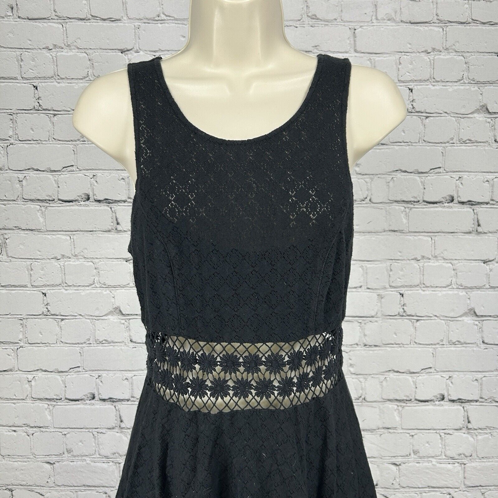 Free People Black Floral Embroidered Sleeveless A Line Peekaboo Dress Size 4