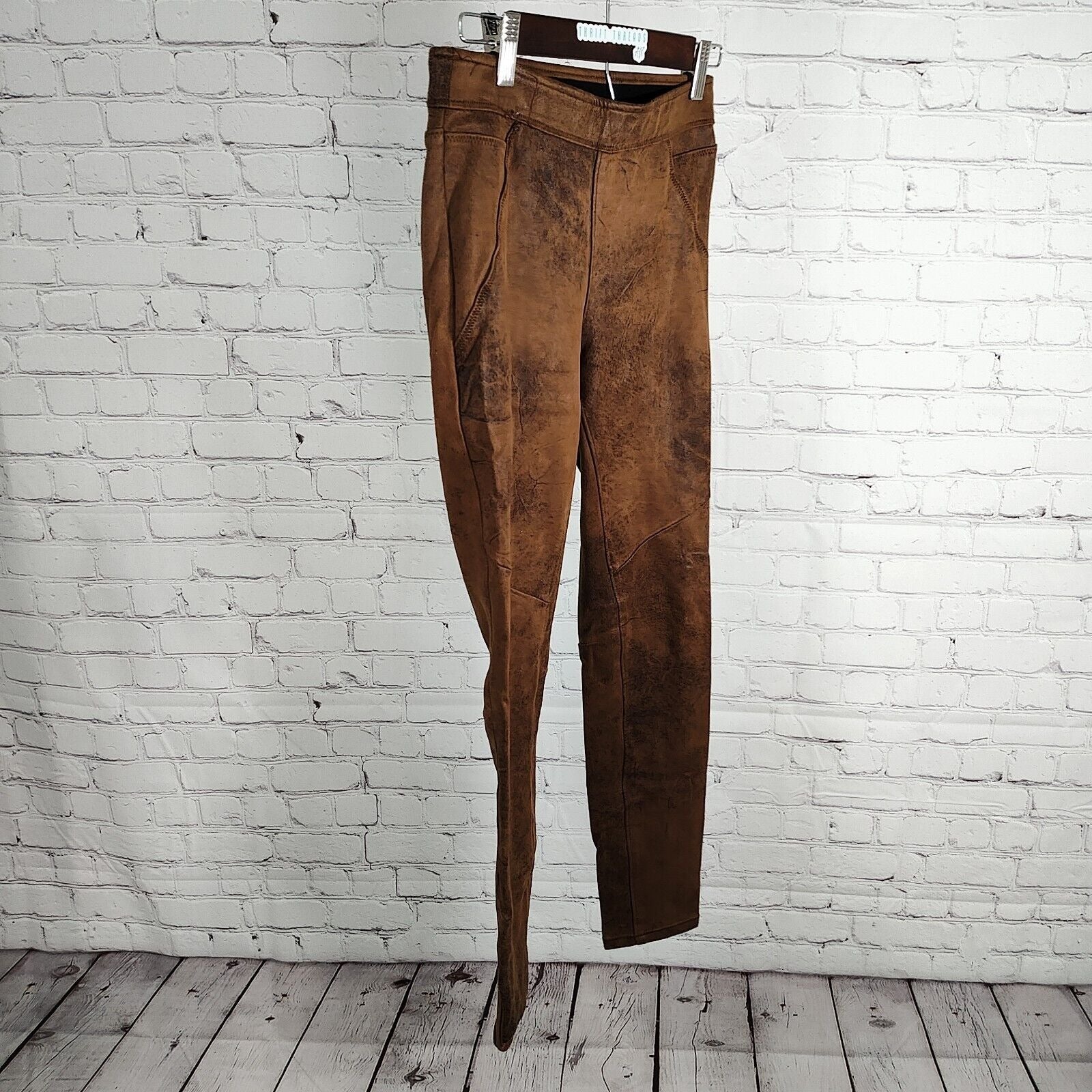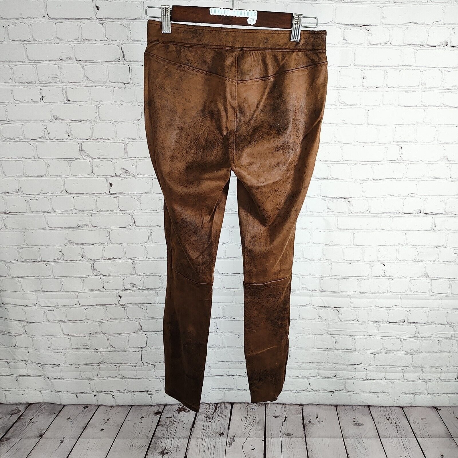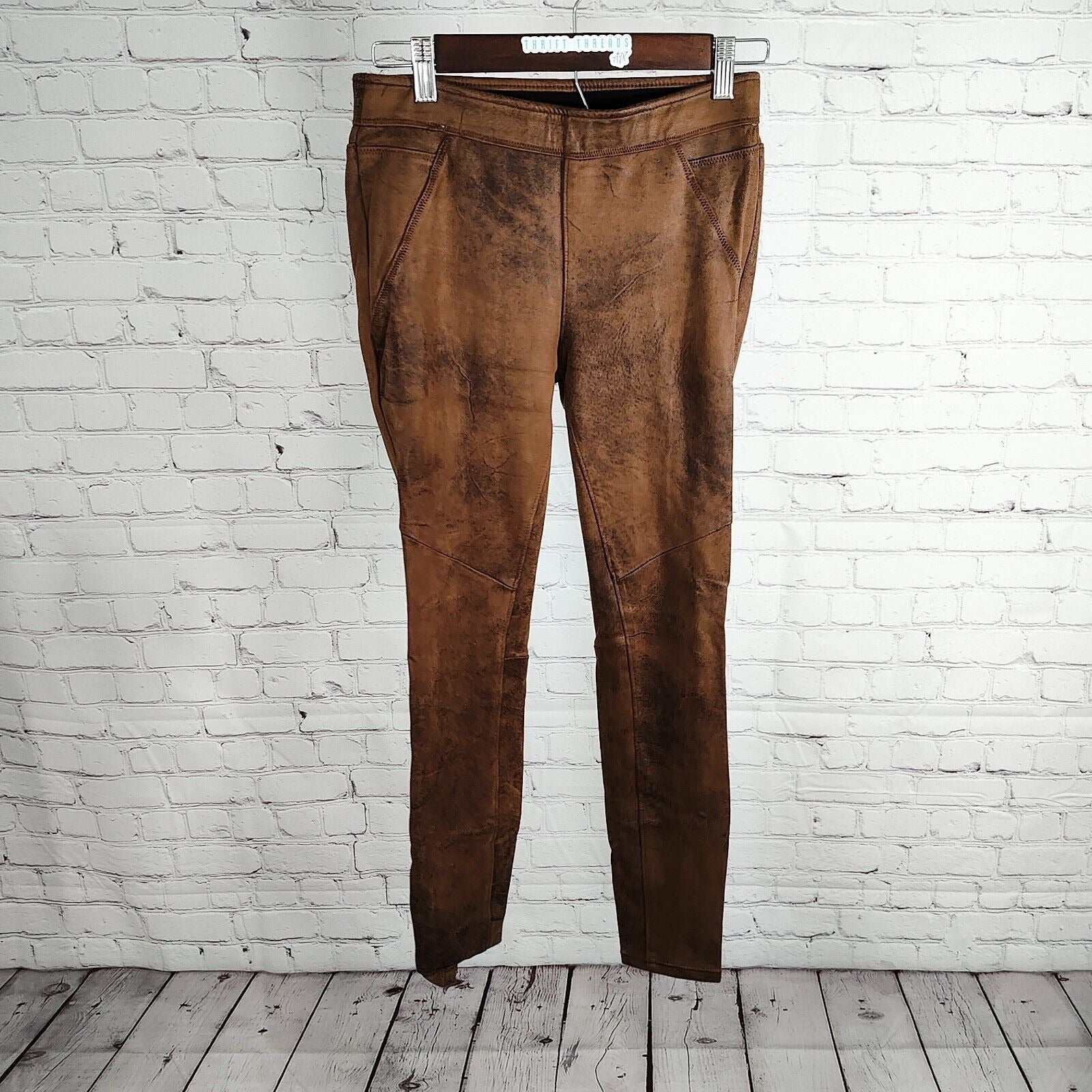 Free People Distressed Brown Faux Suede Elastic Waist Jeggings Women Size 2