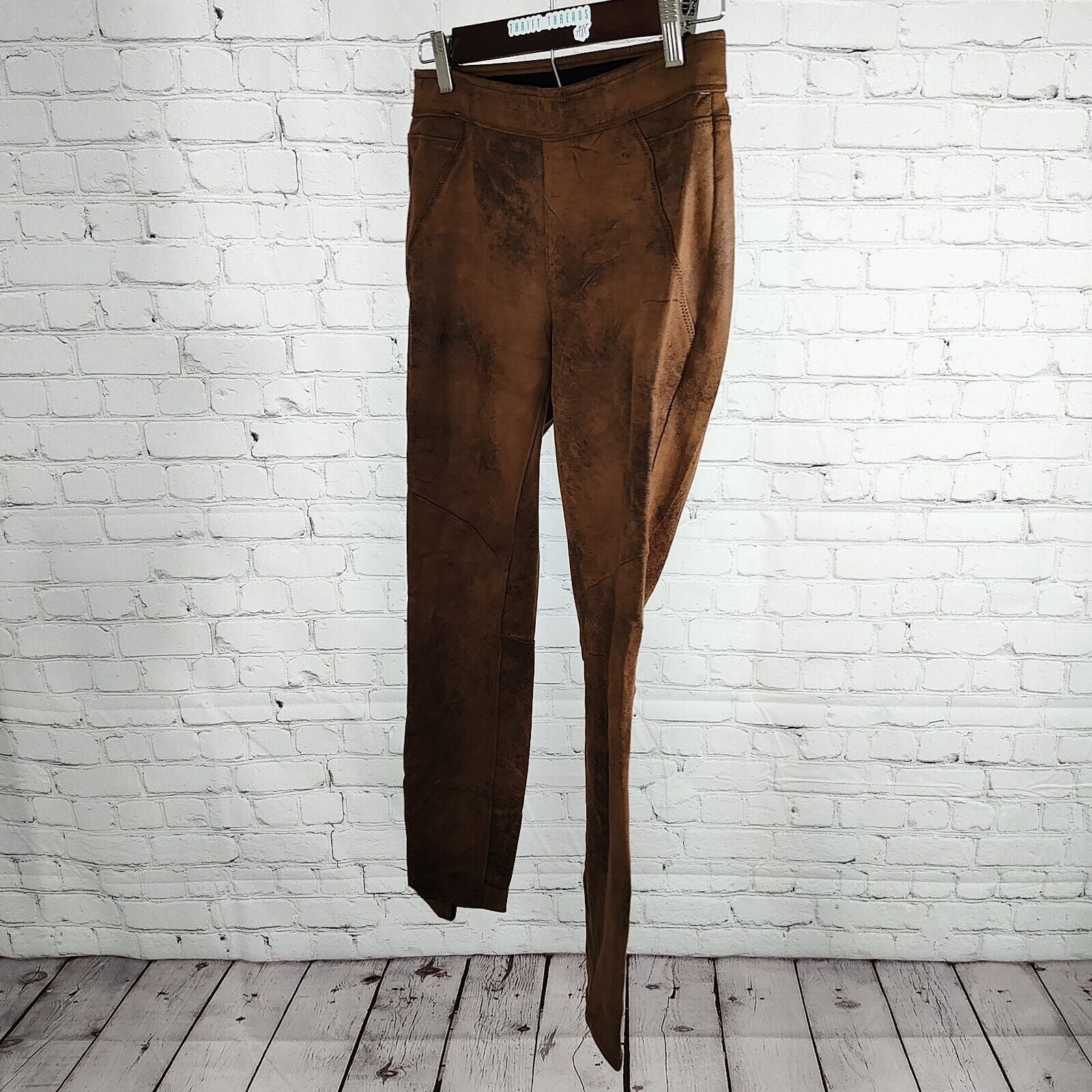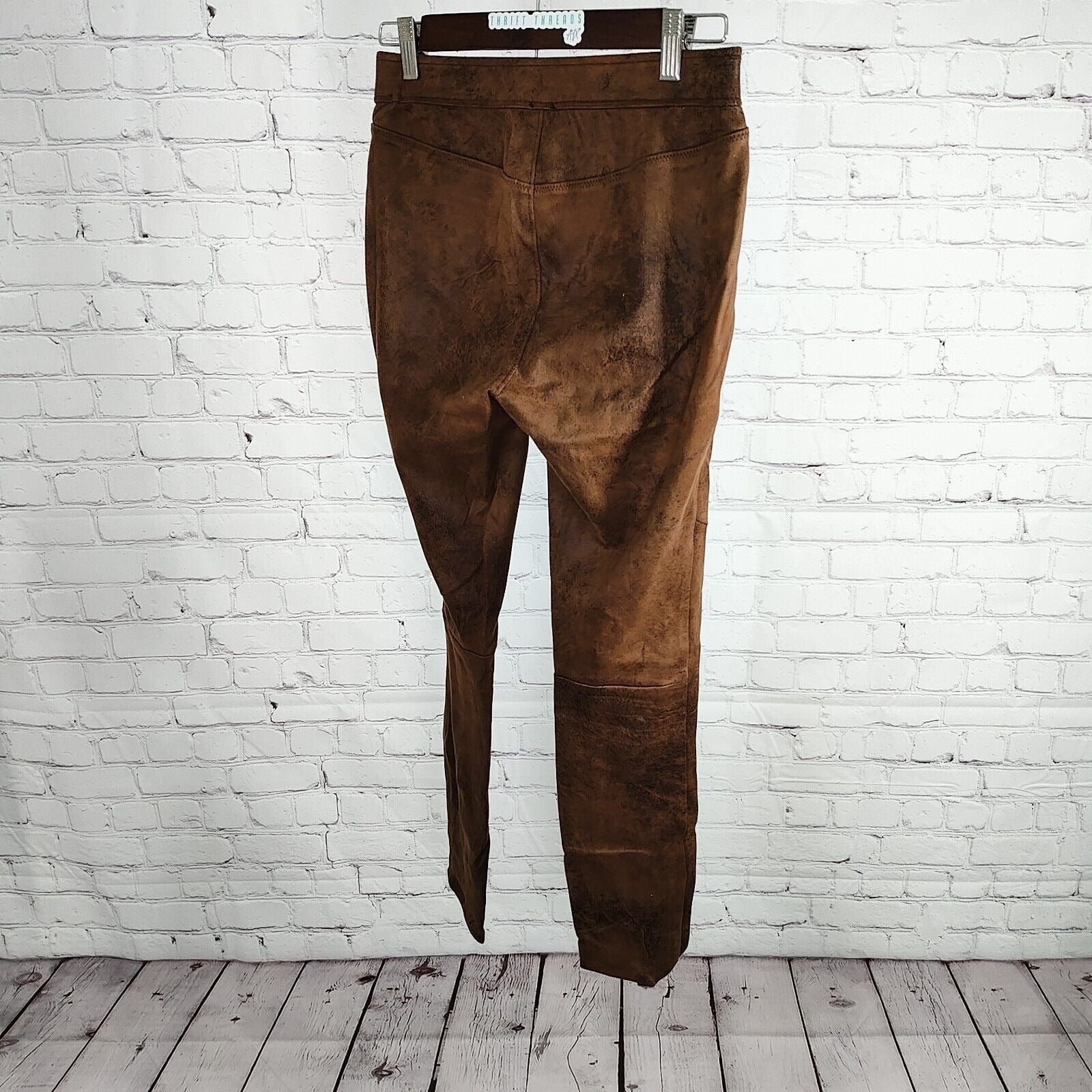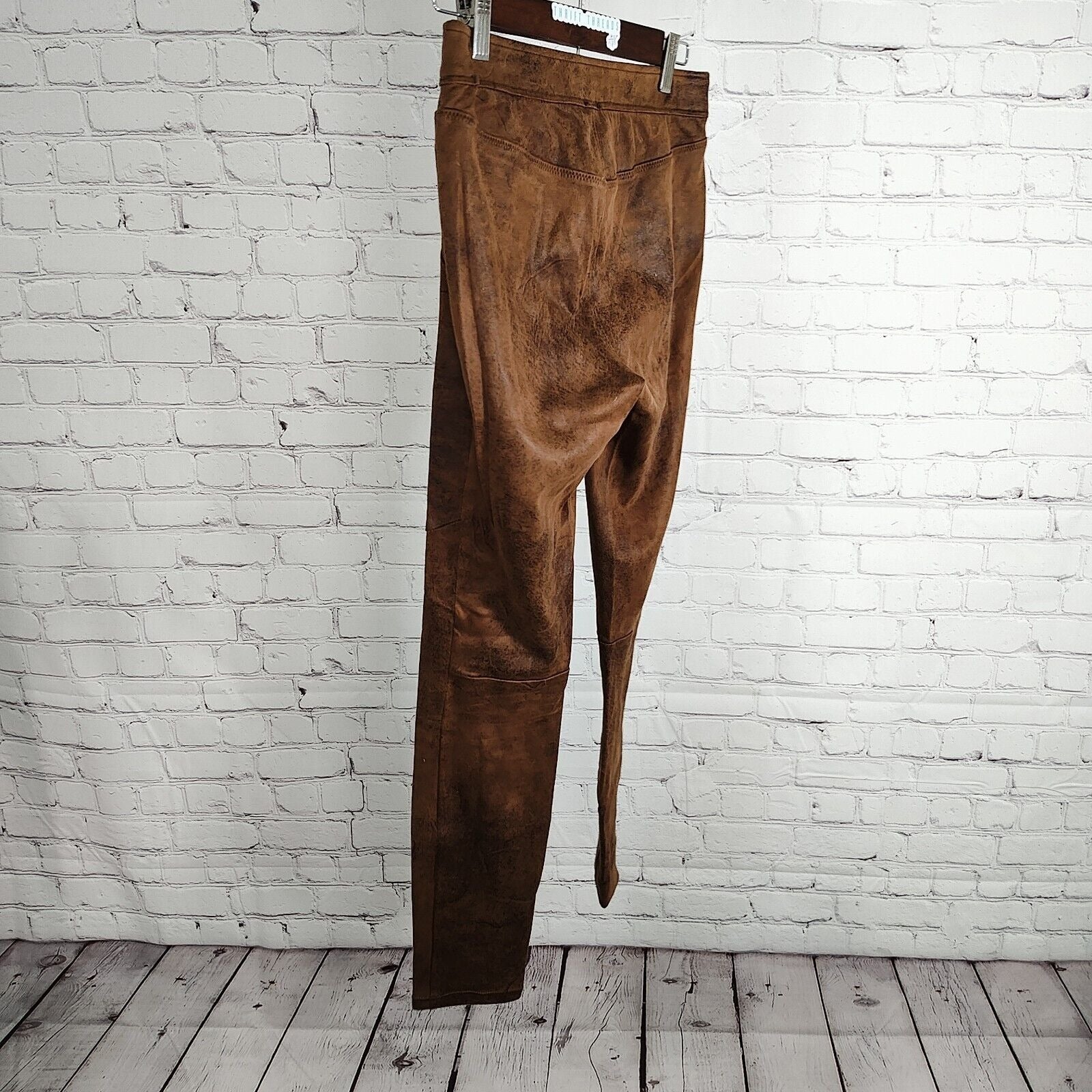 Free People Distressed Brown Faux Suede Elastic Waist Jeggings Women Size 2