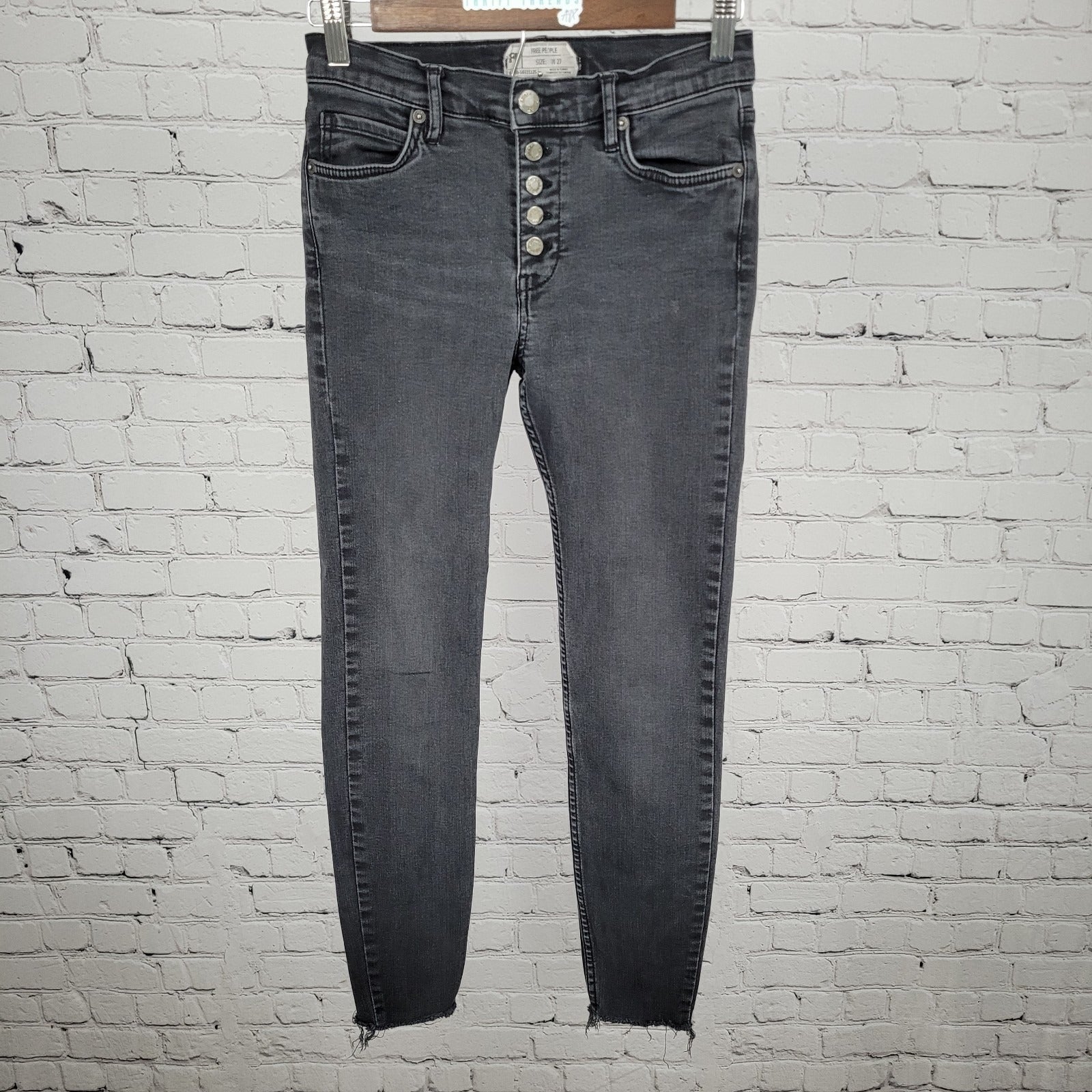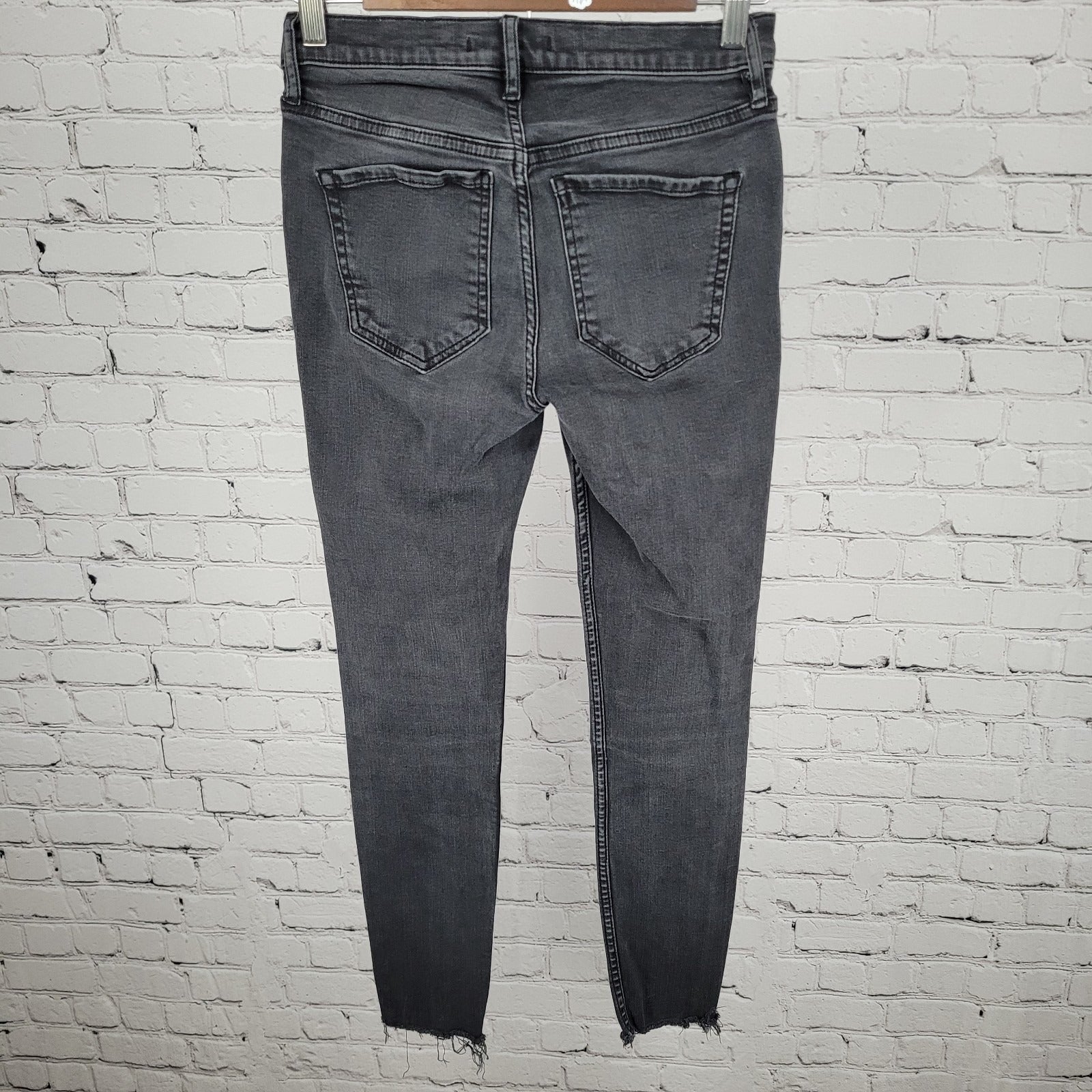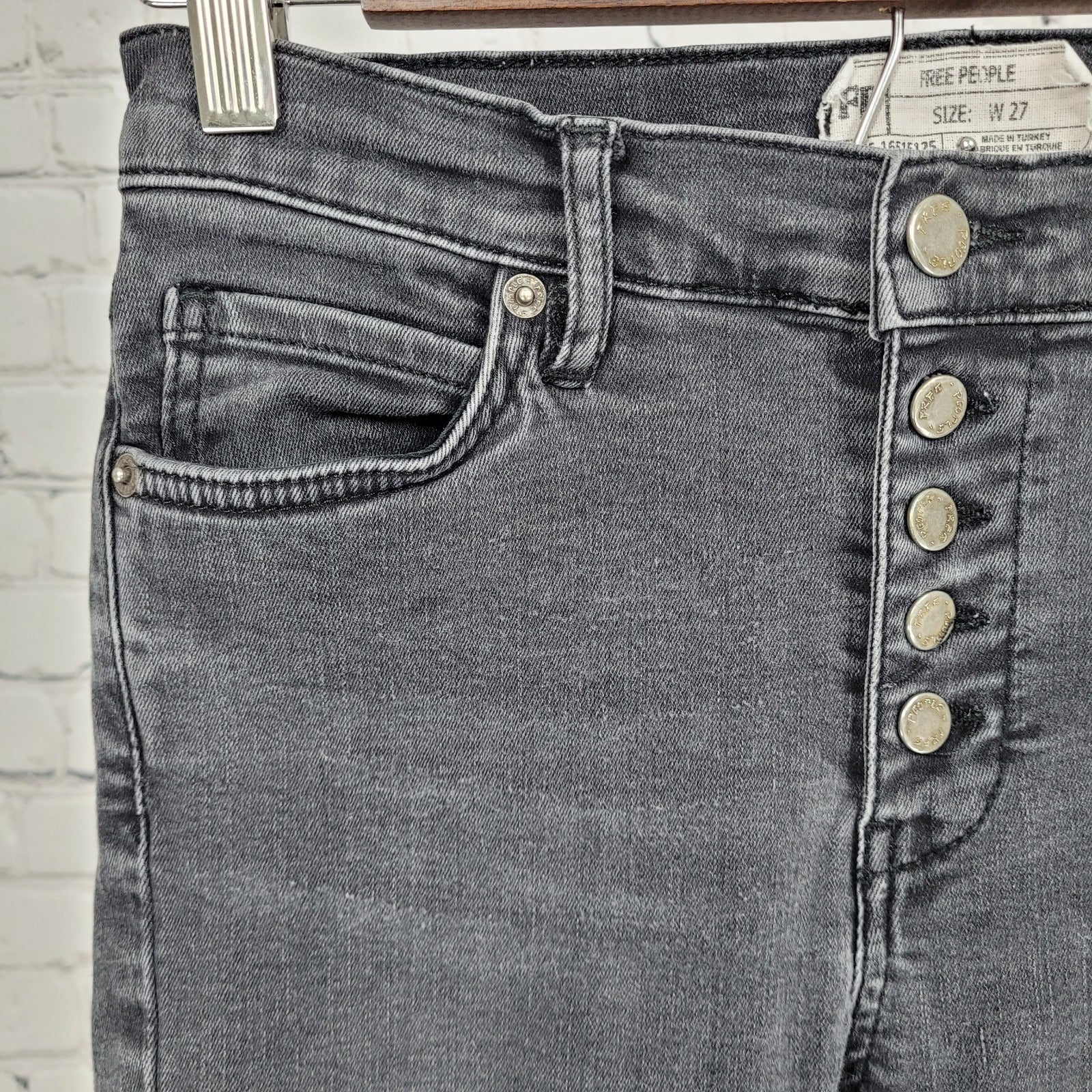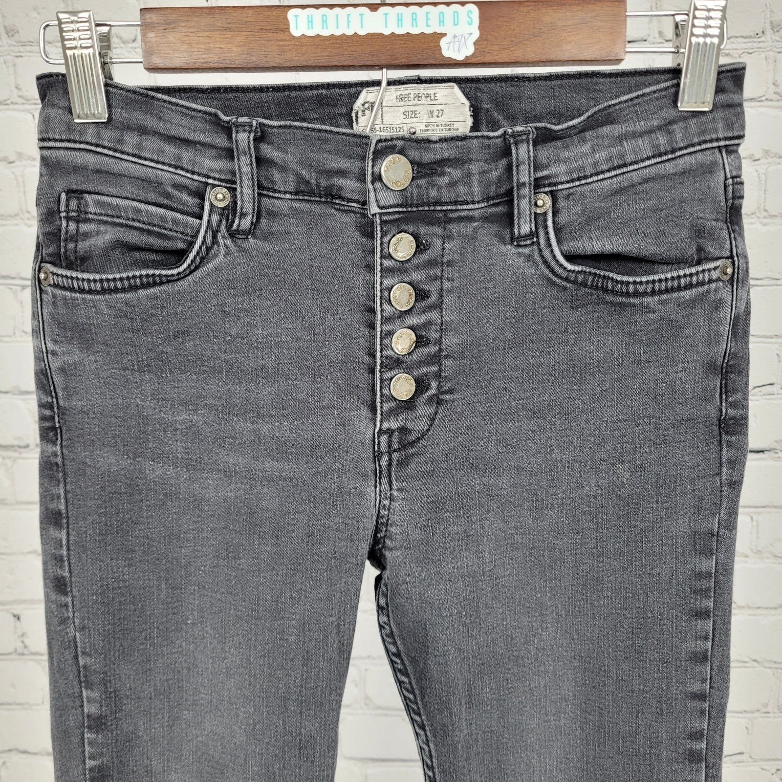 Free People Grey Denim Mid Rise Button Fly Skinny Ankle Jeans Size 27 (26x26.5)
