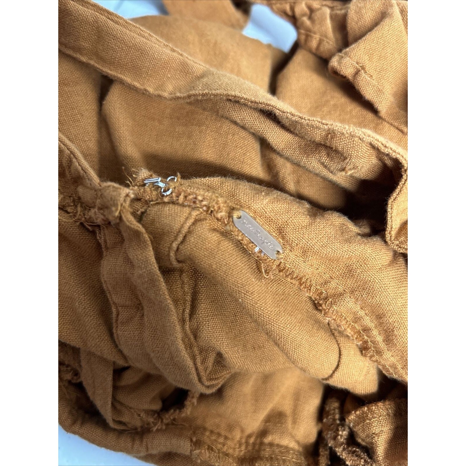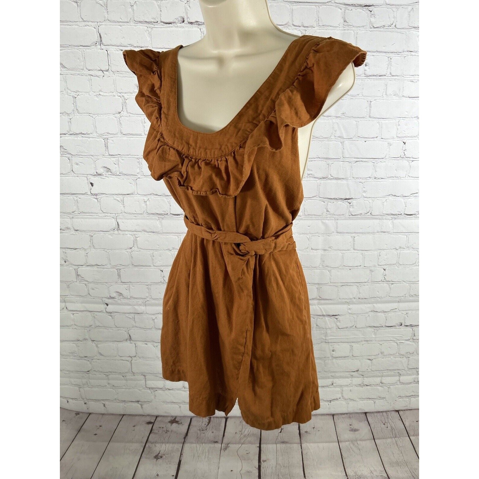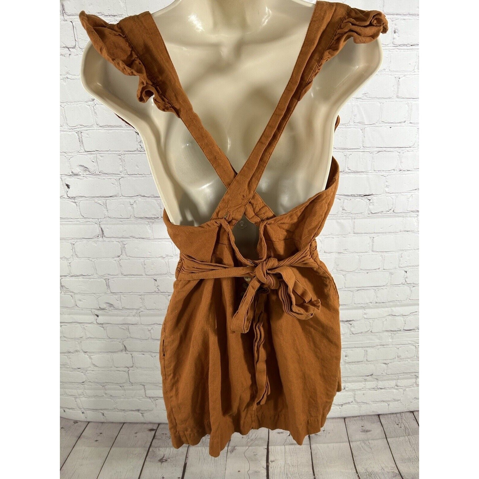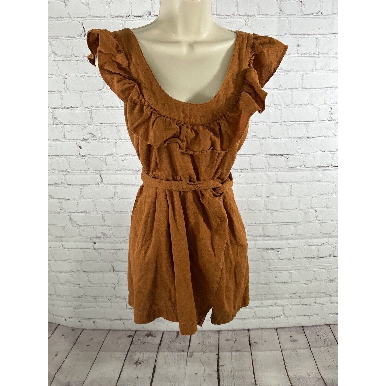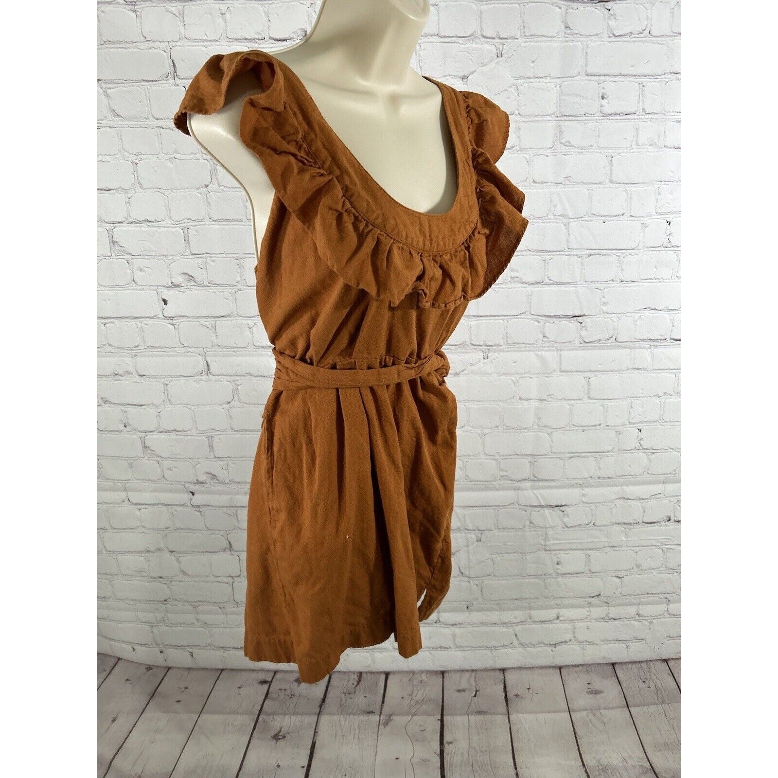Free People Orange Linen Cotton Racerback Ruffle Neckline Faux Wrap Mini Dress S