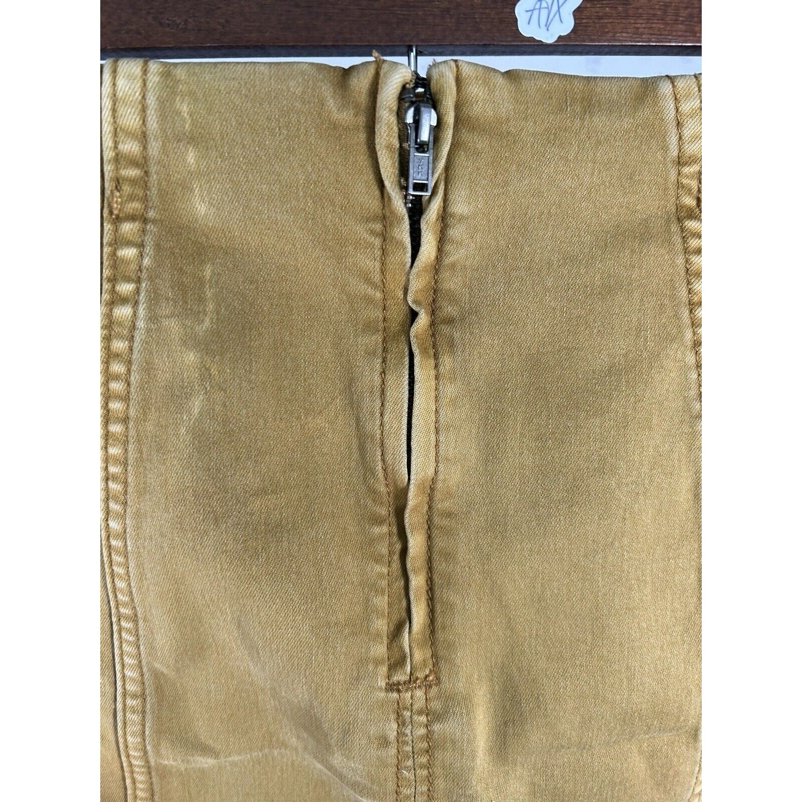Free People Tan Modern Feeme Denim Boho Mini Pencil Skirt Size 0