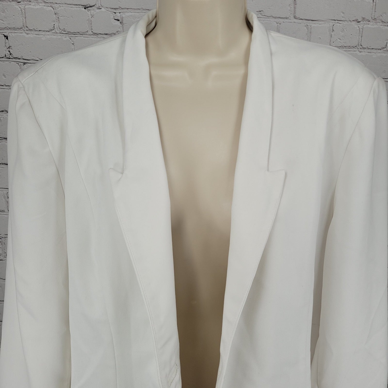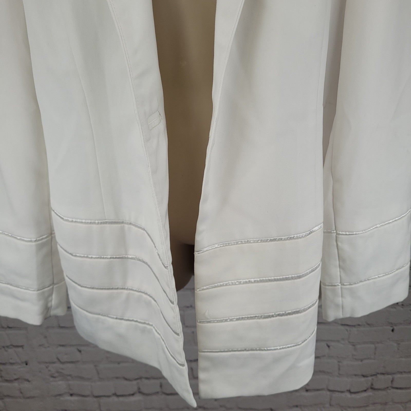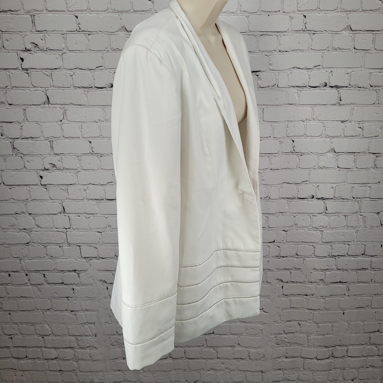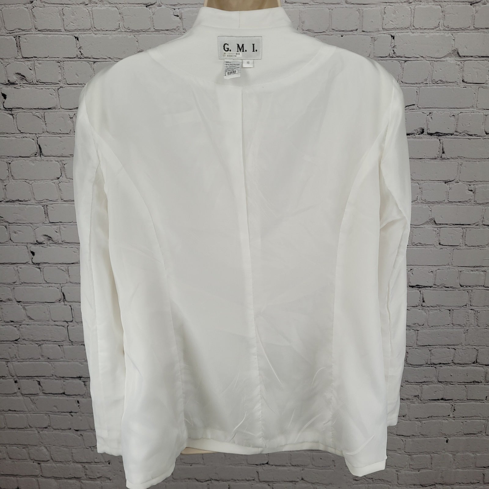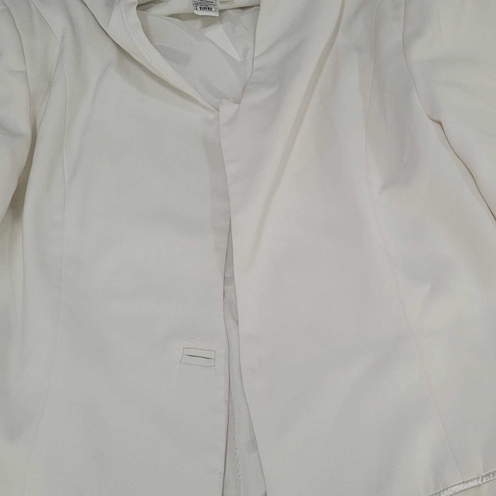 G.M.I. White Stretch Lined Satin Accents Long Sleeve Blazer Jacket Size 16