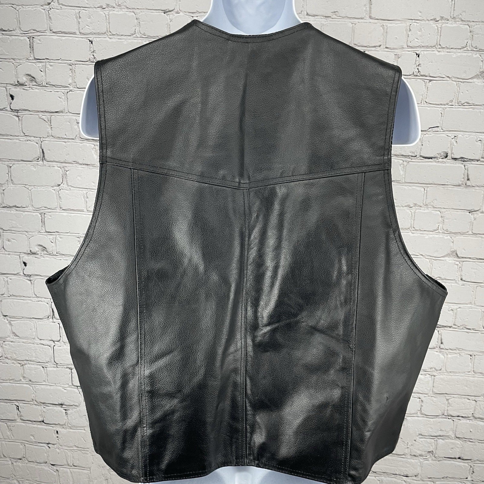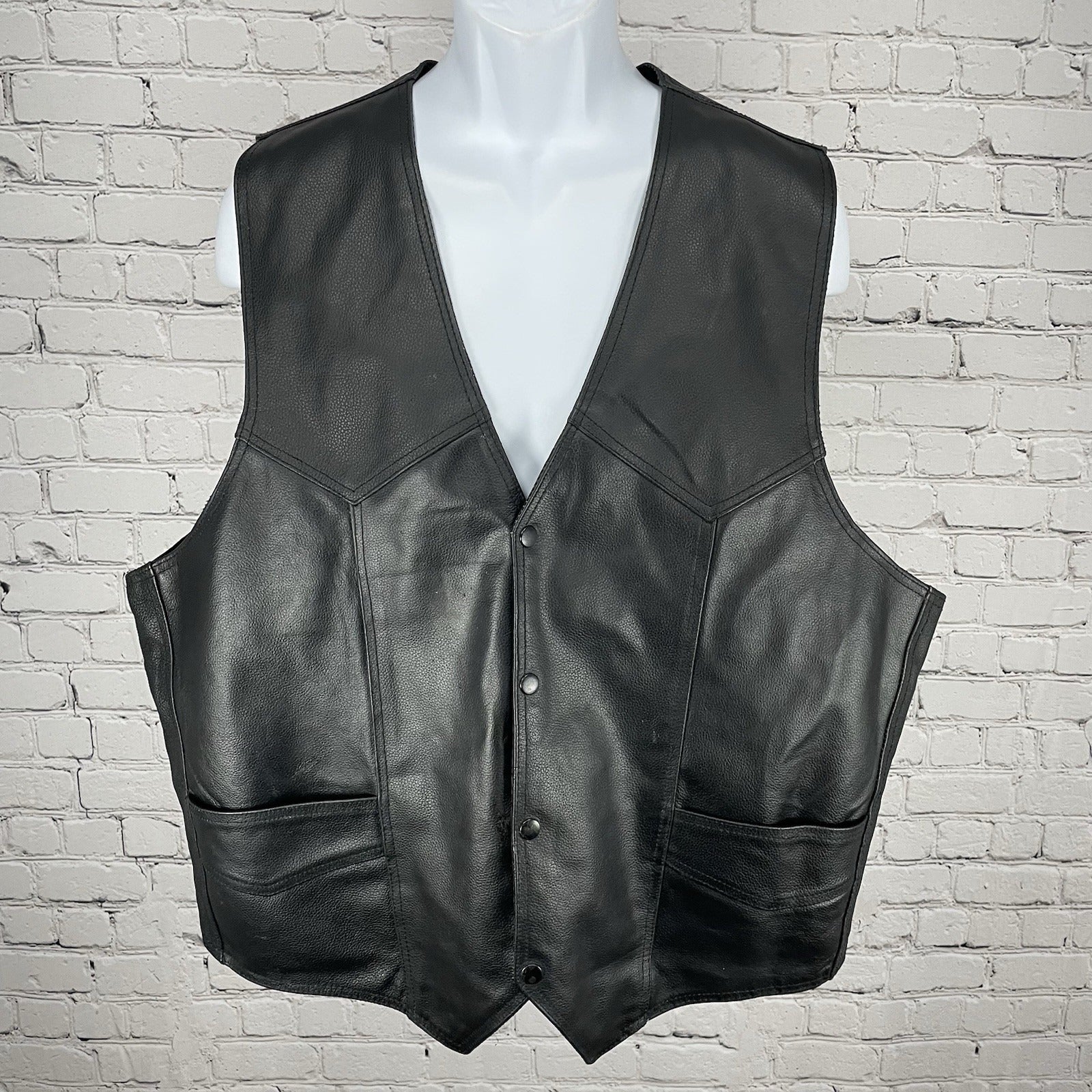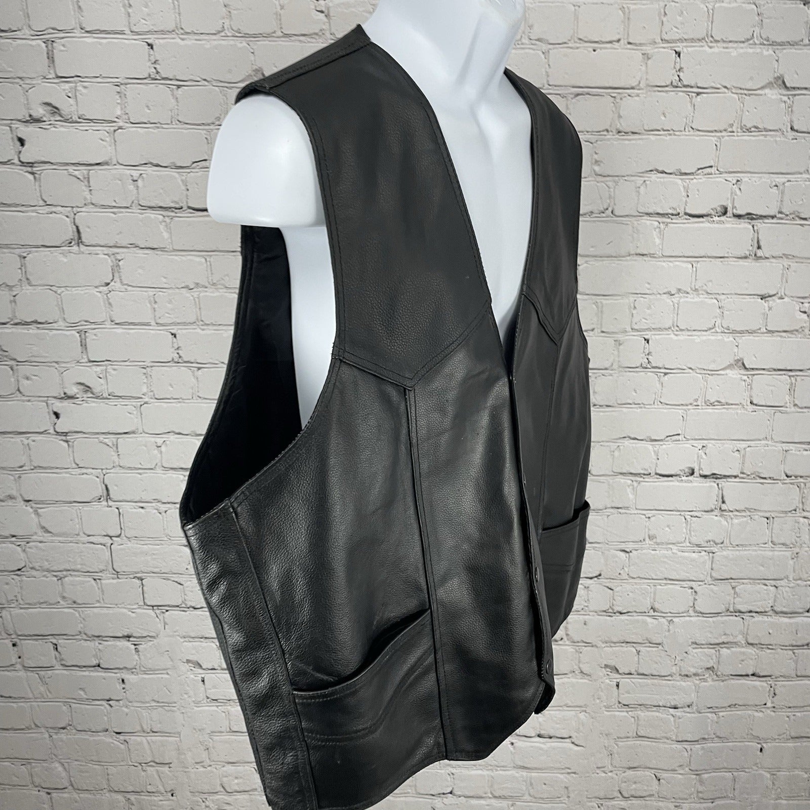 Genuine Leather Black Bikercore Classic Snapped Lined Vest Pockets Size 56