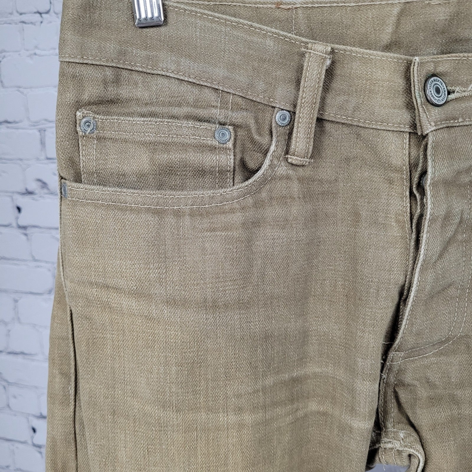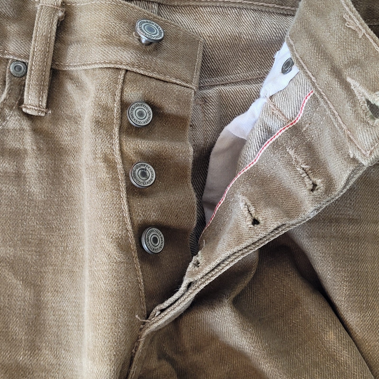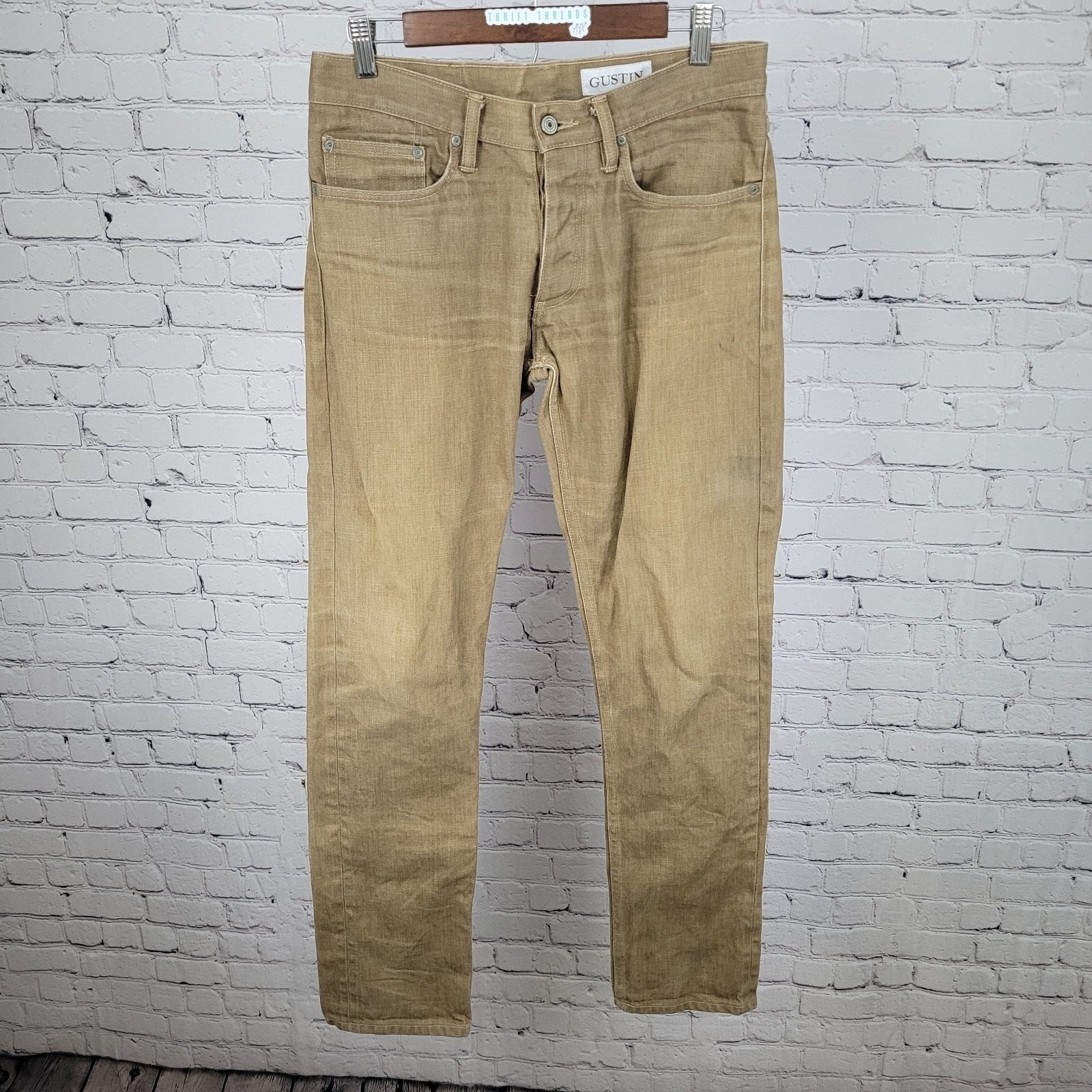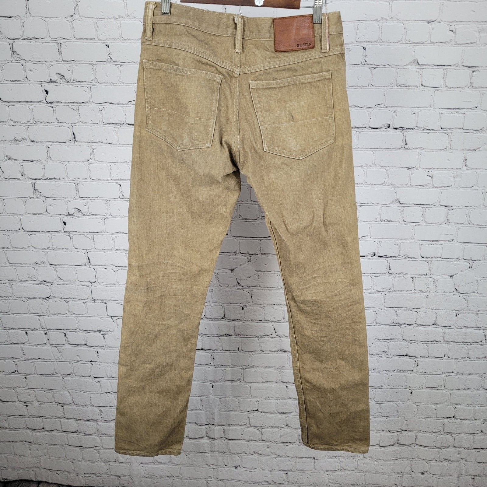 Gustin Tan Denim Slim Fit Raw Finish Button Fly Jeans USA Made Size 32 (30x33.5)