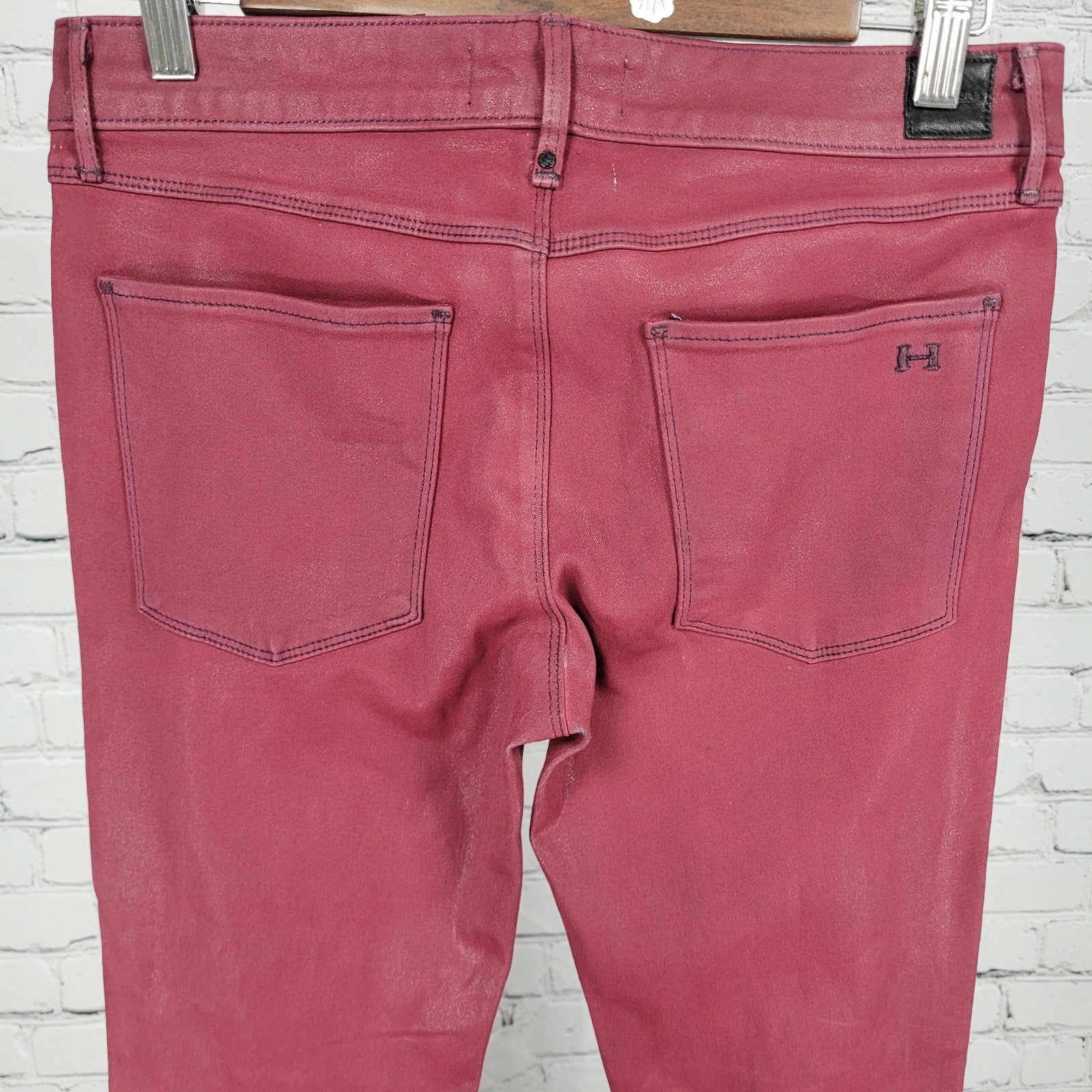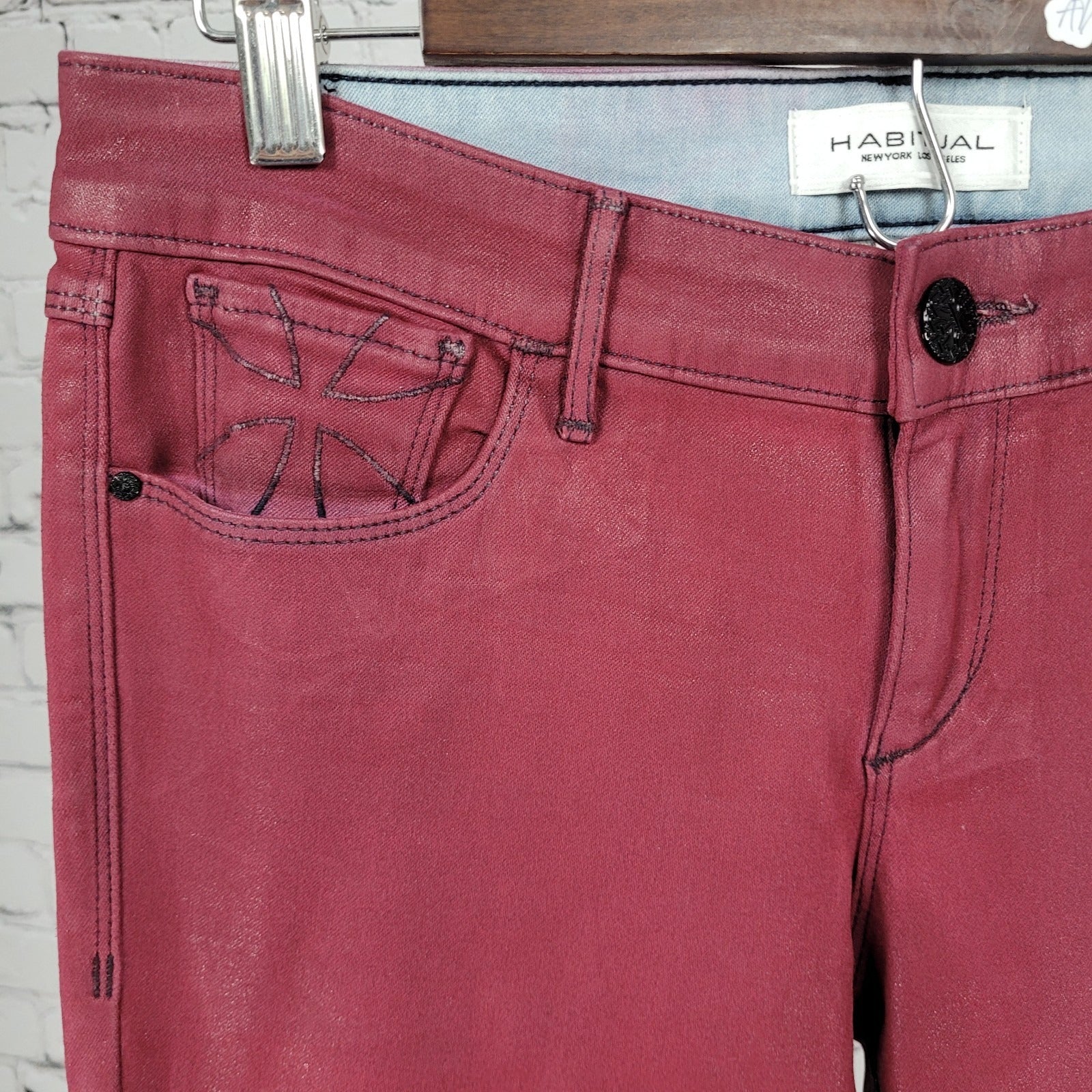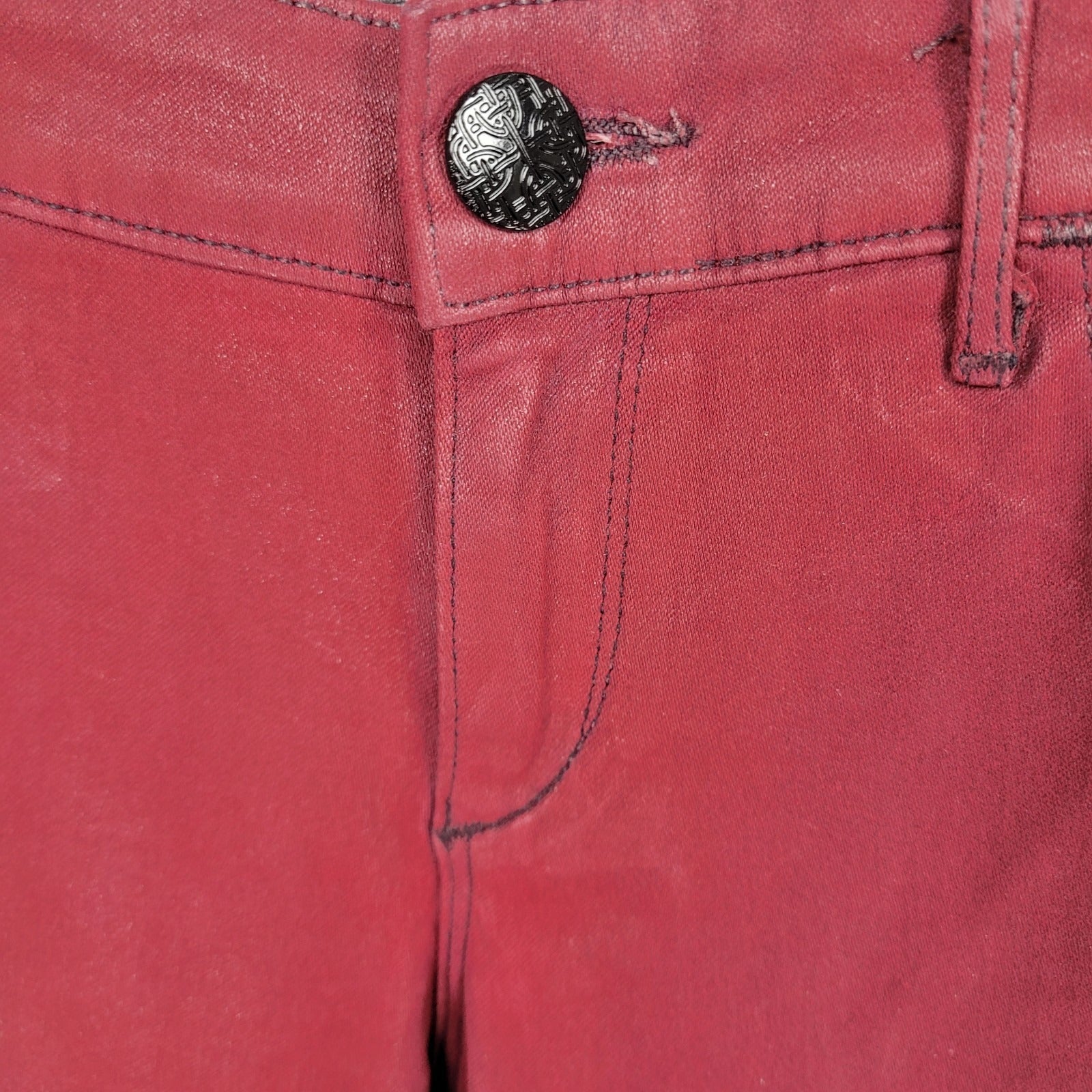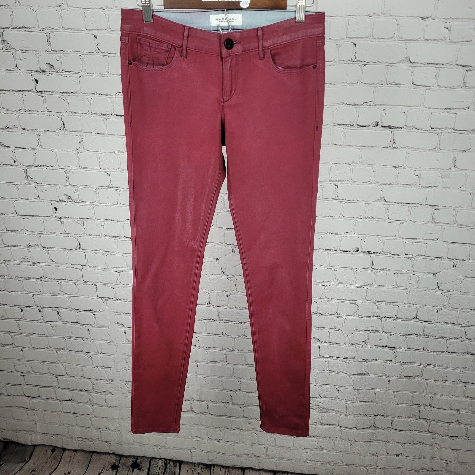 Habitual Red Sangria Alice Waxed Low Rise Skinny Slim Jeans Pants 27 (27x32)
