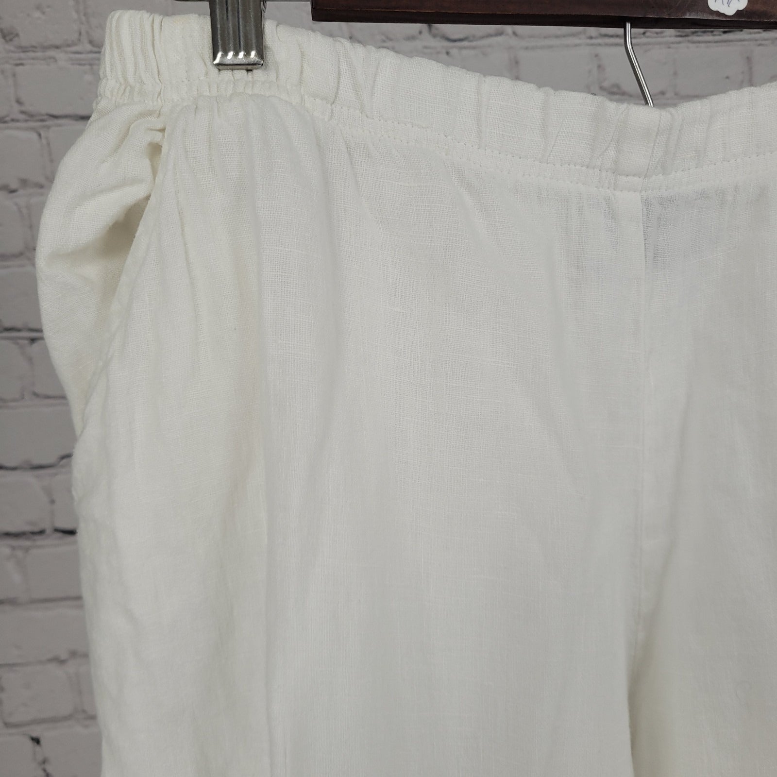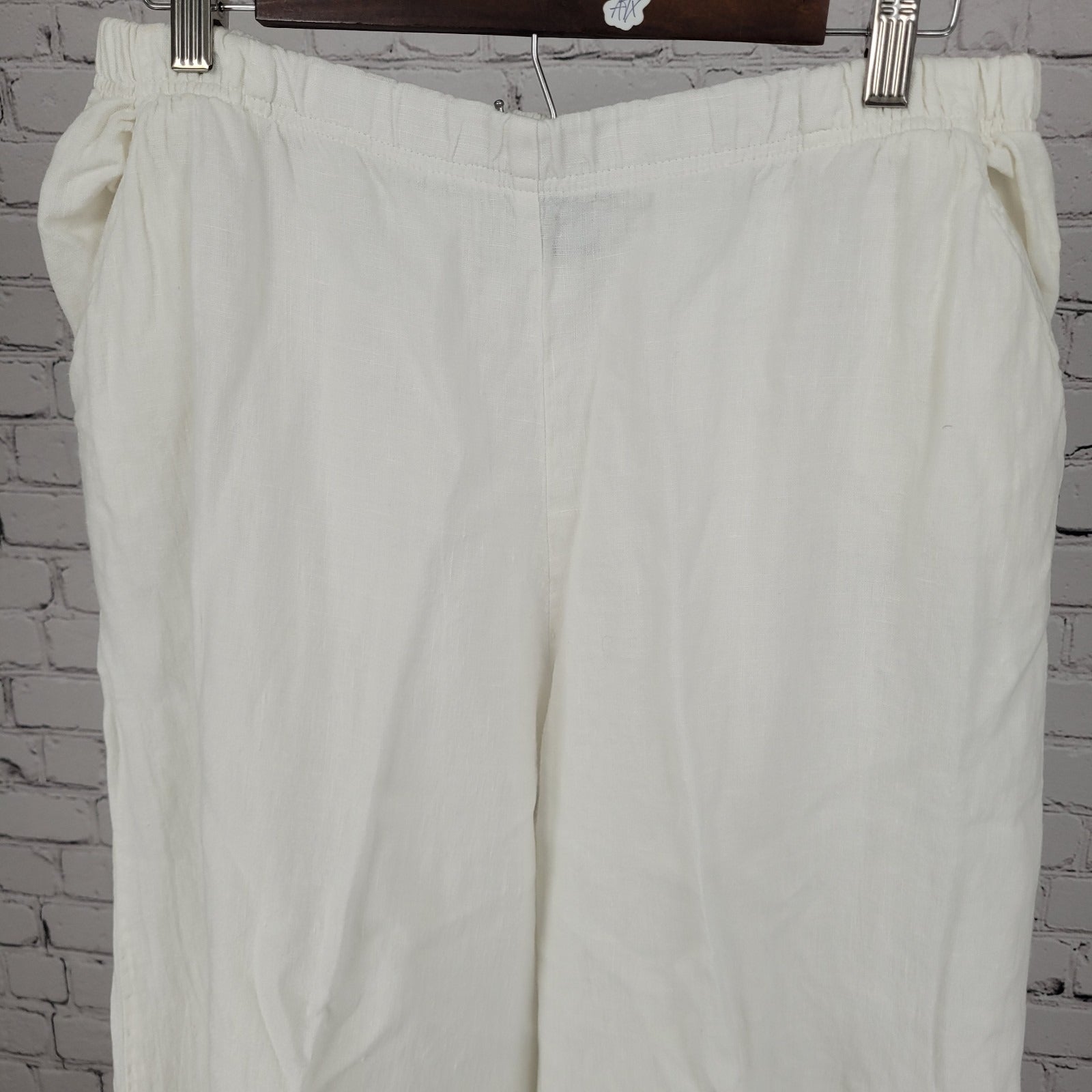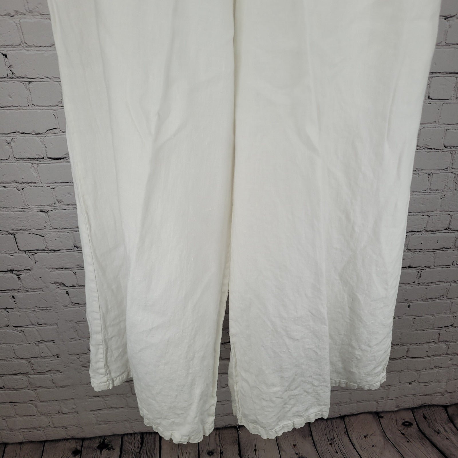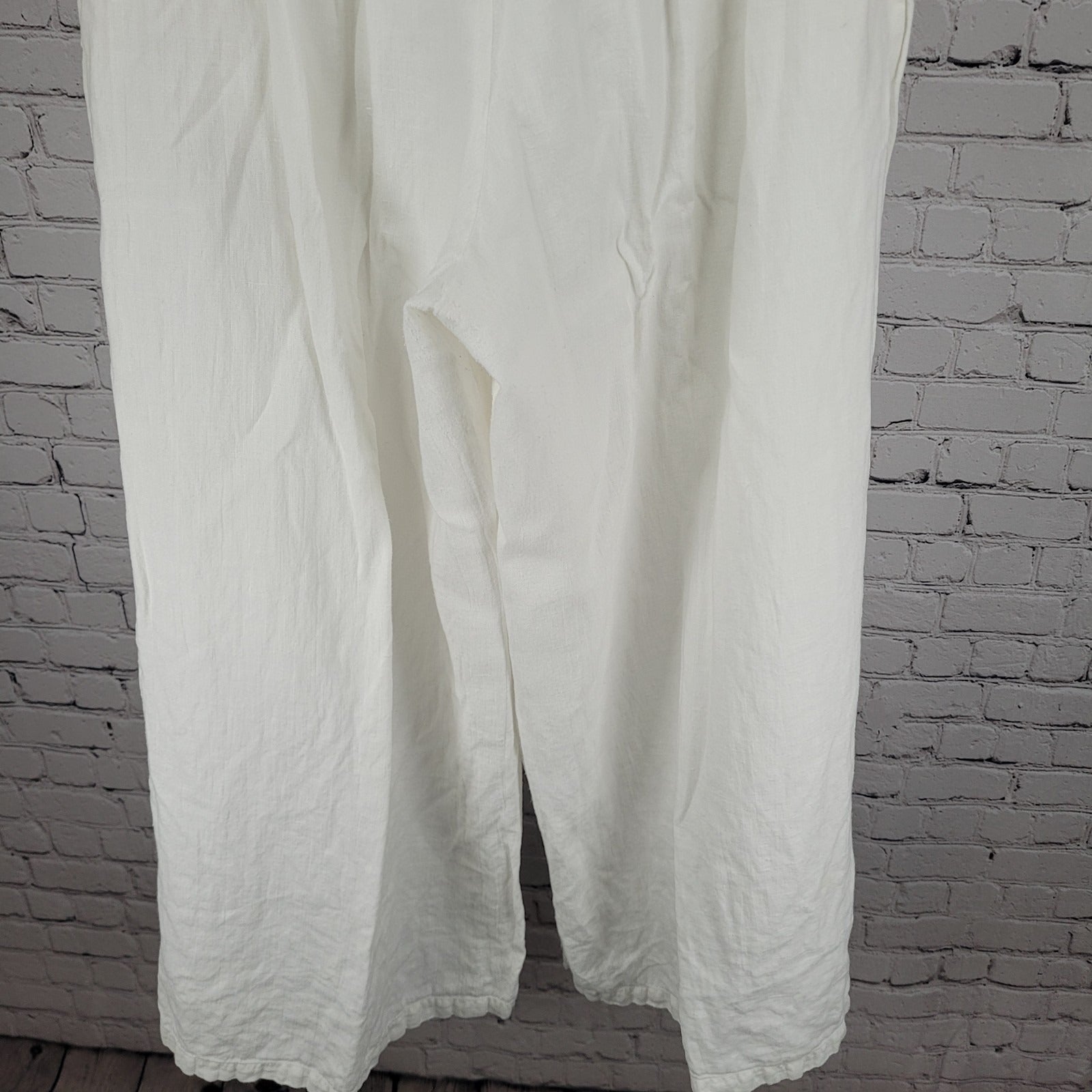 Hari Casuals White 100% Linen Wide Leg High Waist Pants LA USA Size XL (30x29)