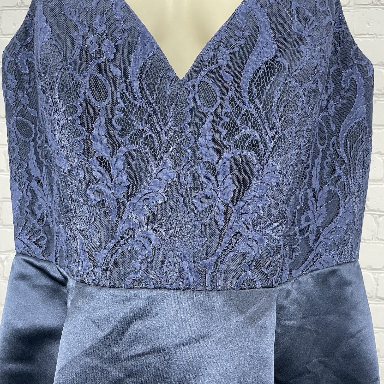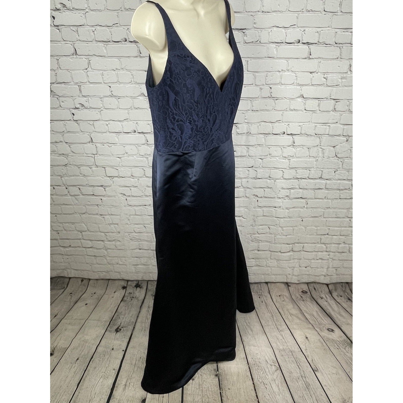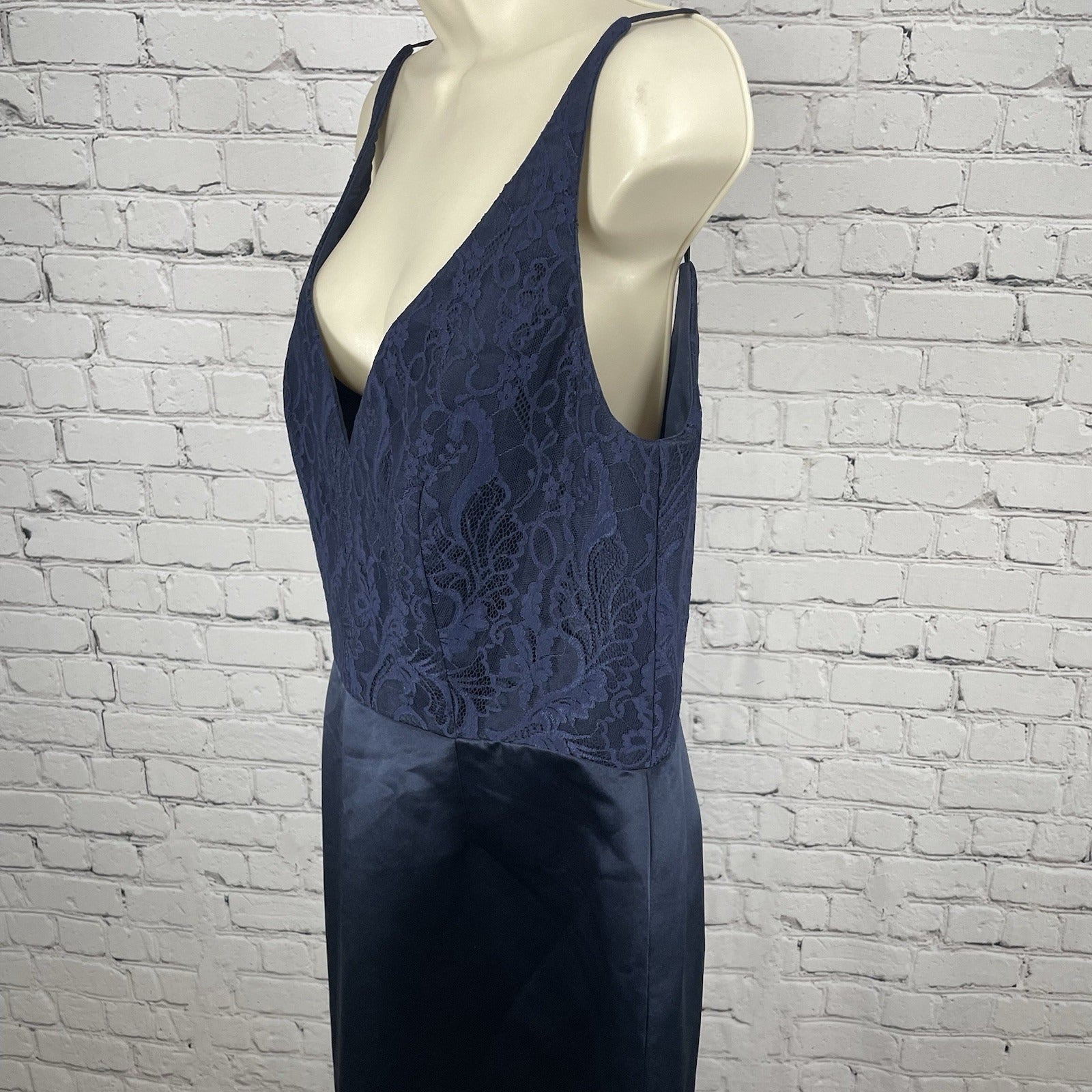 Hayley Paige Occasions Blue Satin Lace Sleeveless Maxi Prom Dress Gown Size 14