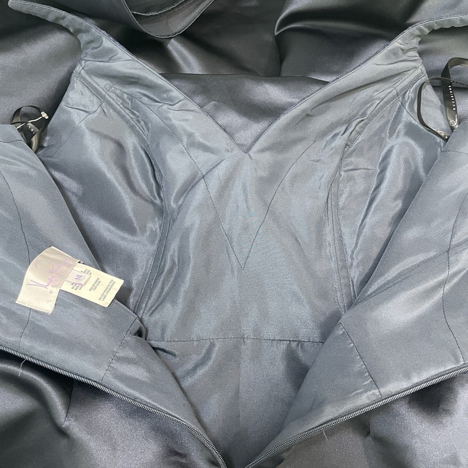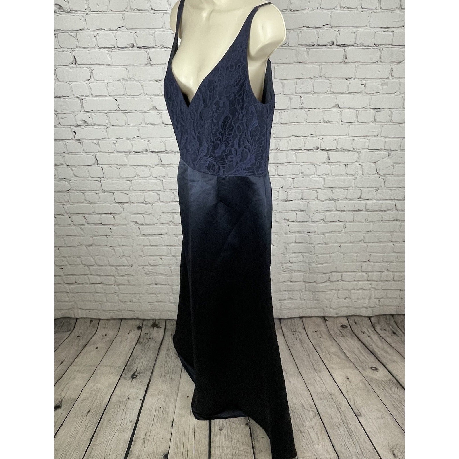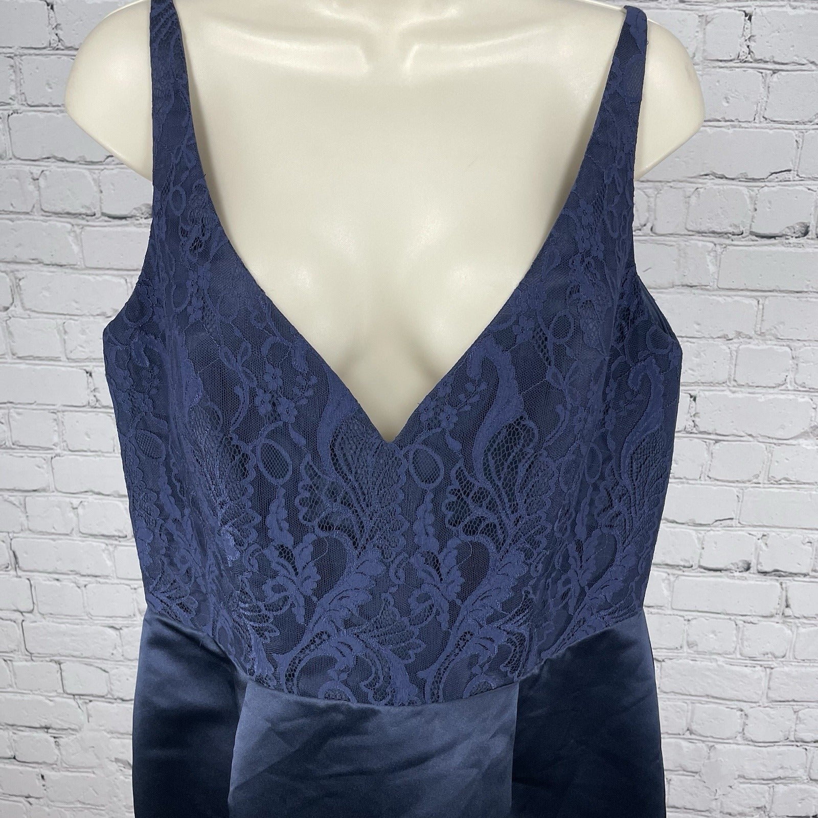 Hayley Paige Occasions Blue Satin Lace Sleeveless Maxi Prom Dress Gown Size 14