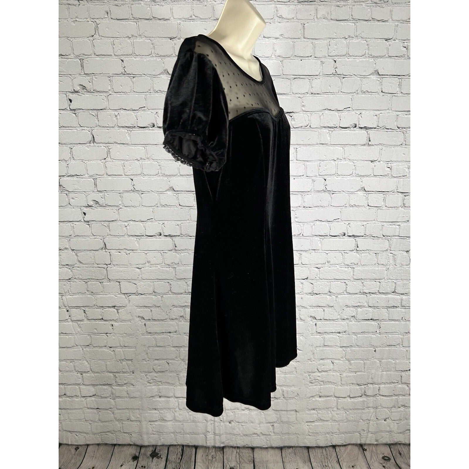 Hot Topic Black Velvet Swiss Dot Yoke Flare Gothic Dress Y2K Women’s M