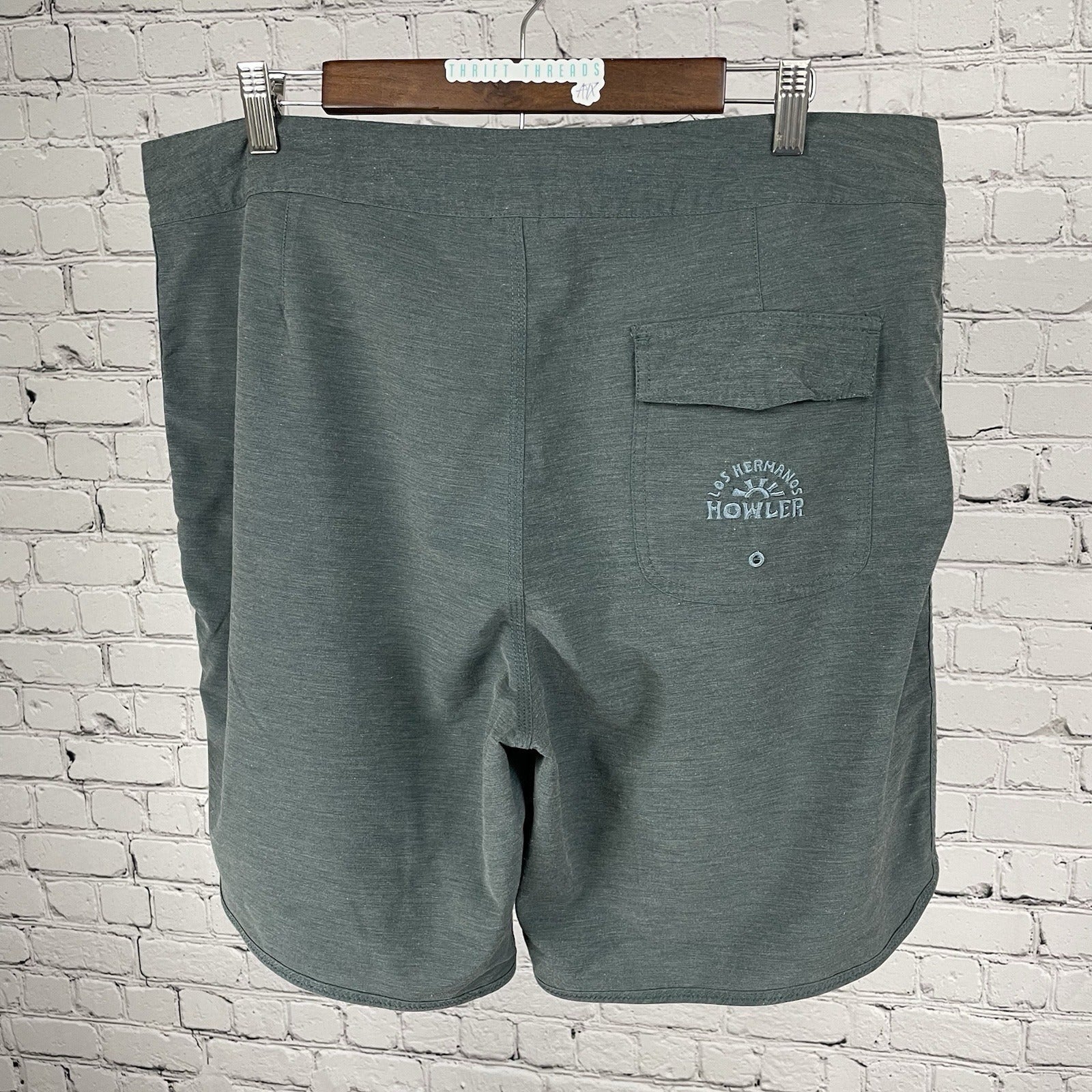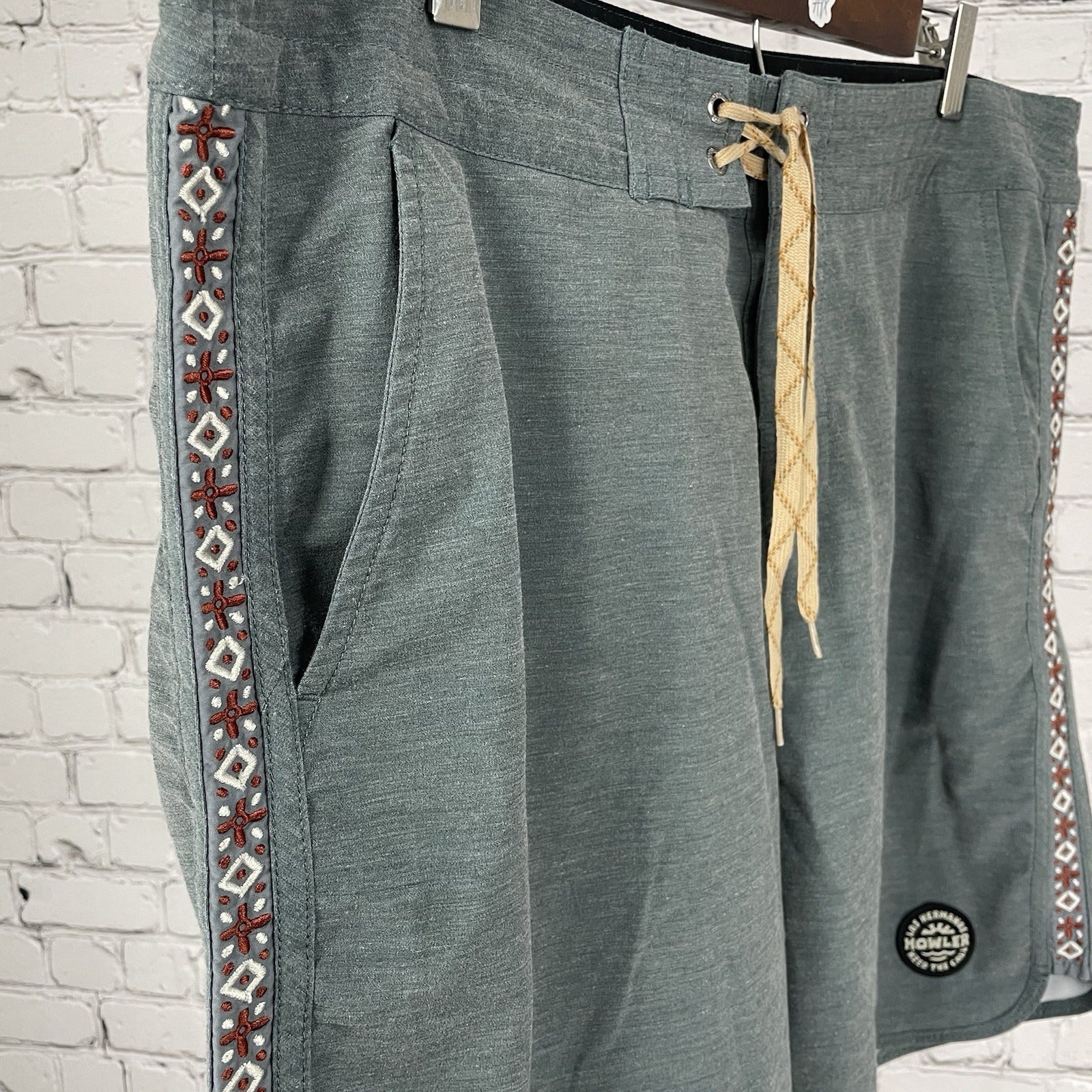 Howler Bros Green Bruja Deluxe Embroidered Board Shorts Swim Trunks Pockets 38