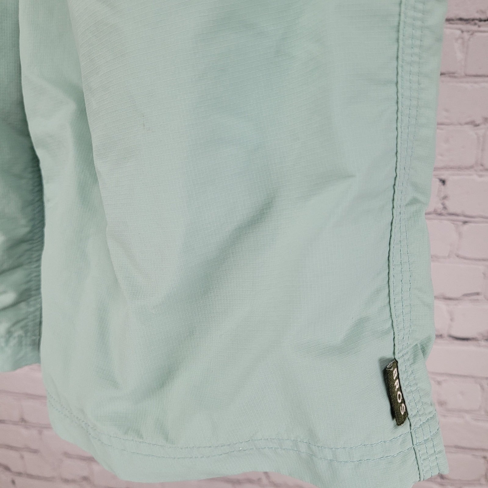 The Howler Bros Green Zip Fly Multiple Pockets Board Shorts Swim Trunks in size 30x9 are a stylish and functional swimwear option for men. With a colorful mint green design, these board shorts feature multiple pockets for added convenience. The zip fly closure adds a modern touch to the classic swim bottom style, making them a versatile choice for beach days or casual outings.