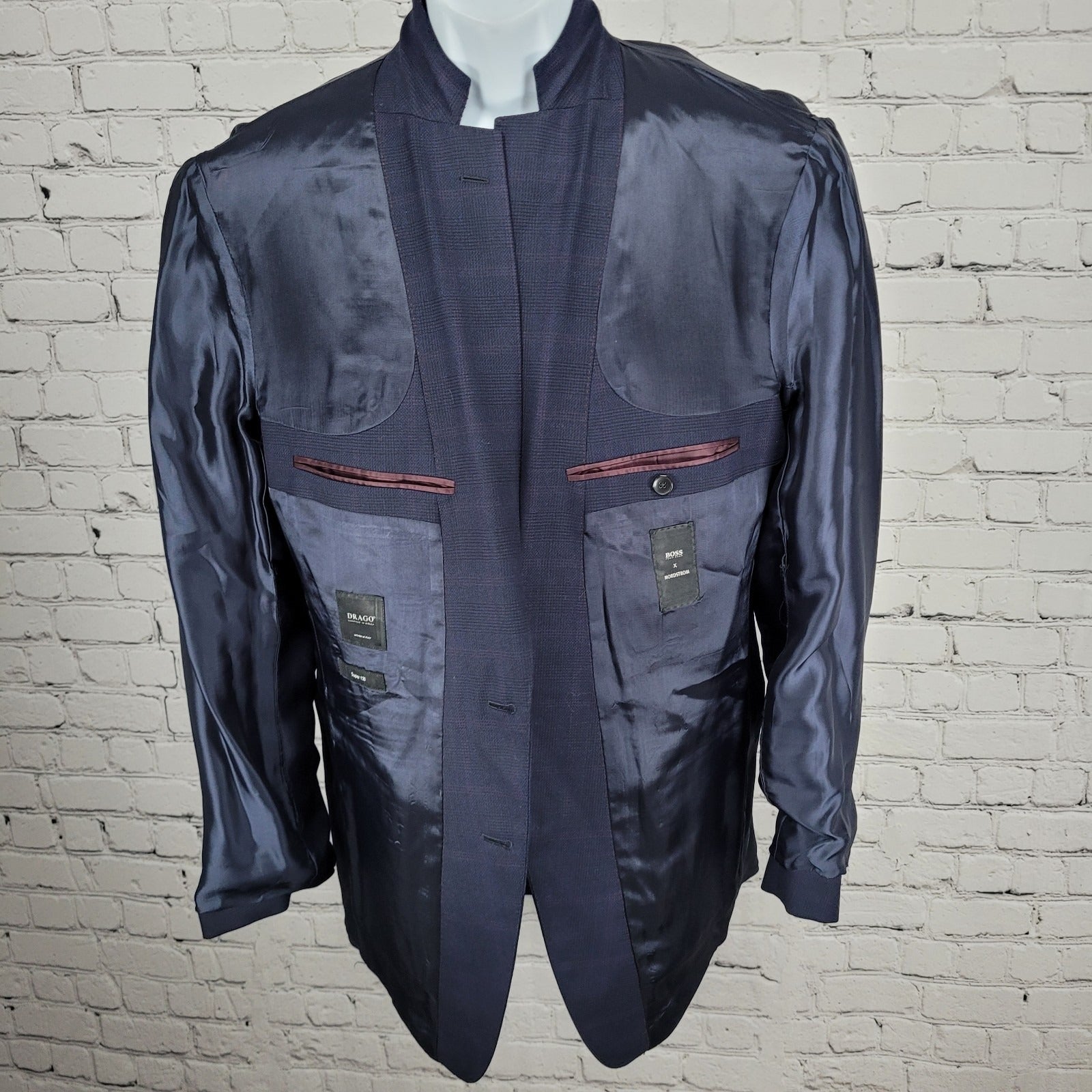 Hugo Boss x Nordstrom Blue 100% Wool Super 120 Drago Check Blazer Sport Coat 42L