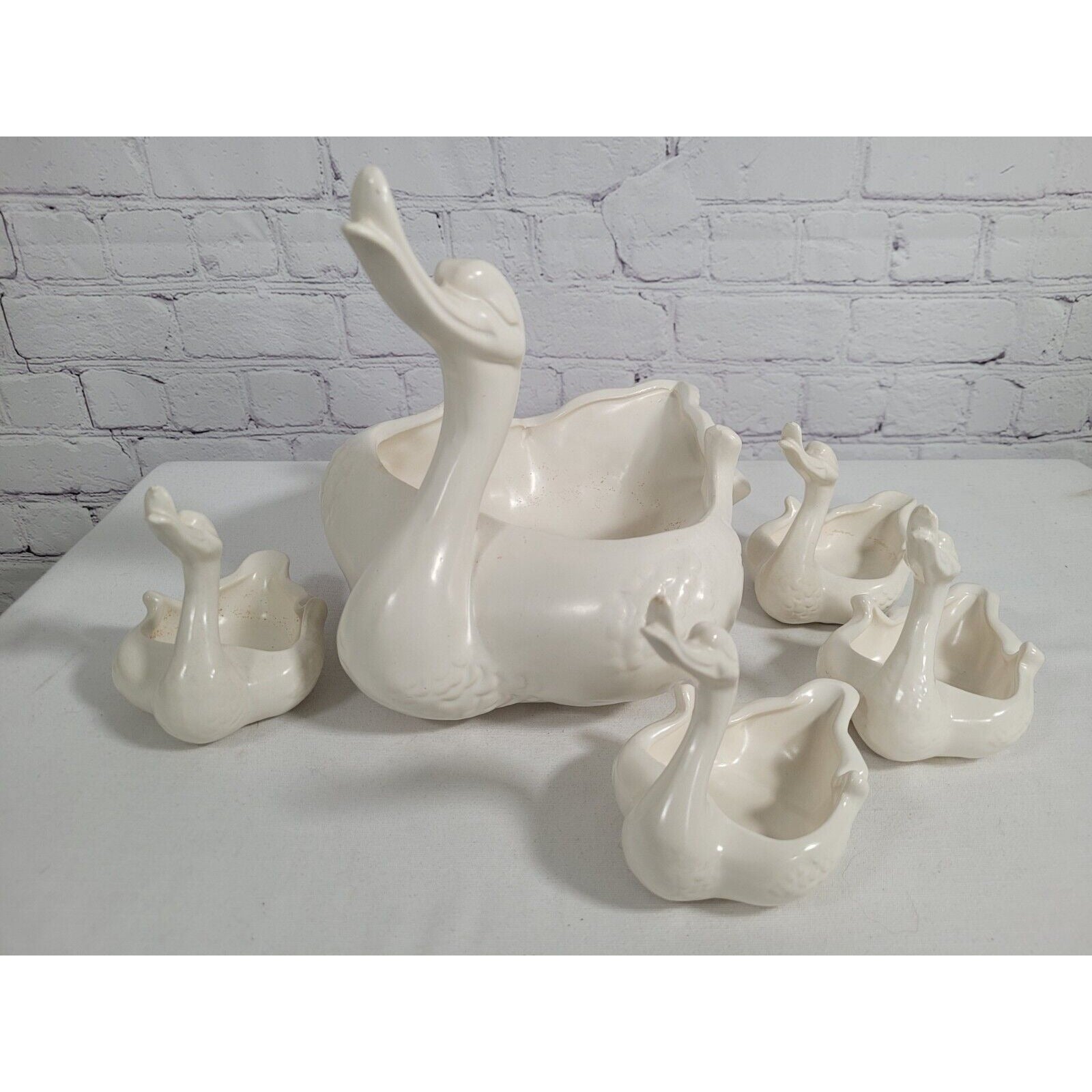 Hull Pottery Imperial MCM #23 White Swan & 4 Babies Planter 1950’s Centerpiece
