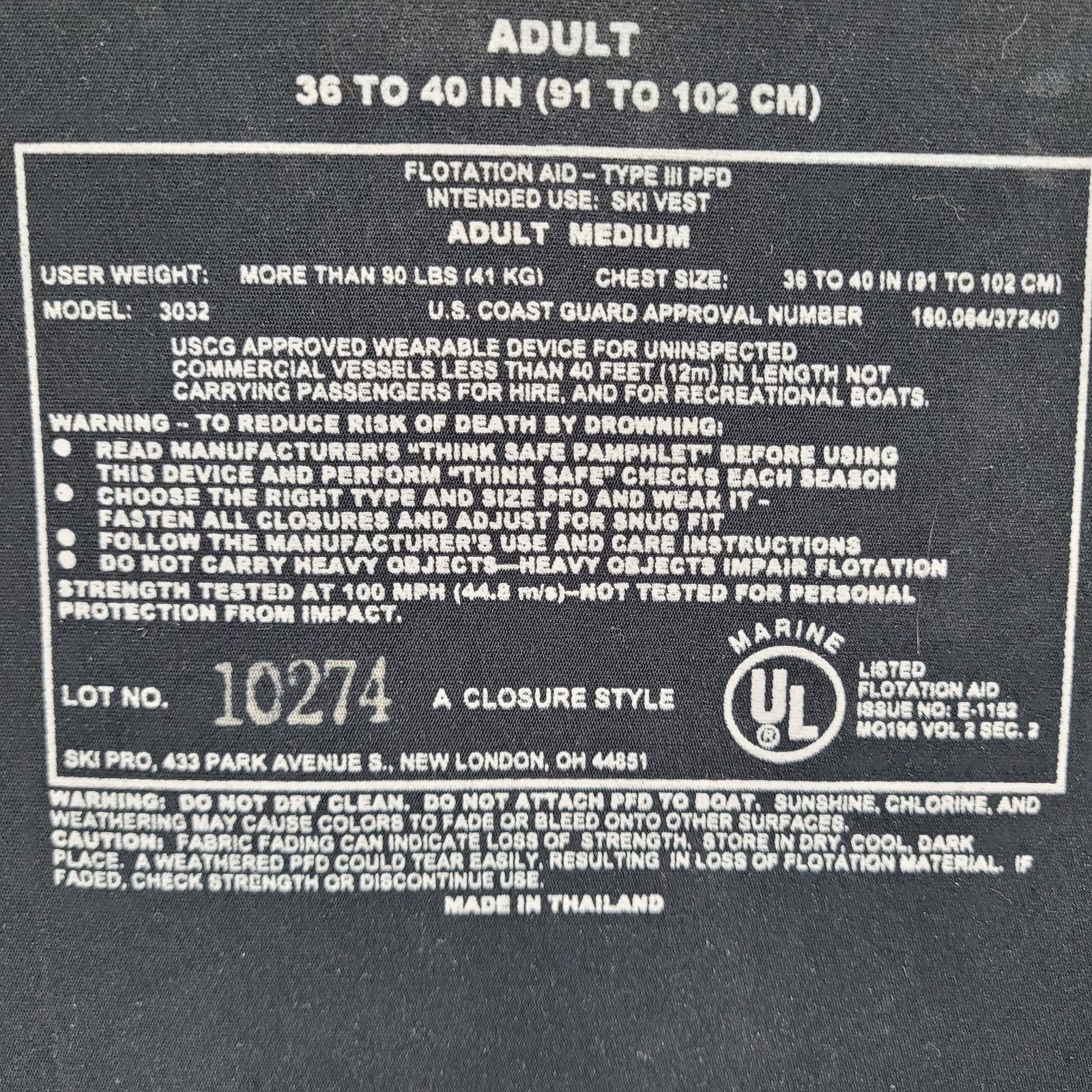 The Hyperlite Black USCG Approved Flotation Aid Life Jacket Ski Vest in size Medium is a high-quality and reliable safety gear designed for water sports activities. Made by the reputable brand Hyperlite and manufactured in Thailand, this life jacket offers the necessary flotation and protection for individuals engaging in skiing or other water sports adventures. With its USCG approval, users can trust in its safety features and durability, making it an essential piece of gear for anyone participating in water-based activities.