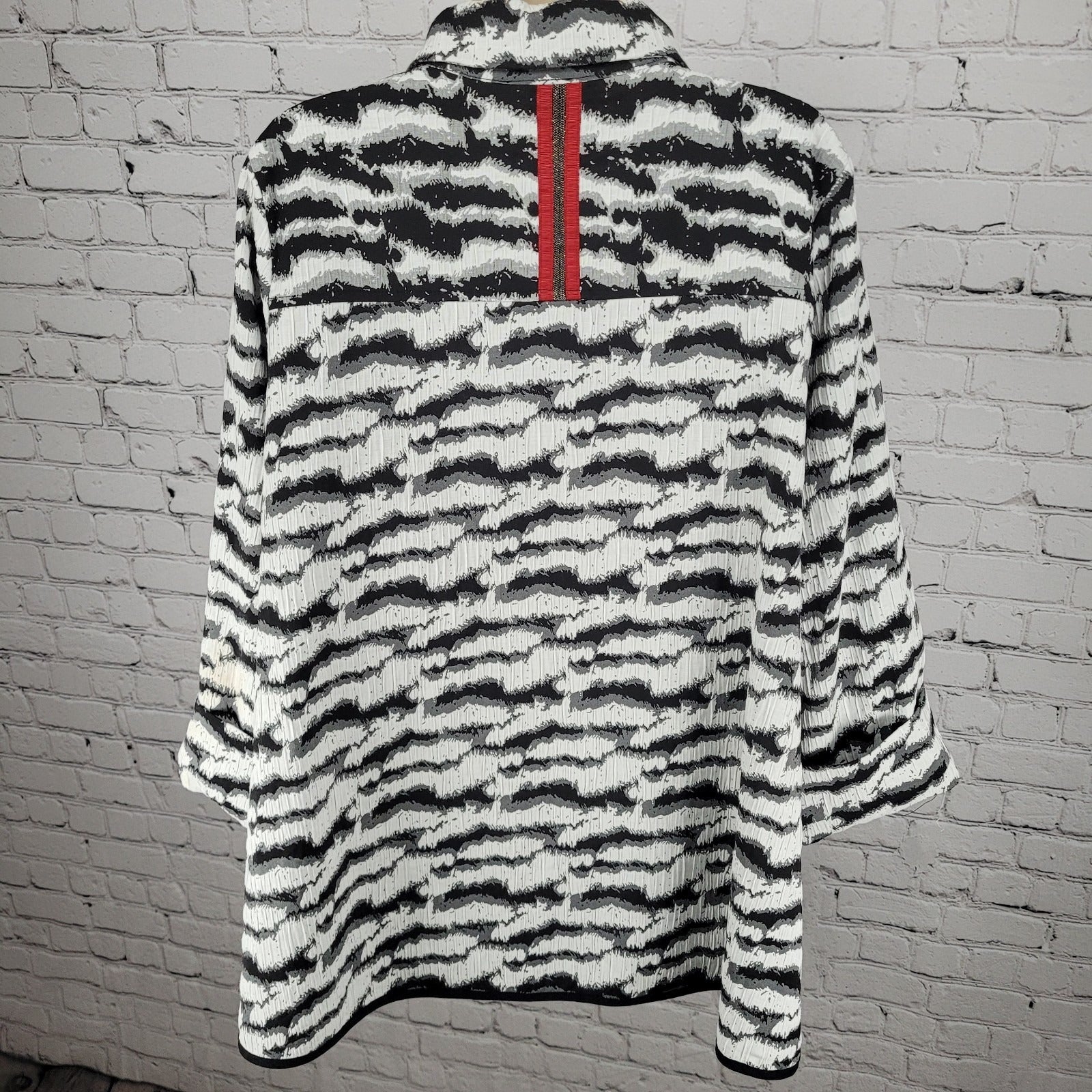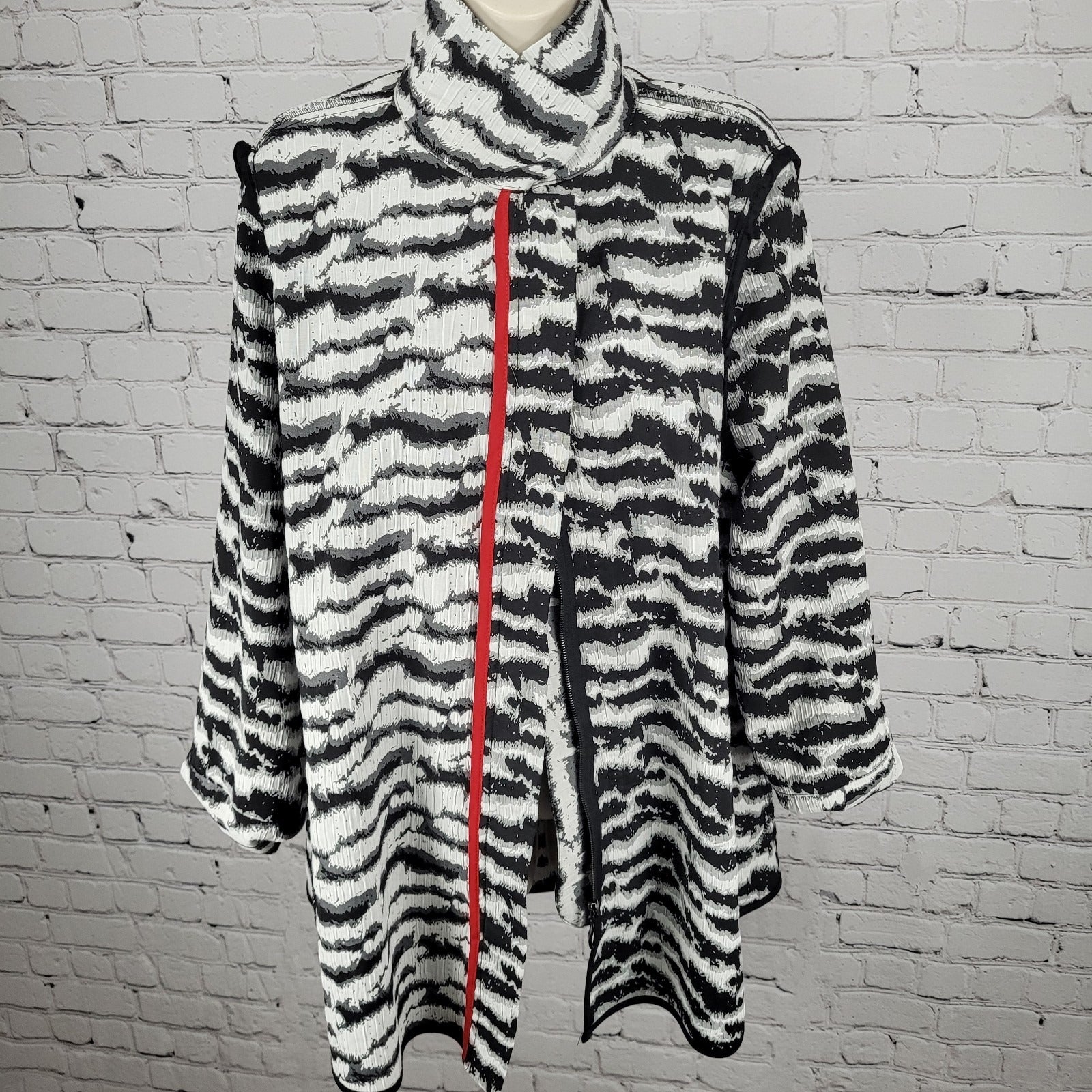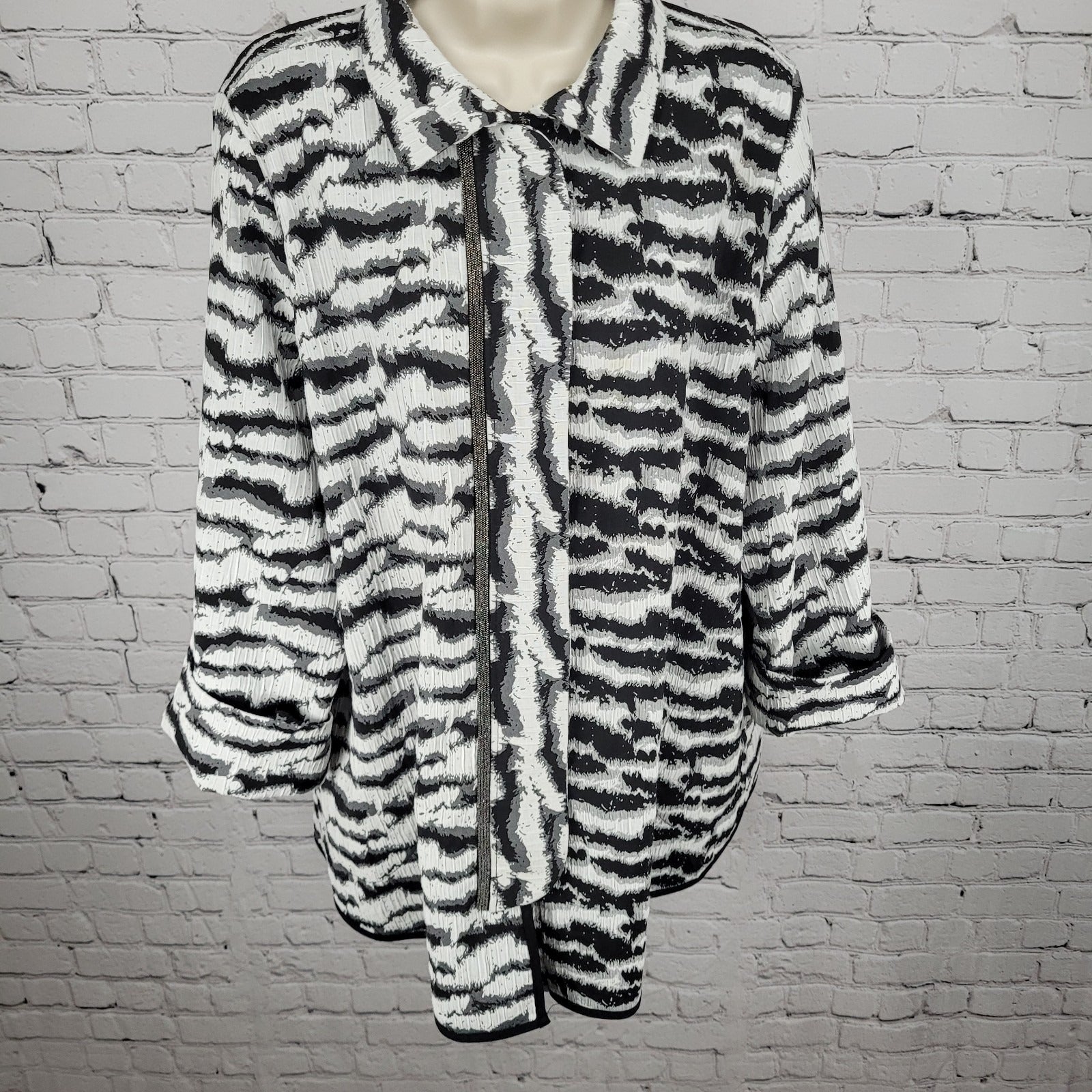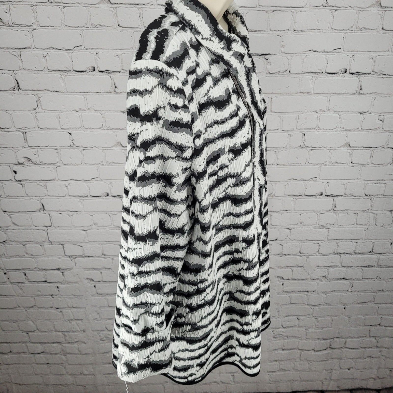 Ic By Connie K Grey Zebra Full Zip Collared Lightweight Jacket USA Made Size XL
