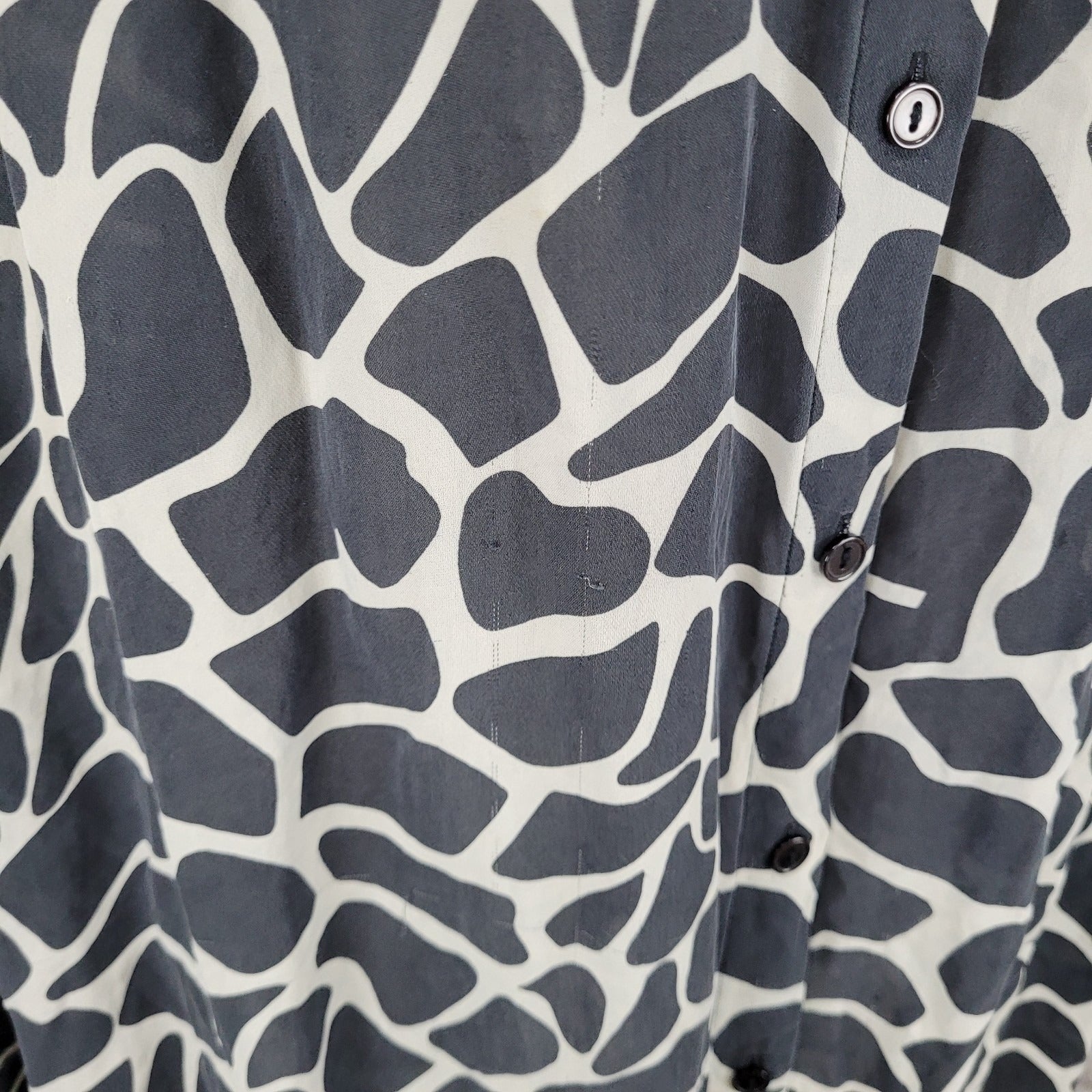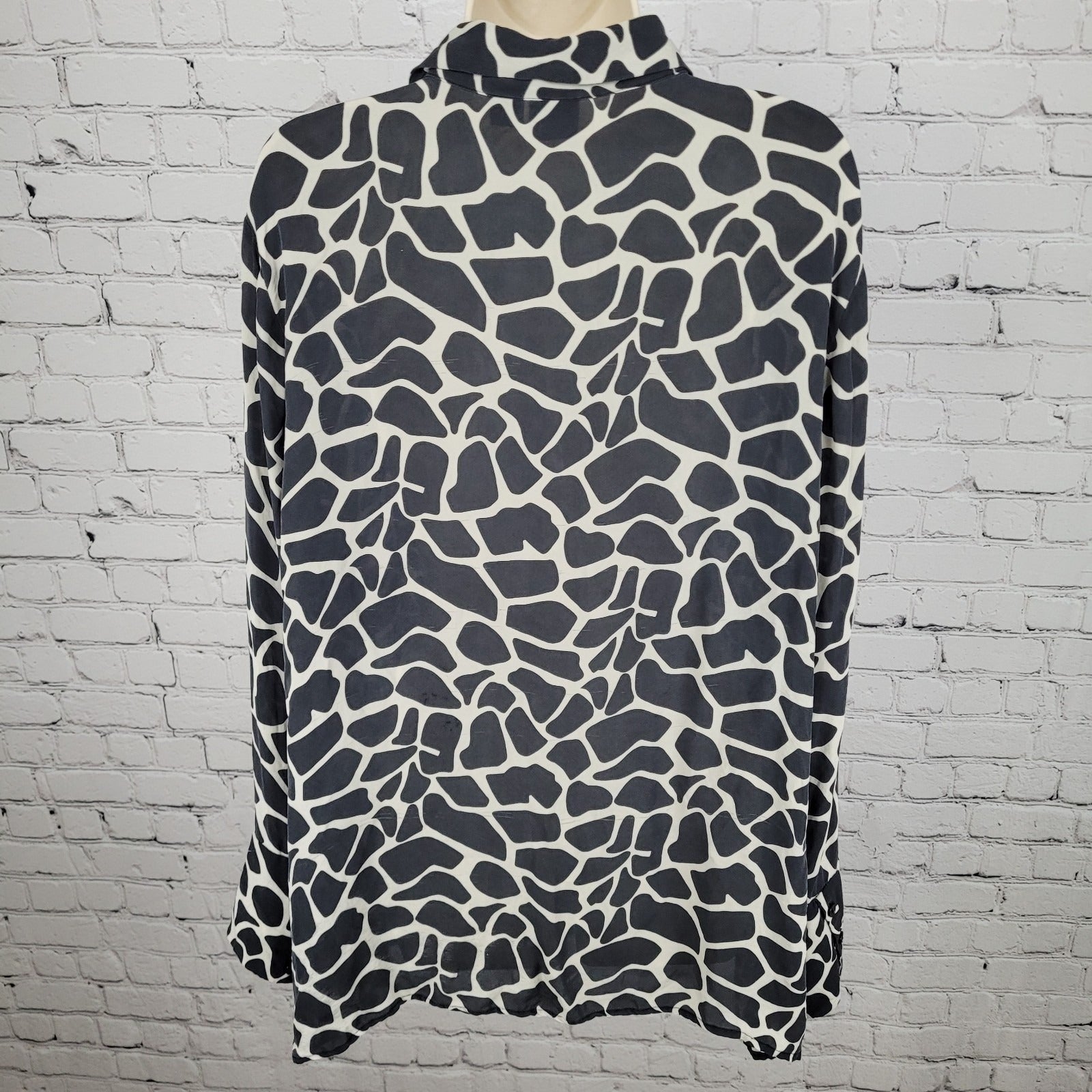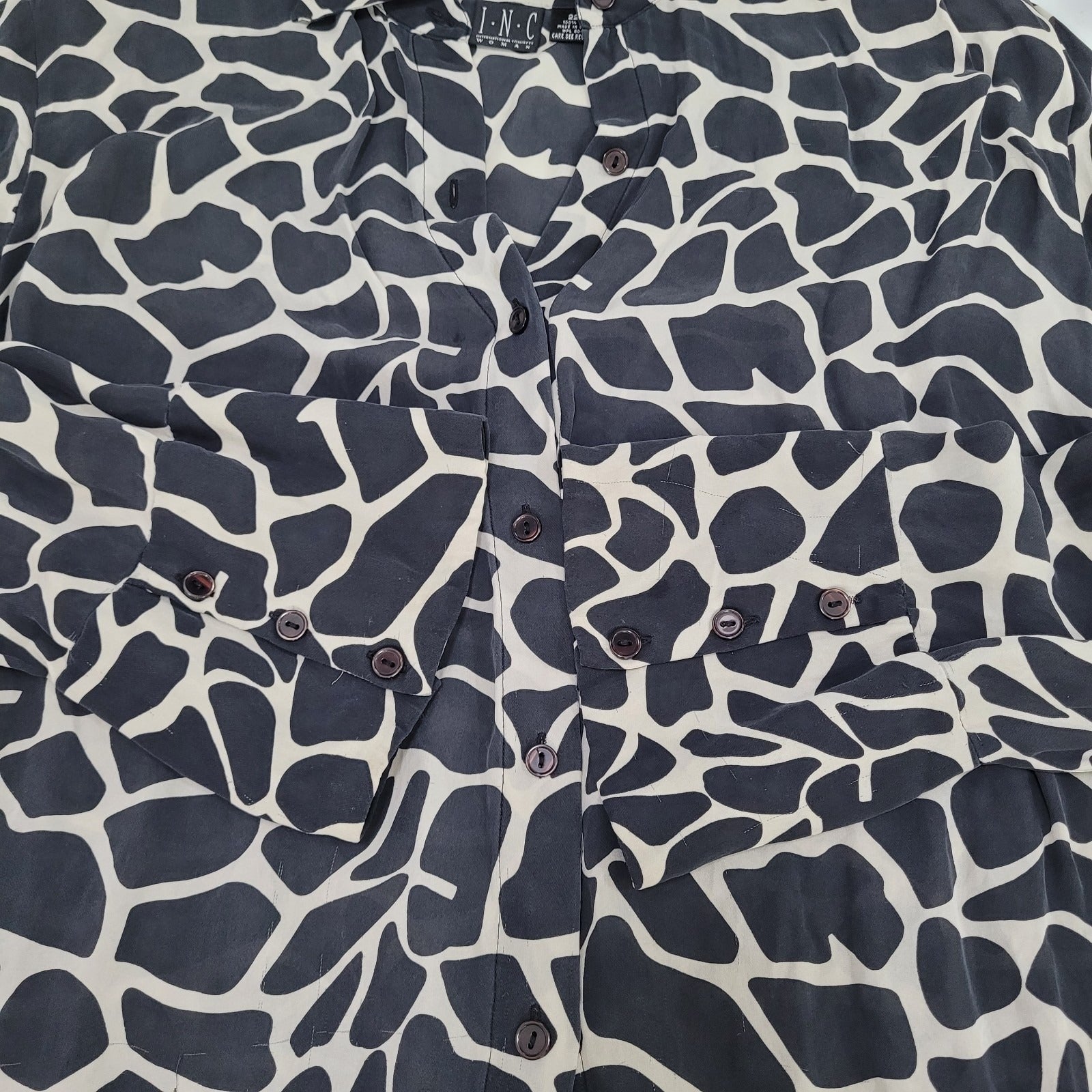 INC Black 100% Silk Animal Print Button Up Long Sleeve Blouse Shirt Size 22W