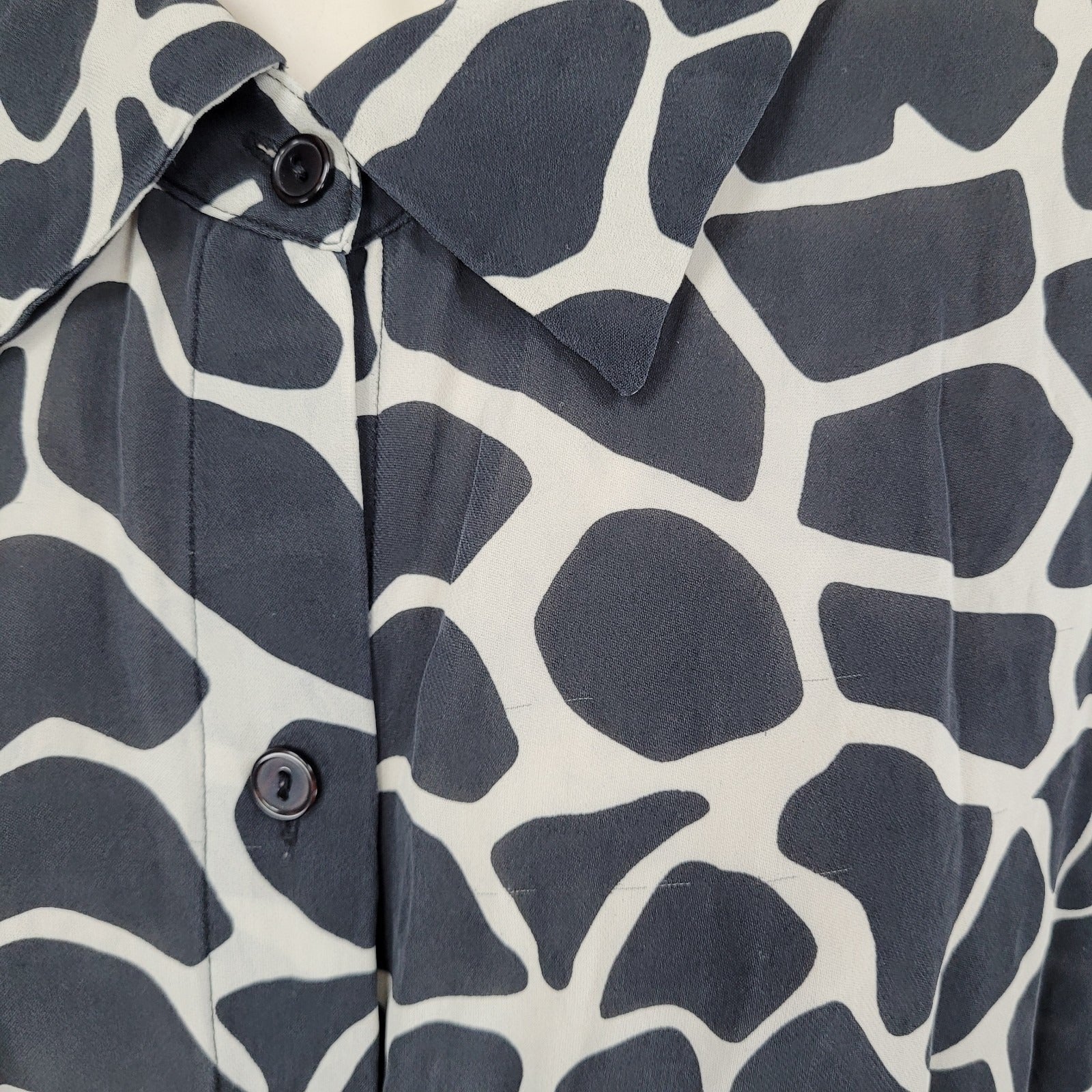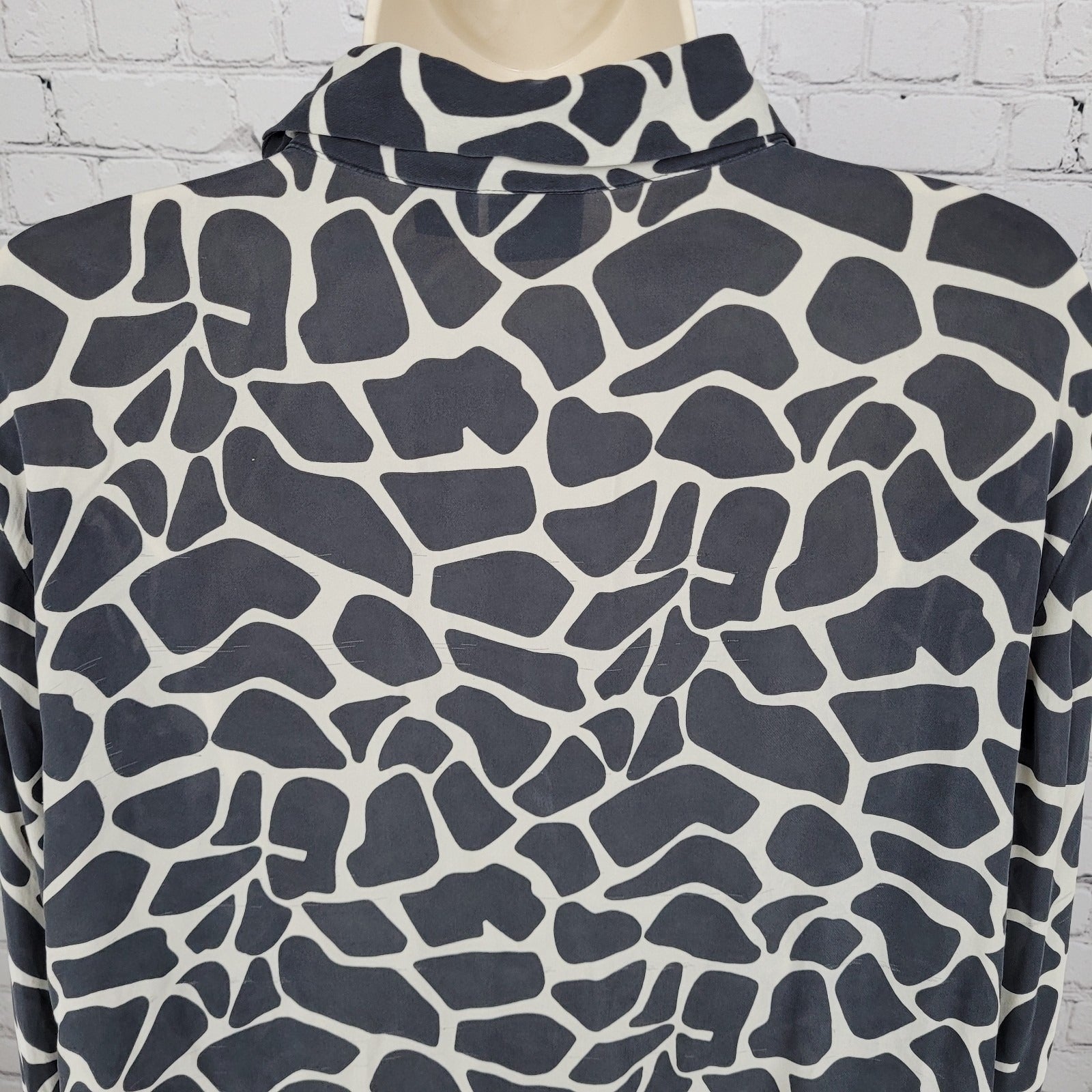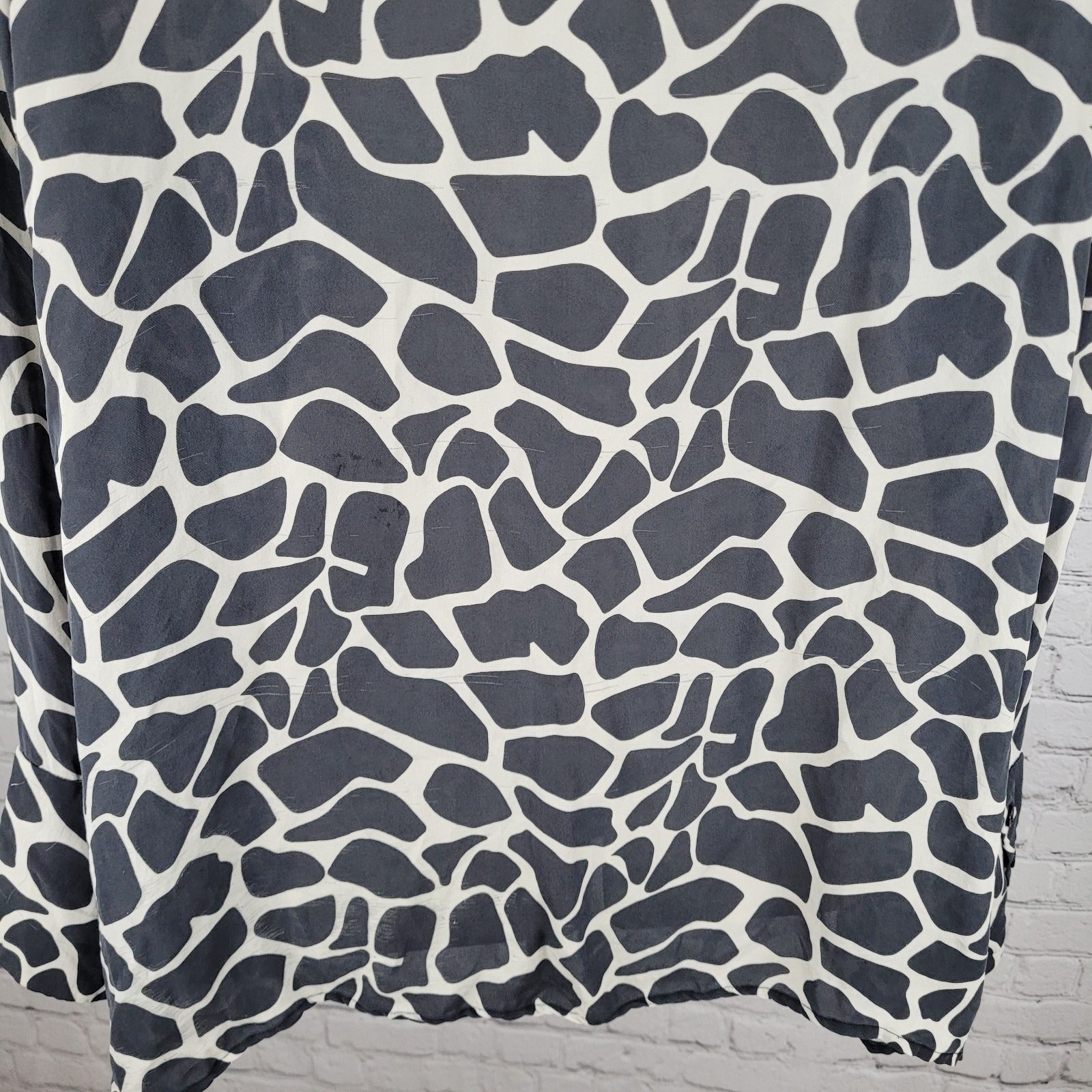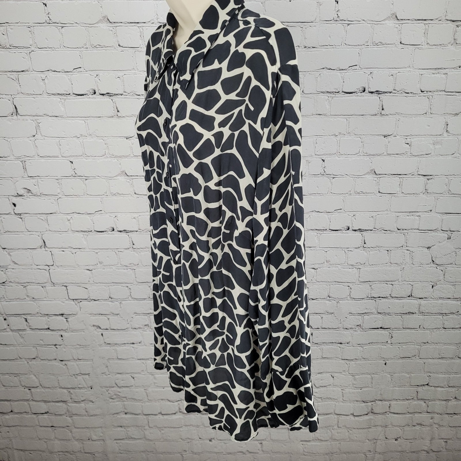 INC Black 100% Silk Animal Print Button Up Long Sleeve Blouse Shirt Size 22W
