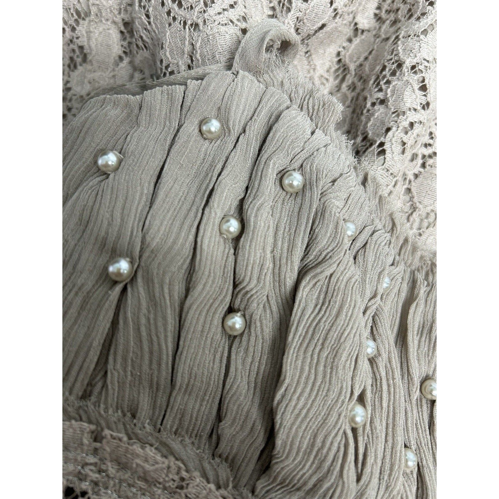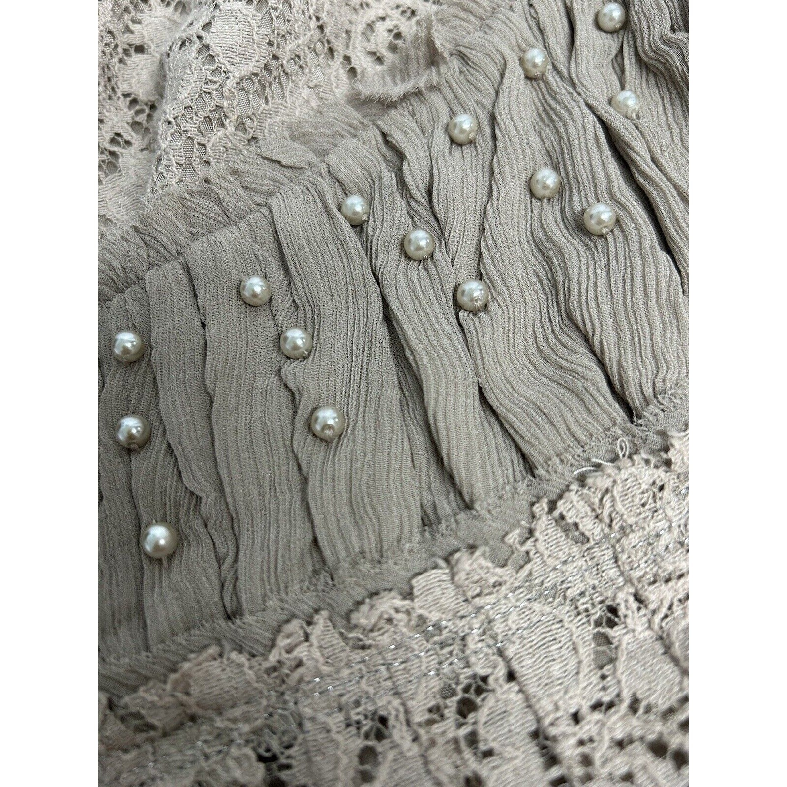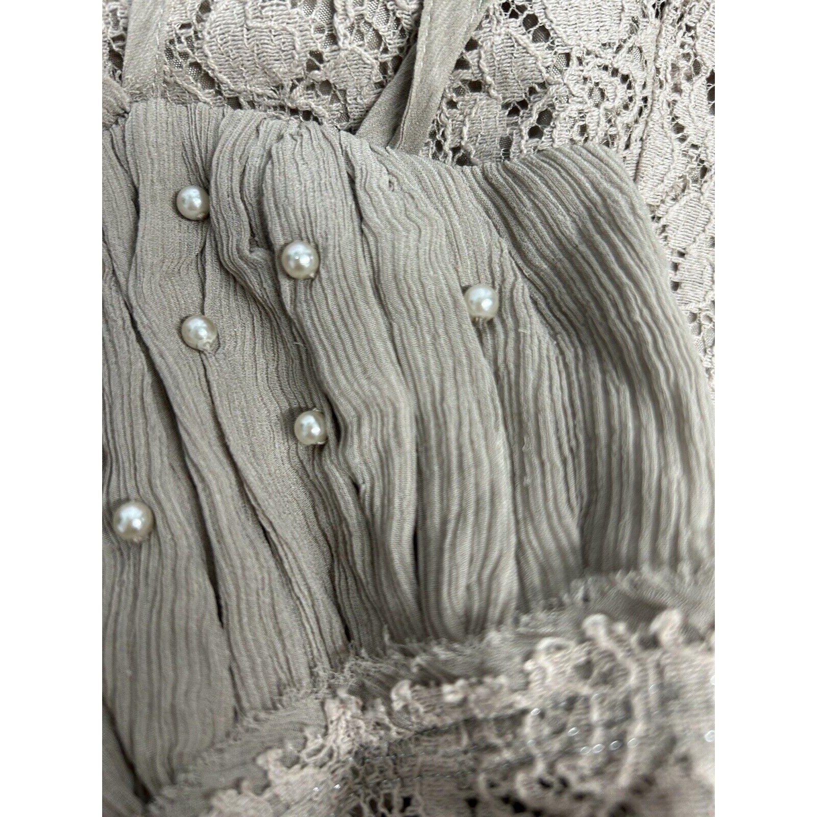 Intuitions Brown Floral Silk Blend Adjustable Spaghetti Strap Beaded Dress 4