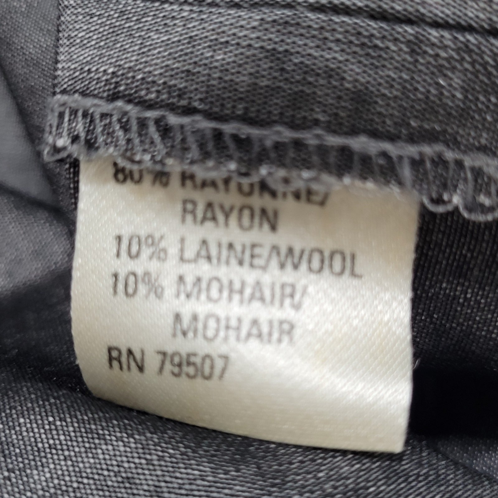 Chipped zipper slider and tab and loose stitching above back slit, as pictured. Several small white marks.