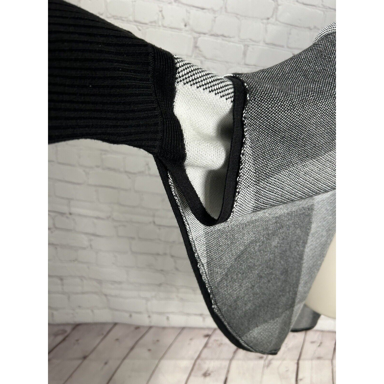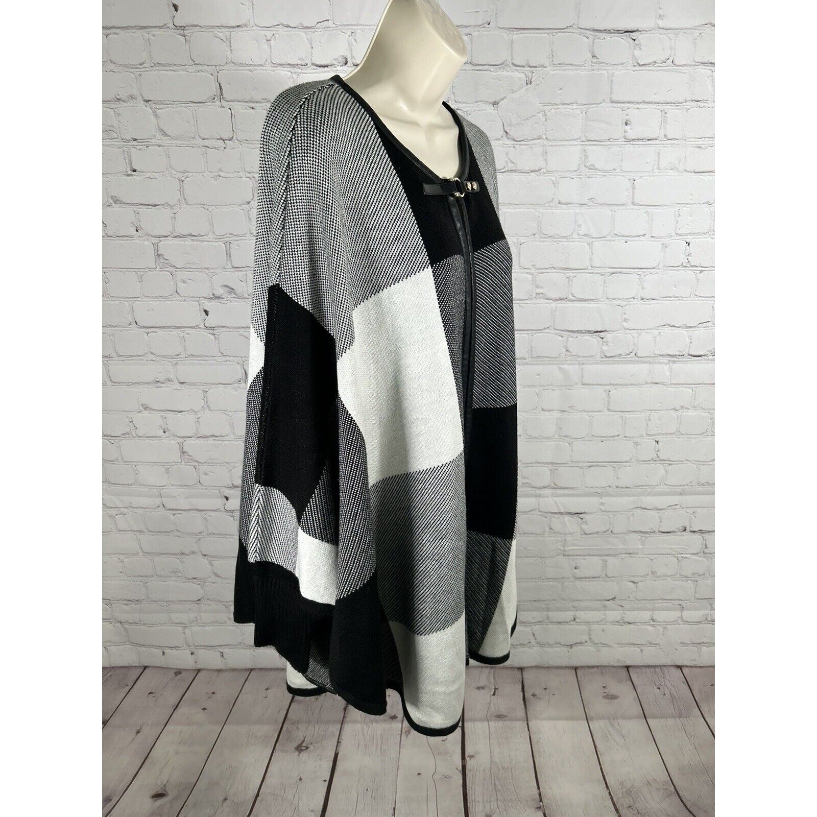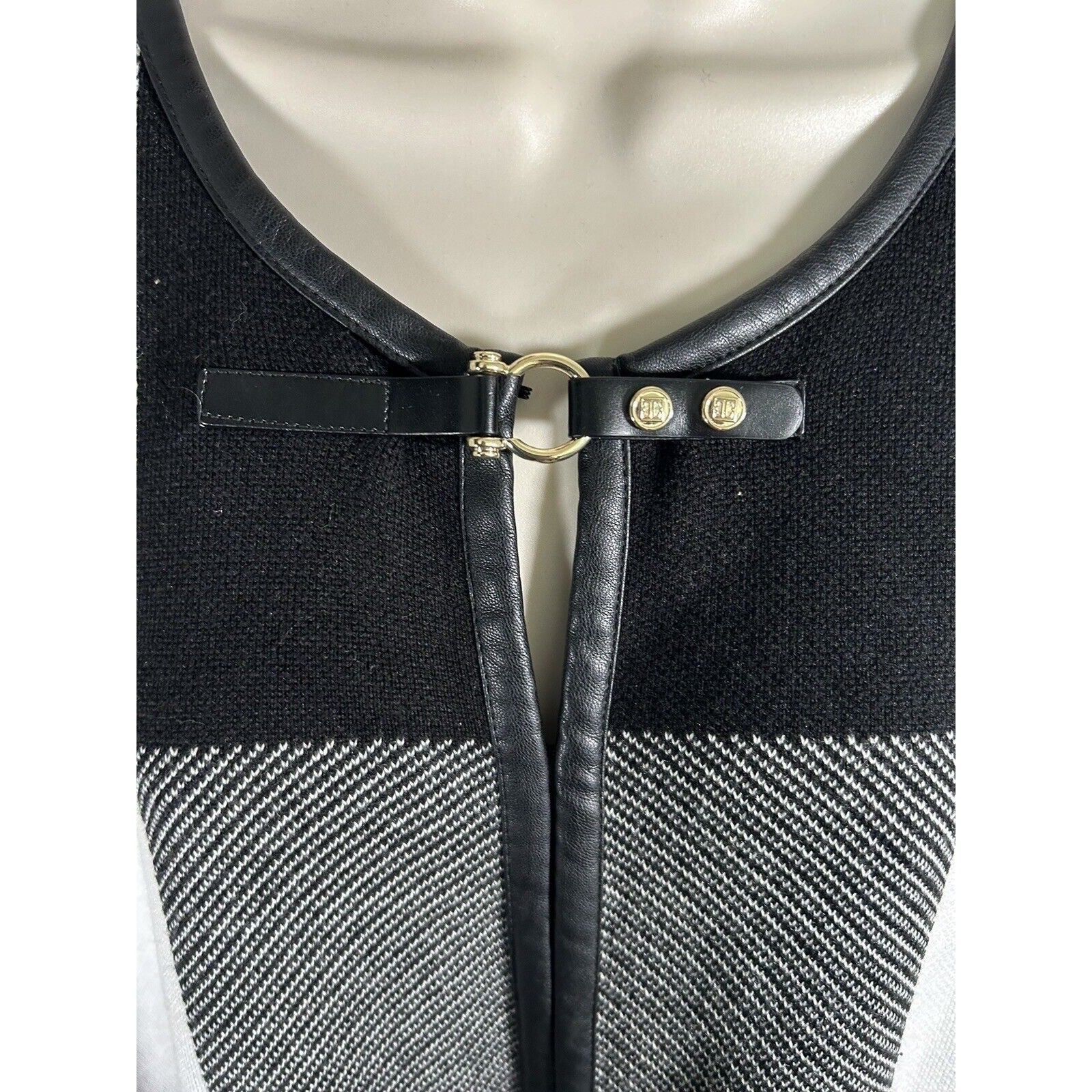 Ivanka Trump Womens Poncho Cape Plaid Black White Vegan Leather Trim Sz Xs/S