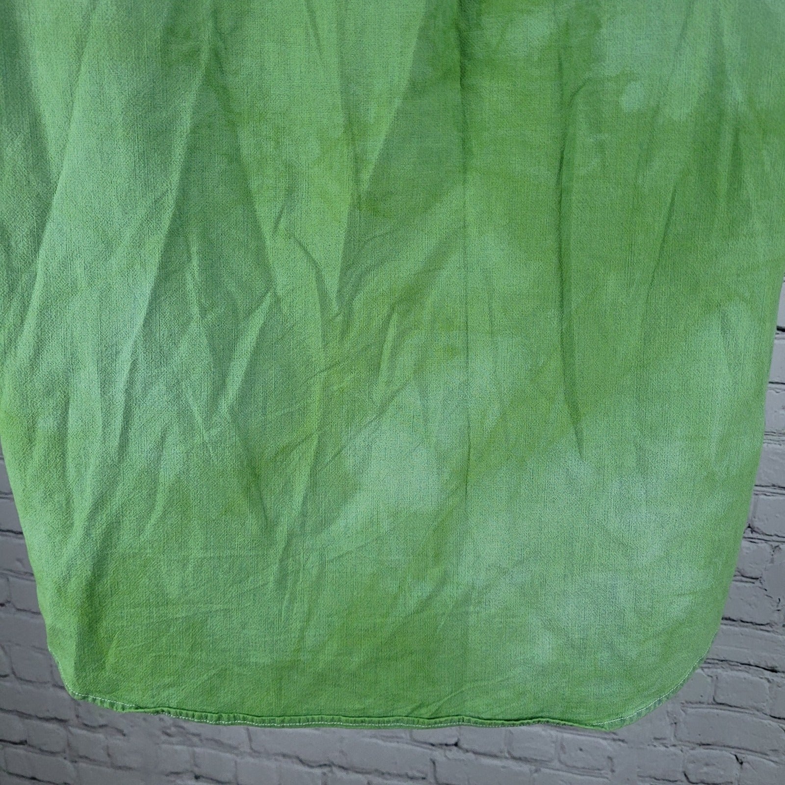 The J.CREW Green Organic Cotton Classic Fit Button Down Collar Shirt in Size Large is a stylish and versatile addition to any man's wardrobe. Made from lightweight and breathable organic cotton, this short sleeve shirt features a tie dye pattern in a vibrant green color, perfect for the summer, fall, and spring seasons. The classic fit and button-down collar give it a timeless look that is suitable for casual, travel, and workwear occasions. With its easy care instructions and convenient pockets, this shirt is a practical and fashionable choice for everyday wear.