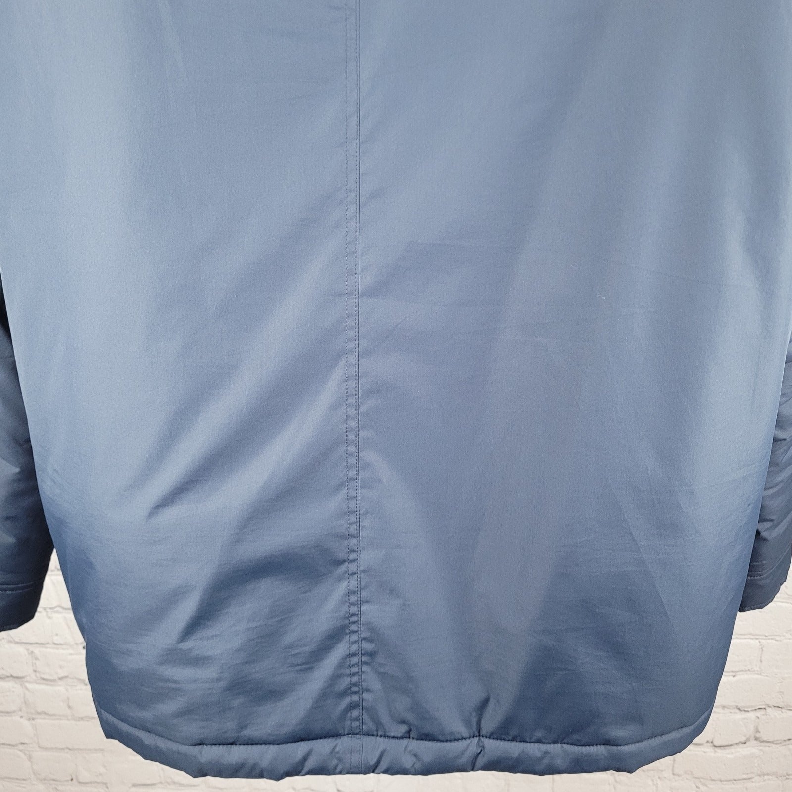 The J.CREW Merchantile Navy Sherpa Hooded Insulated Knit Cuffs Jacket in Size XL is a stylish and functional outerwear piece perfect for the colder seasons. Made from polyester with a polyester lining, this puffer jacket features a band collar, hood, full zip closure, and multiple pockets for added convenience. With a mid-length cut and a solid blue color, this jacket is suitable for travel, casual wear, and workwear, making it a versatile choice. The XL size and regular fit ensure a comfortable and flattering silhouette.