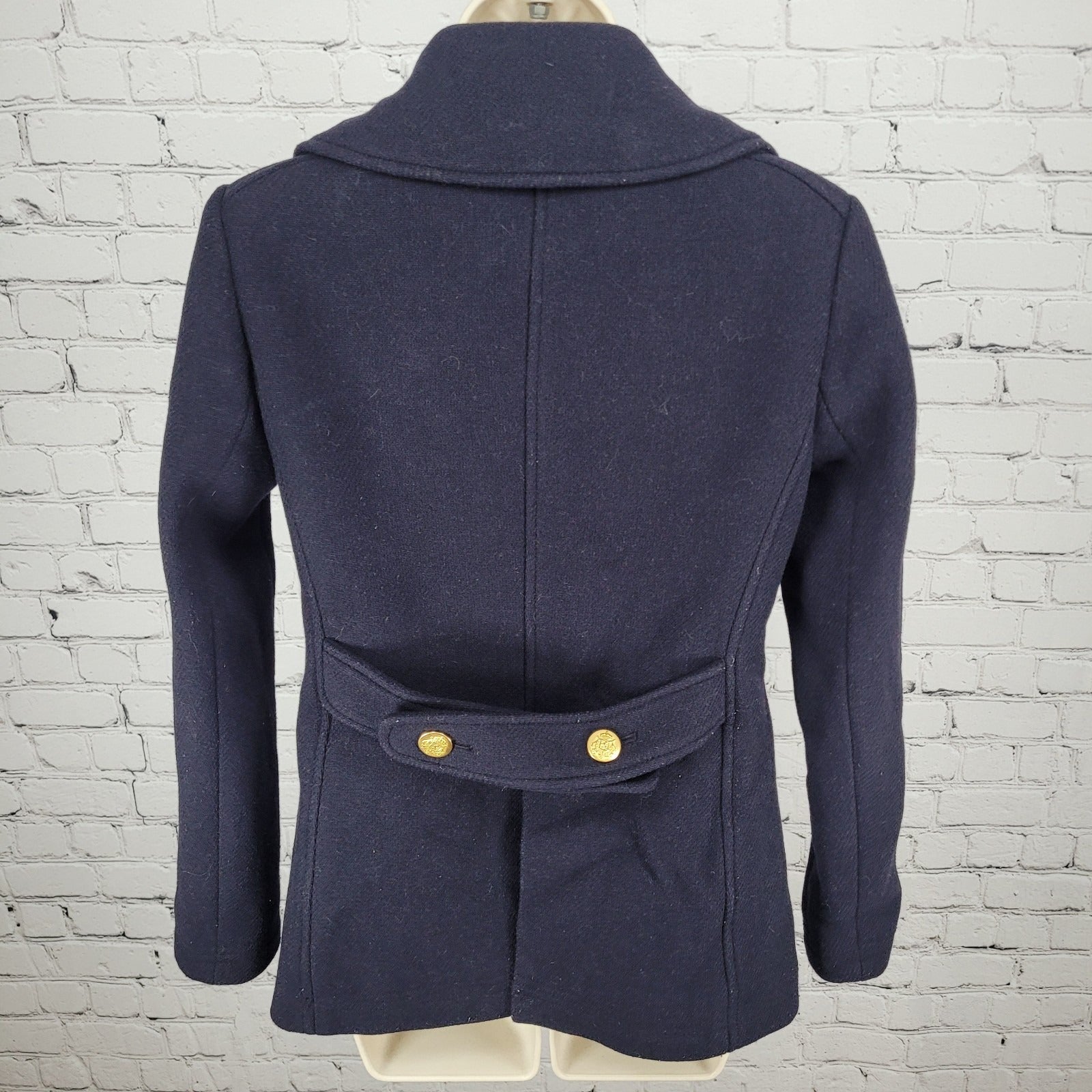 J.CREW Stadium Cloth By Nello Gori Navy Wool Blend Buttoned Pea Coat Size 2
