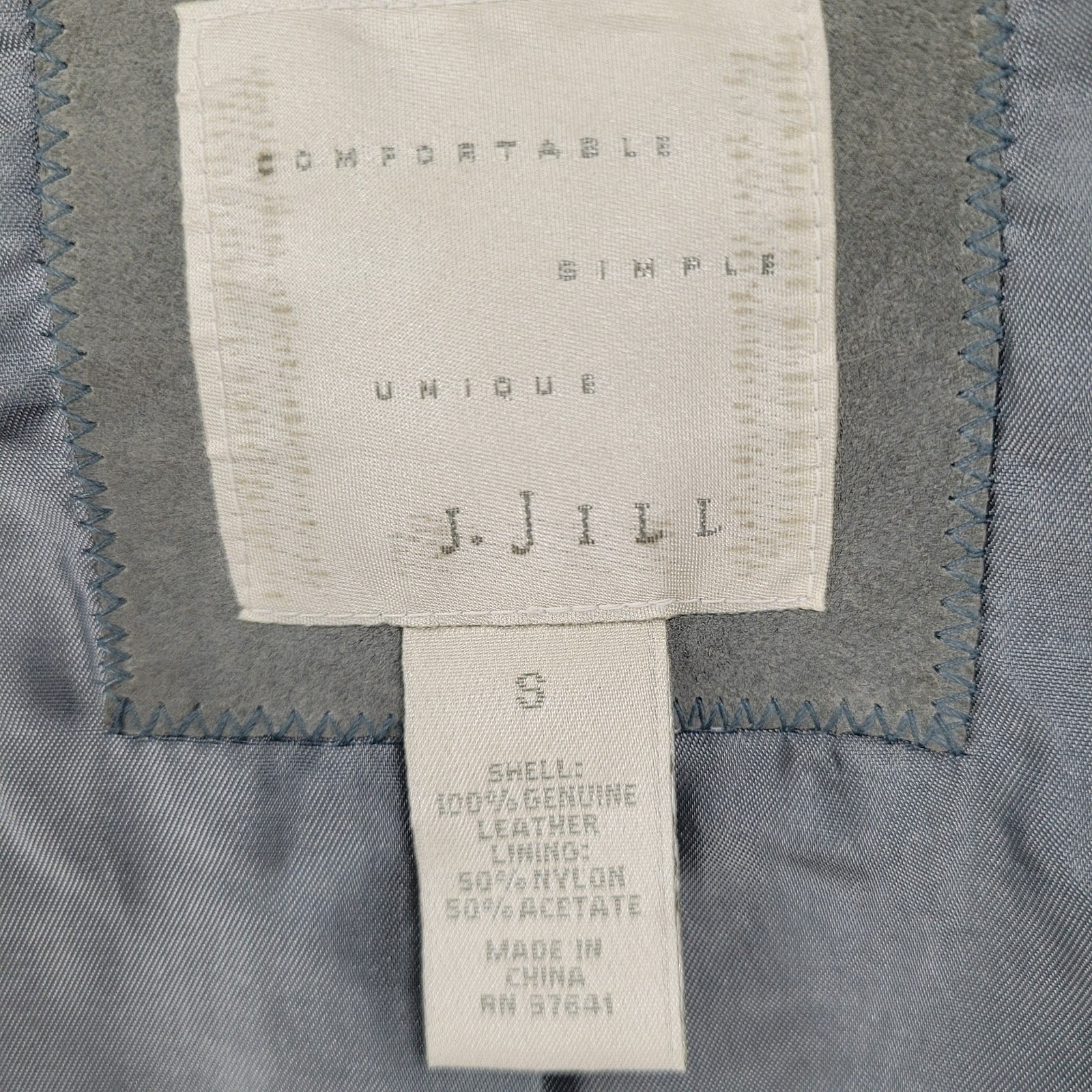 The J. Jill Green Genuine Suede Leather Pockets Full Zip Jacket in size Small is a stylish and versatile addition to any woman's wardrobe. Made from high-quality leather, this jacket features a flattering full zip design with convenient pockets for added functionality.