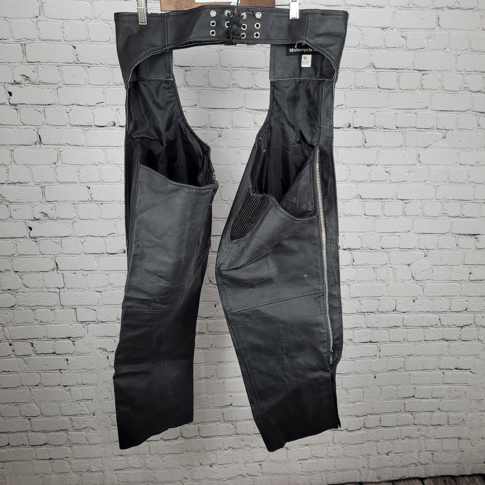 Jafrum Motorcycle Gear Black Belted Adjustable Lined Chaps Biker Pants Size XL