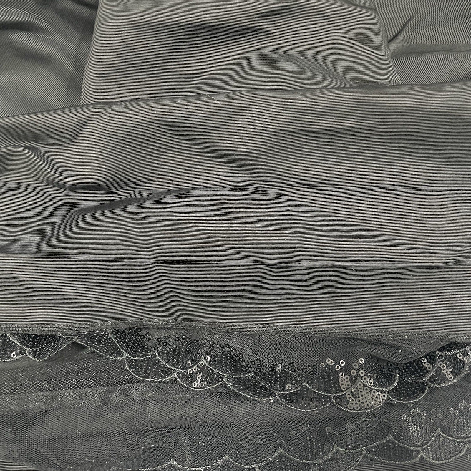 This Jason Wu dress is a chic and stylish choice for women in size Small. The knee-length A-Line dress features a solid black color with pleated accents and sequin detailing for a touch of glamour. It has a round neckline, sleeveless design, and a zip closure for easy wear. Made from a blend of polyester and nylon, the dress is machine washable and has a lined interior with convenient pockets. Perfect for various occasions, this dress combines sophistication with practicality, making it a versatile addition to any wardrobe.