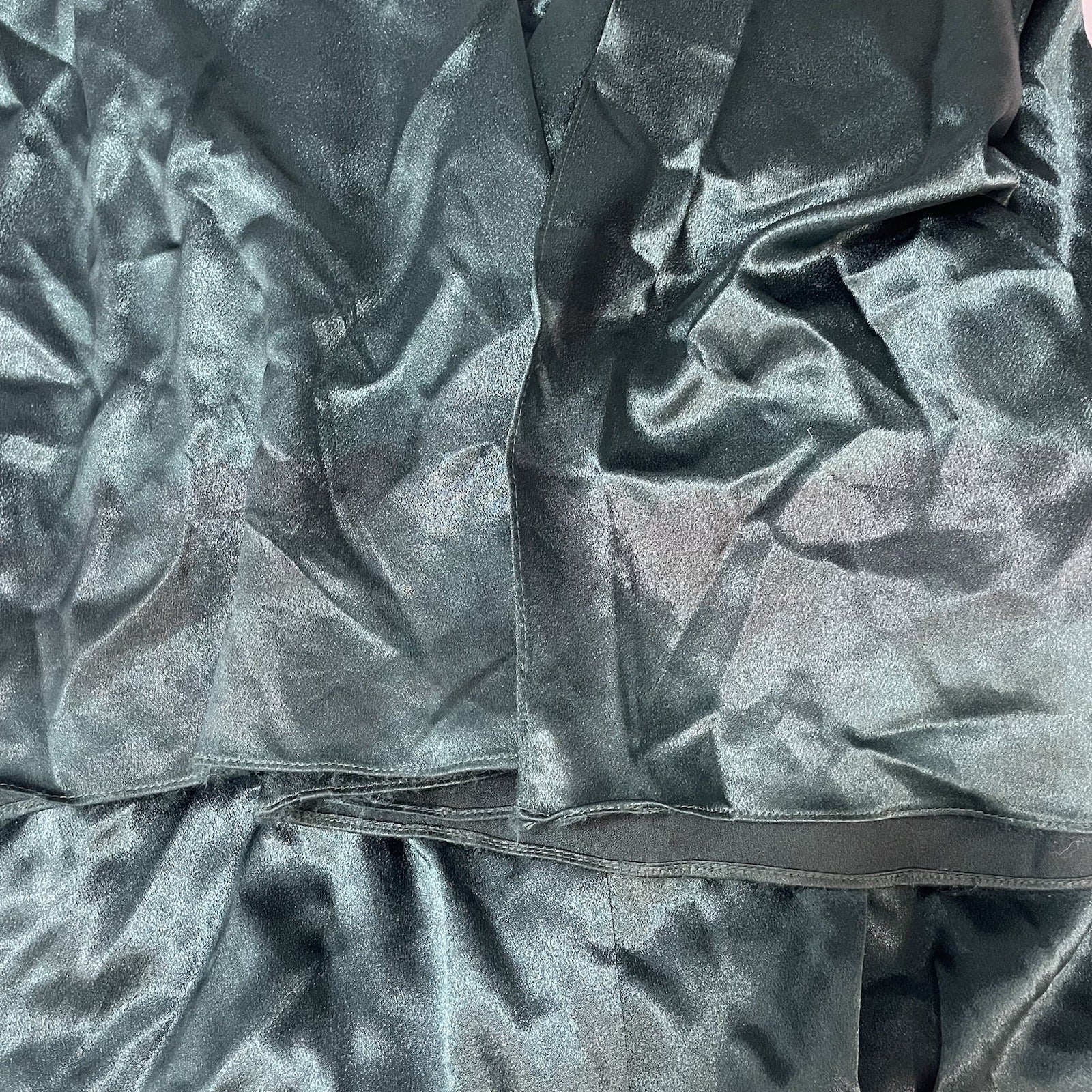 Undone seam along front bust fabric, light staining on side, wear and heavier staining near bottom hem, and missing loop to hook & eye closure, as pictured.