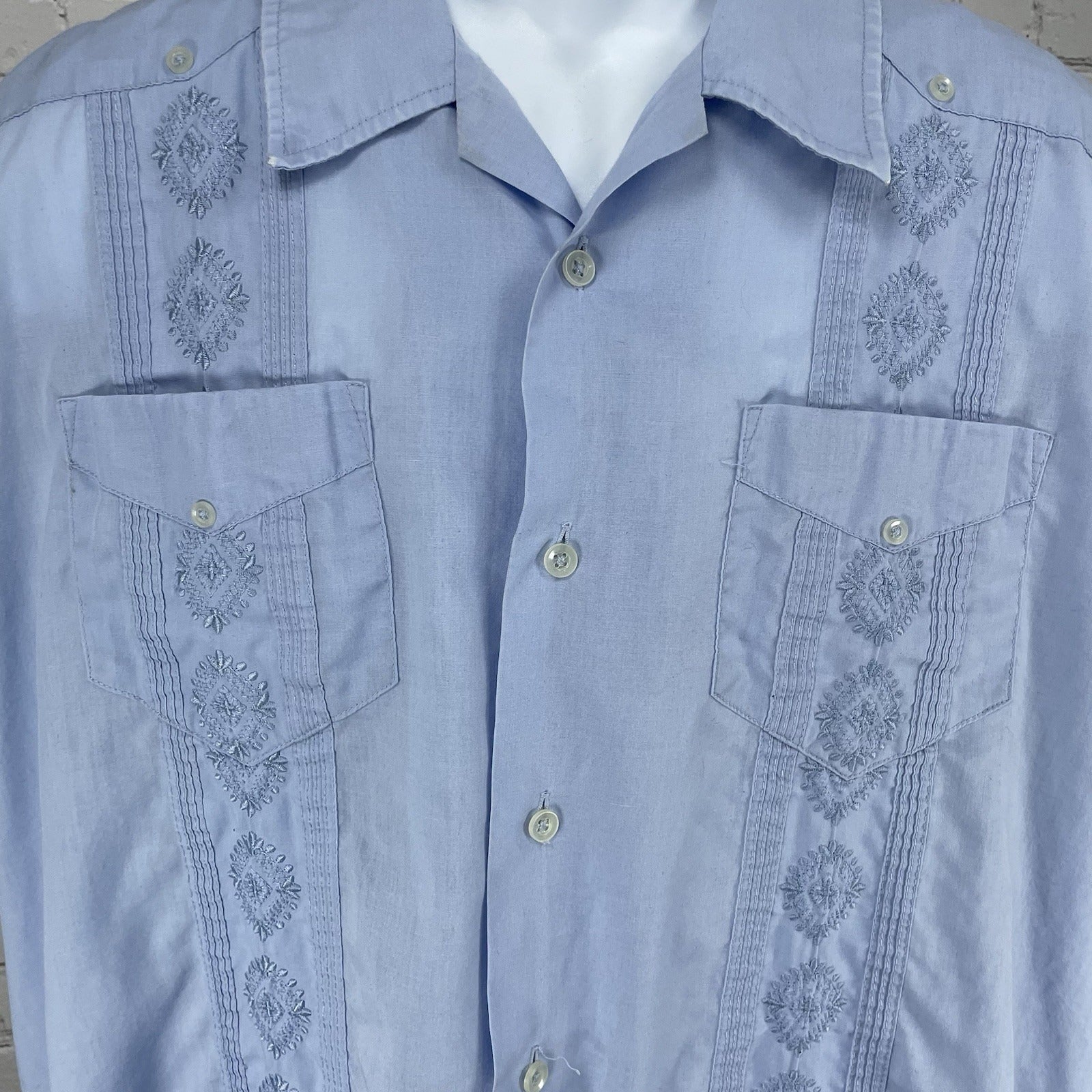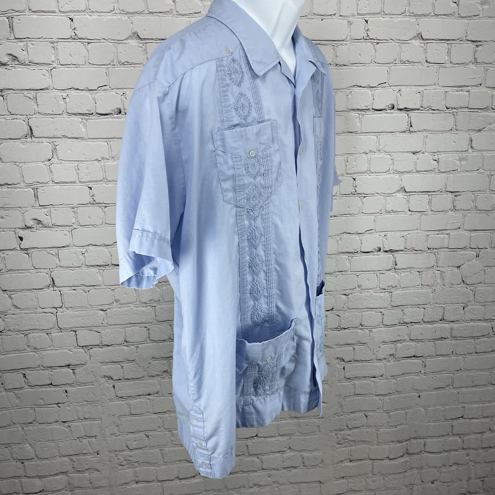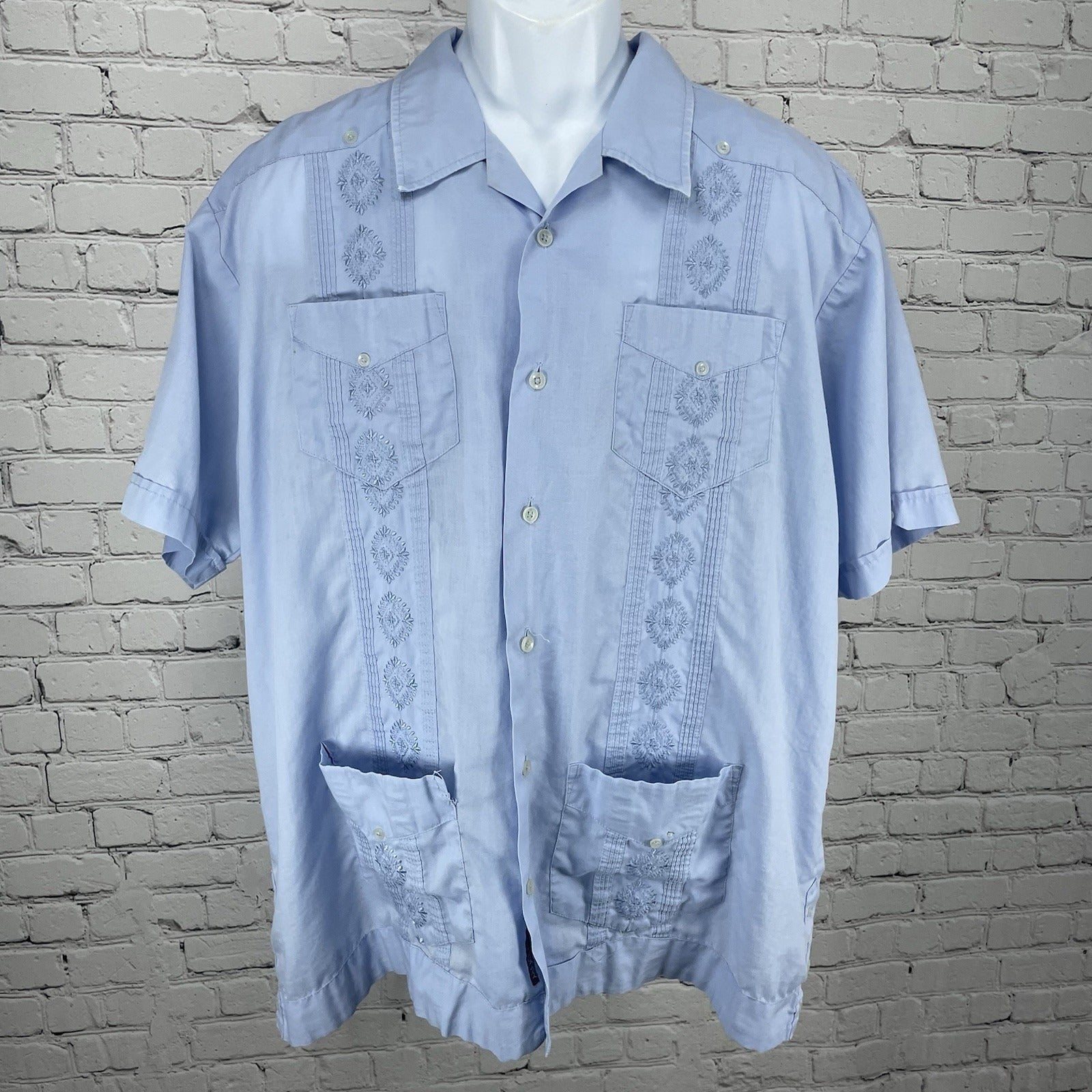John Henry Blue Embroidered Guayabera Lightweight Button Short Sleeve Shirt XL