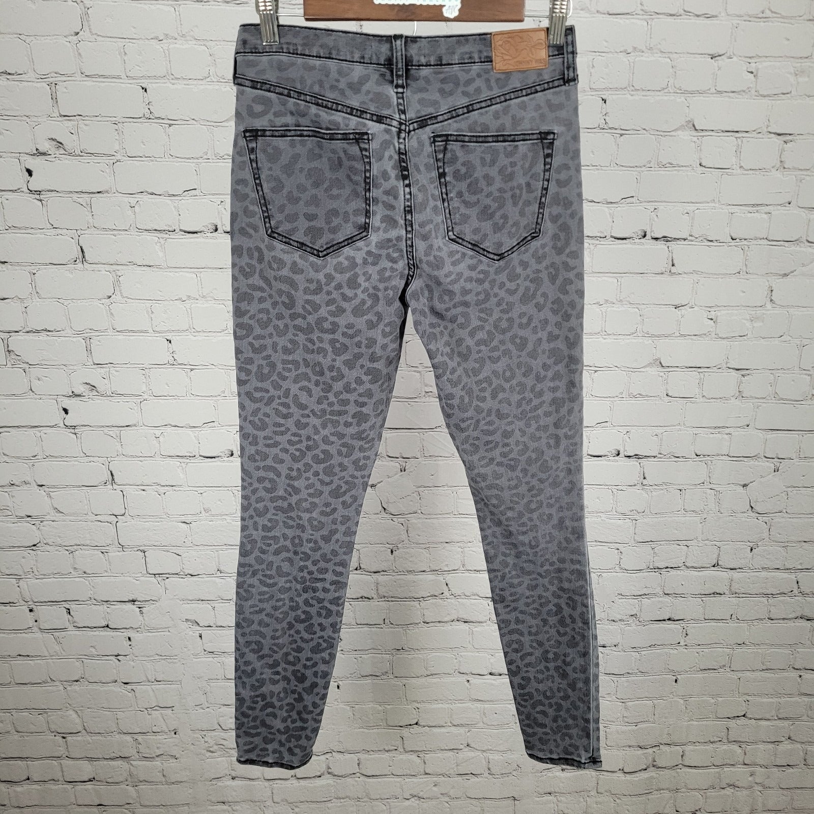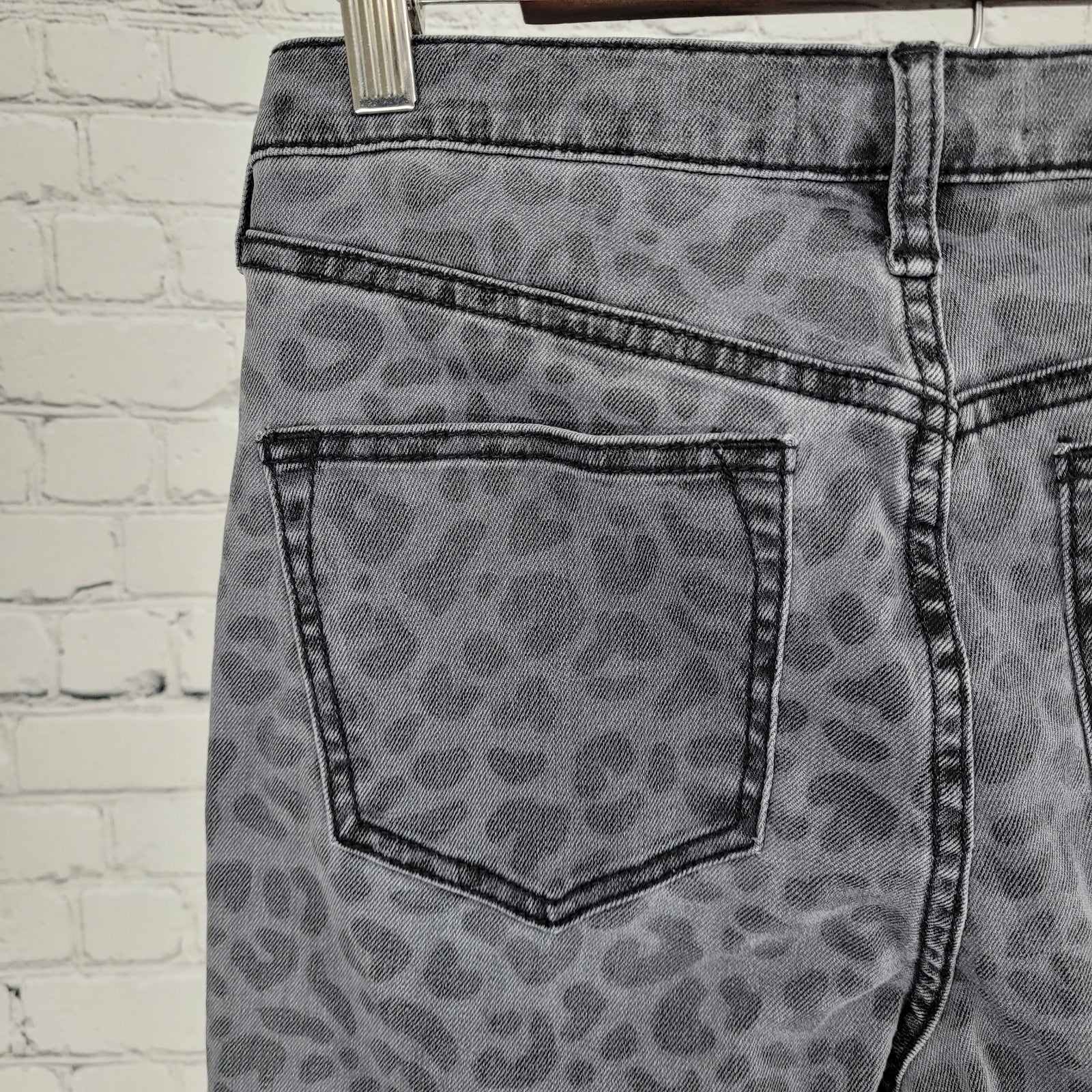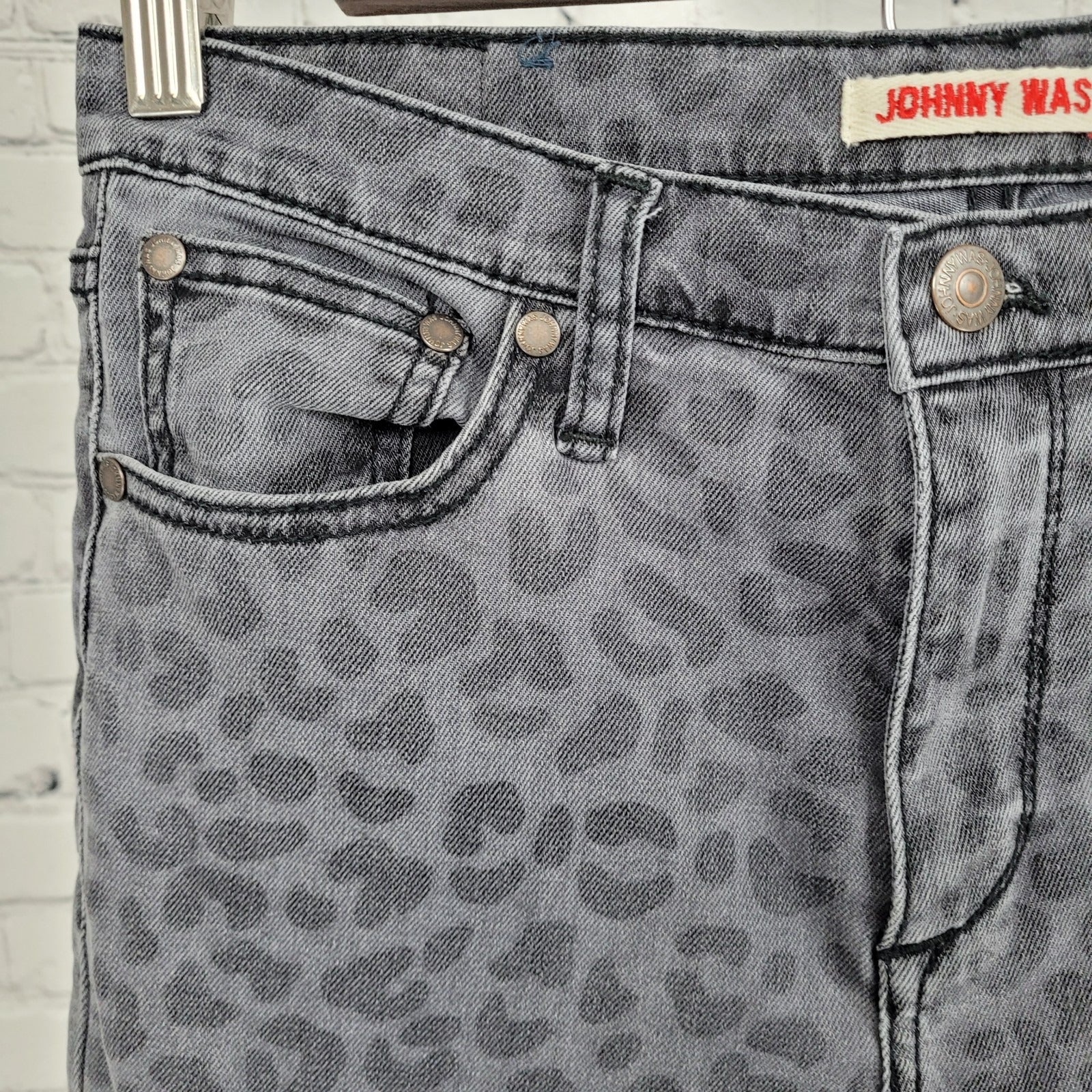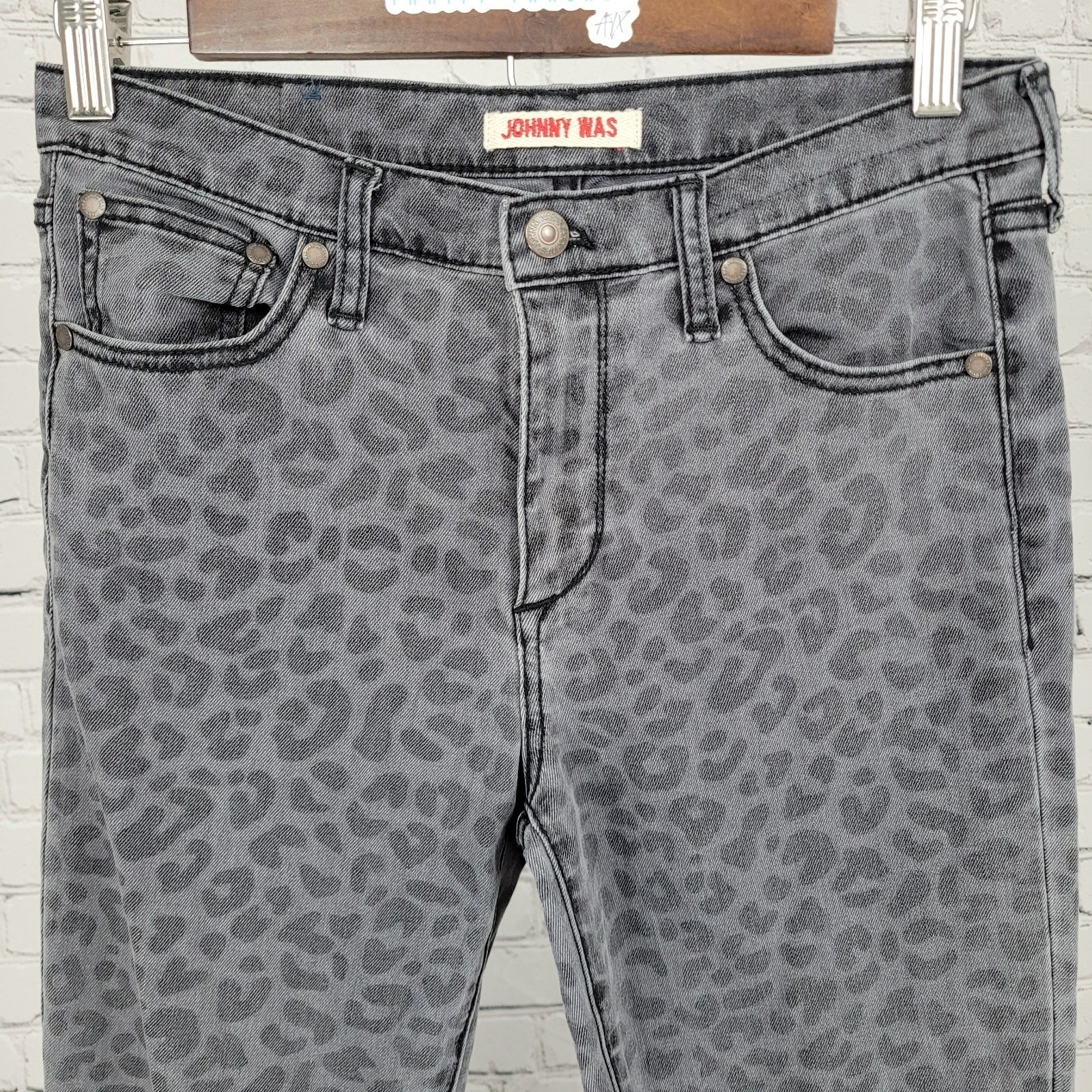 Johnny Was Grey Denim Leopard Mid Rise Skinny Stretch Jeans Size 26 (26x29)