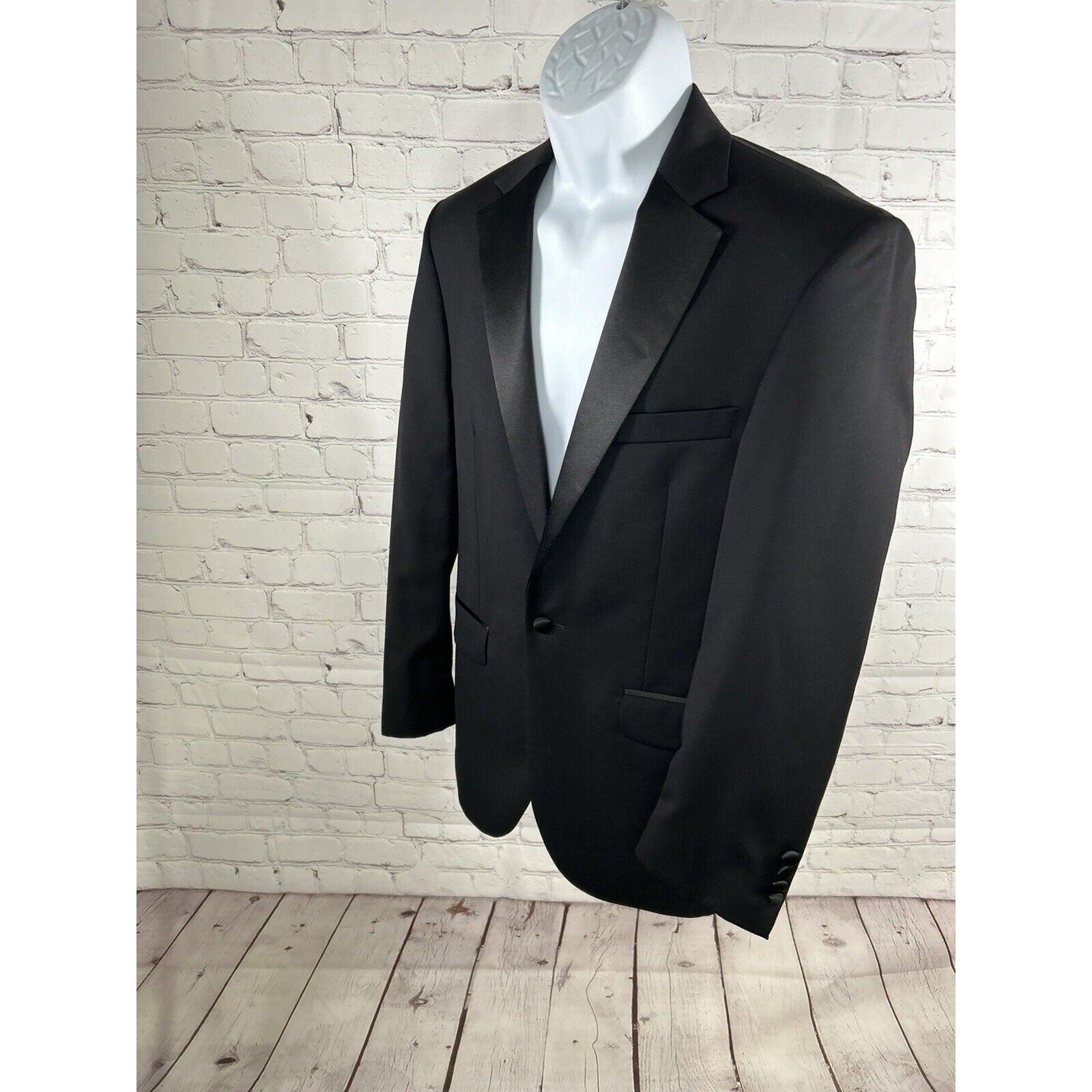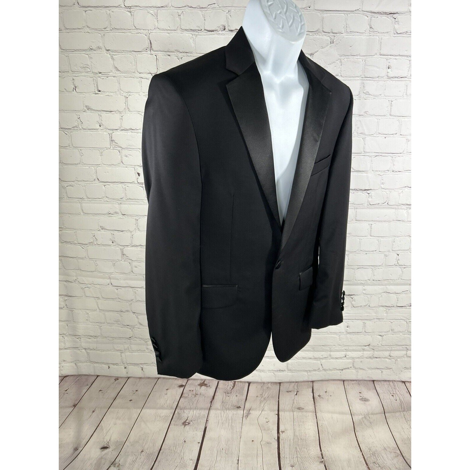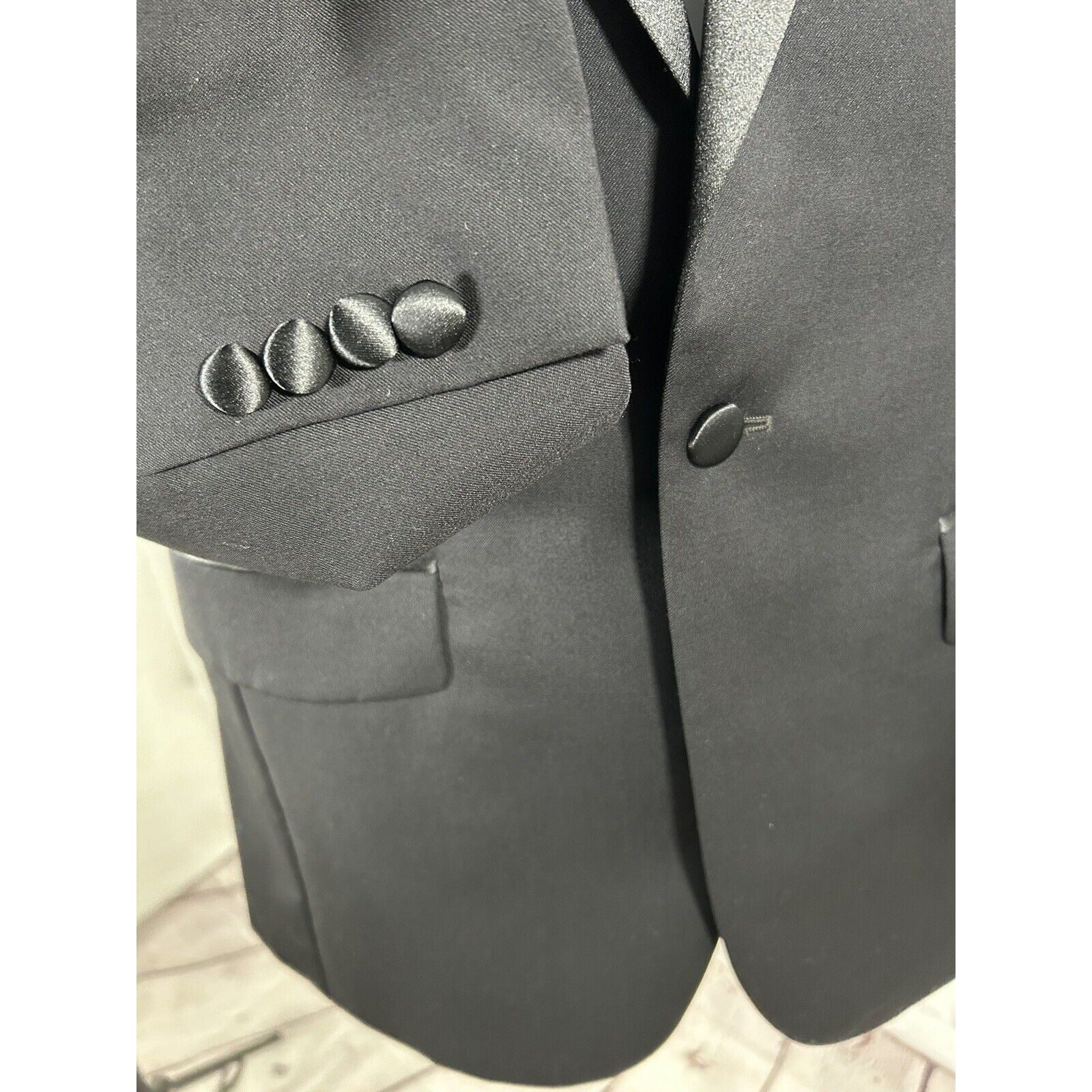 The jacket boasts inner pockets, a double-vented vent style, and a short length. The jacket sleeve button style is four-button, and the fit is regular. This tuxedo jacket is a great addition to your wardrobe and will surely make you stand out at any event.