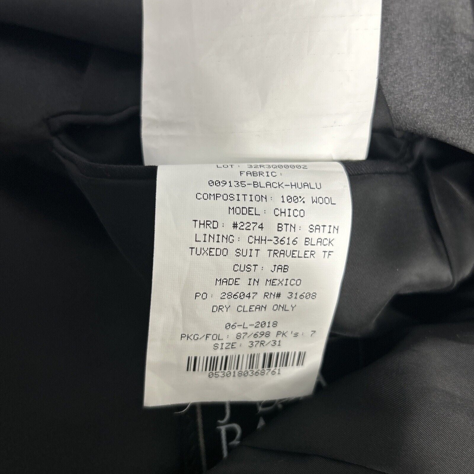 Elevate your formal attire with this Jos. A. Bank Black Chico Tailored Fit Tuxedo Suit Jacket Blazer Coat for Men. This classic piece features a notch lapel style, single-breasted cut, and one-button front button style. The black, solid color and wool material make this a perfect choice for any formal occasion, whether it be a wedding, party, or business event.