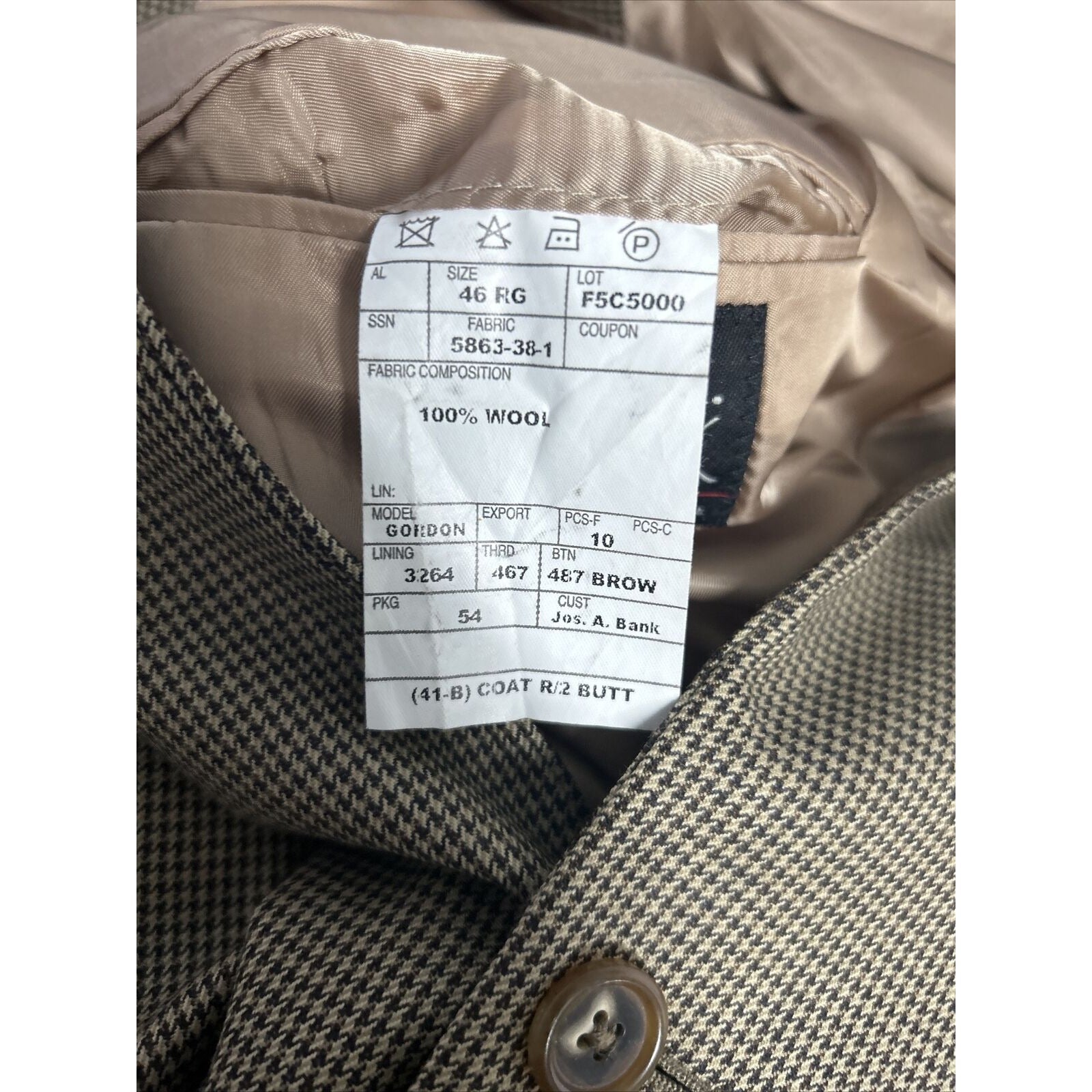 Jos A Bank Brown Houndstooth Two Button Blazer Jacket 100% Wool Men’s 46R *hole
