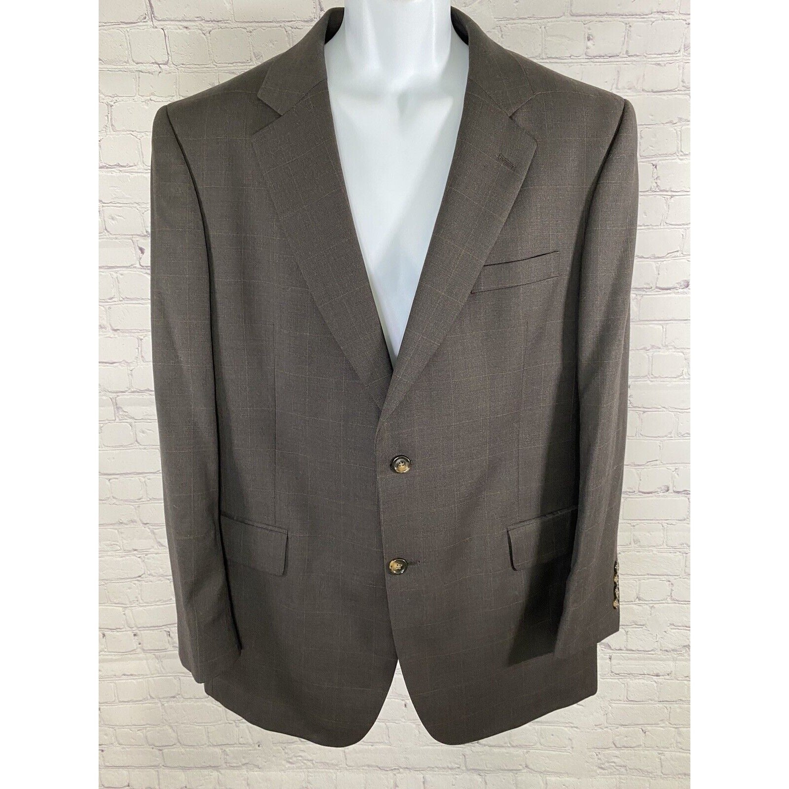 Jos A Bank Chocolate Brown Windowpane Check 2 Button Blazer Jacket Wool 43R.