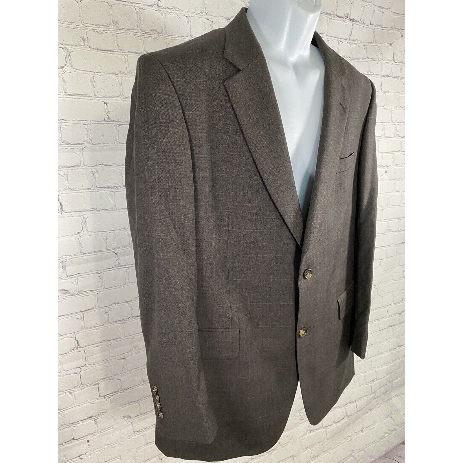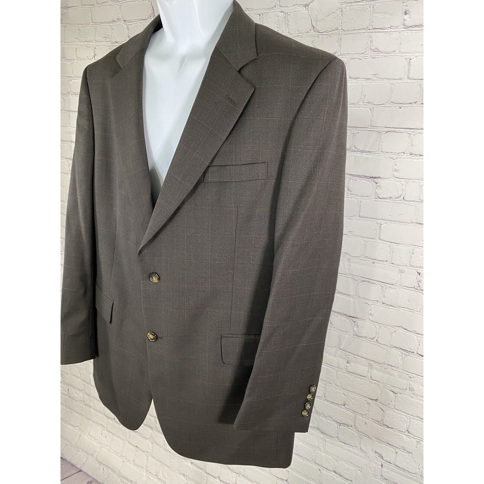 Jos A Bank Chocolate Brown Windowpane Check 2 Button Blazer Jacket Wool 43R