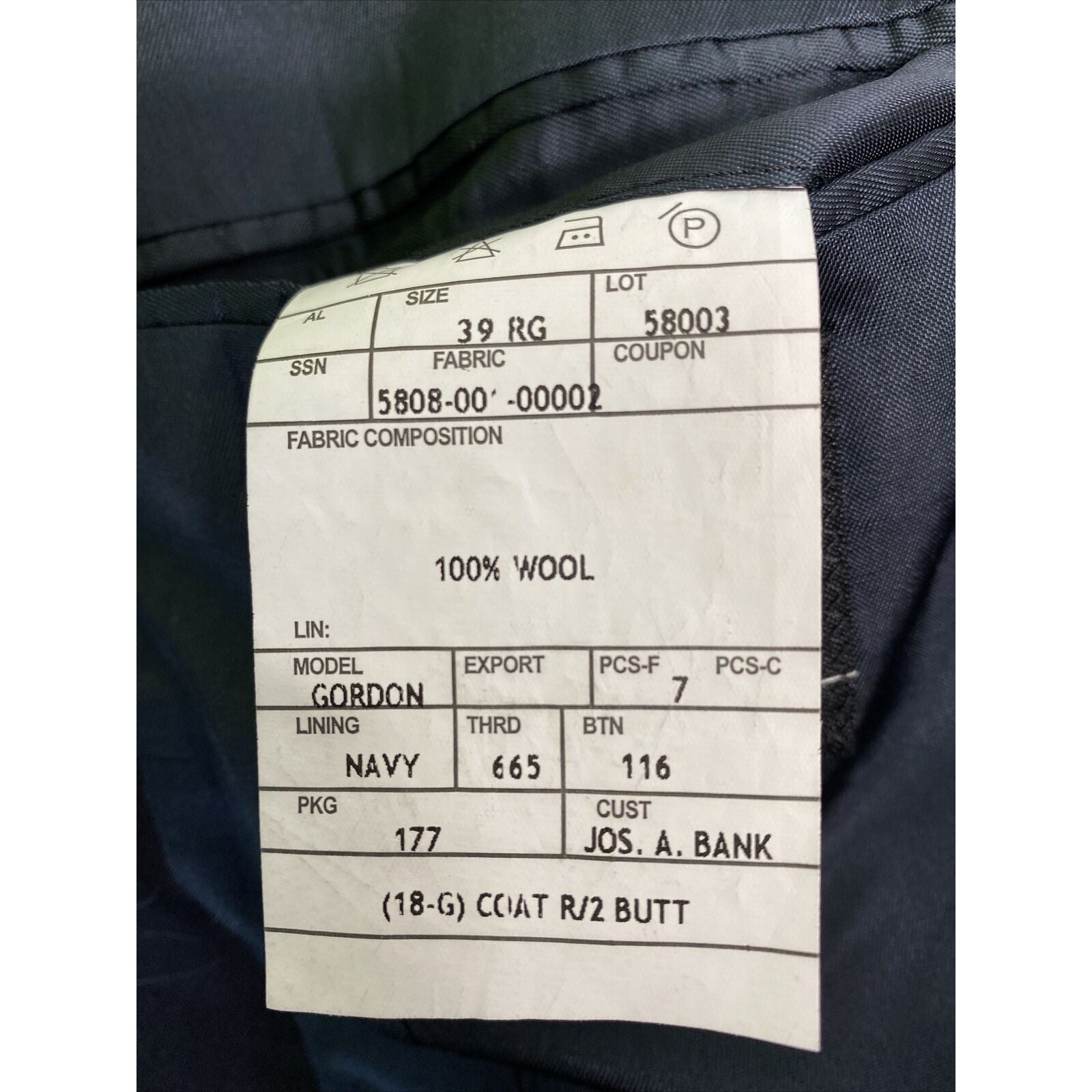 Jos A Bank Gordon Solid Black 100% Wool 2 Button Jacket Blazer 39R.