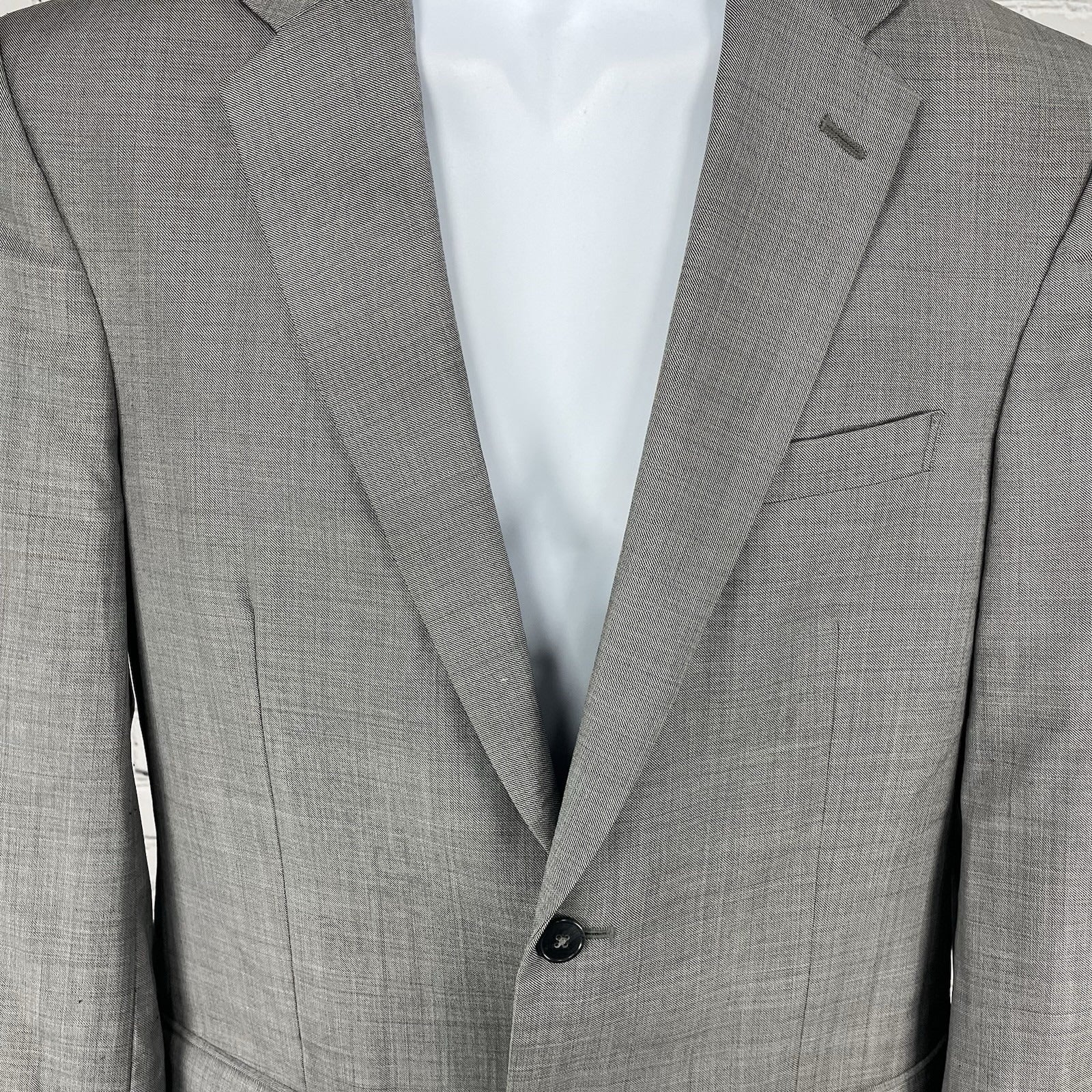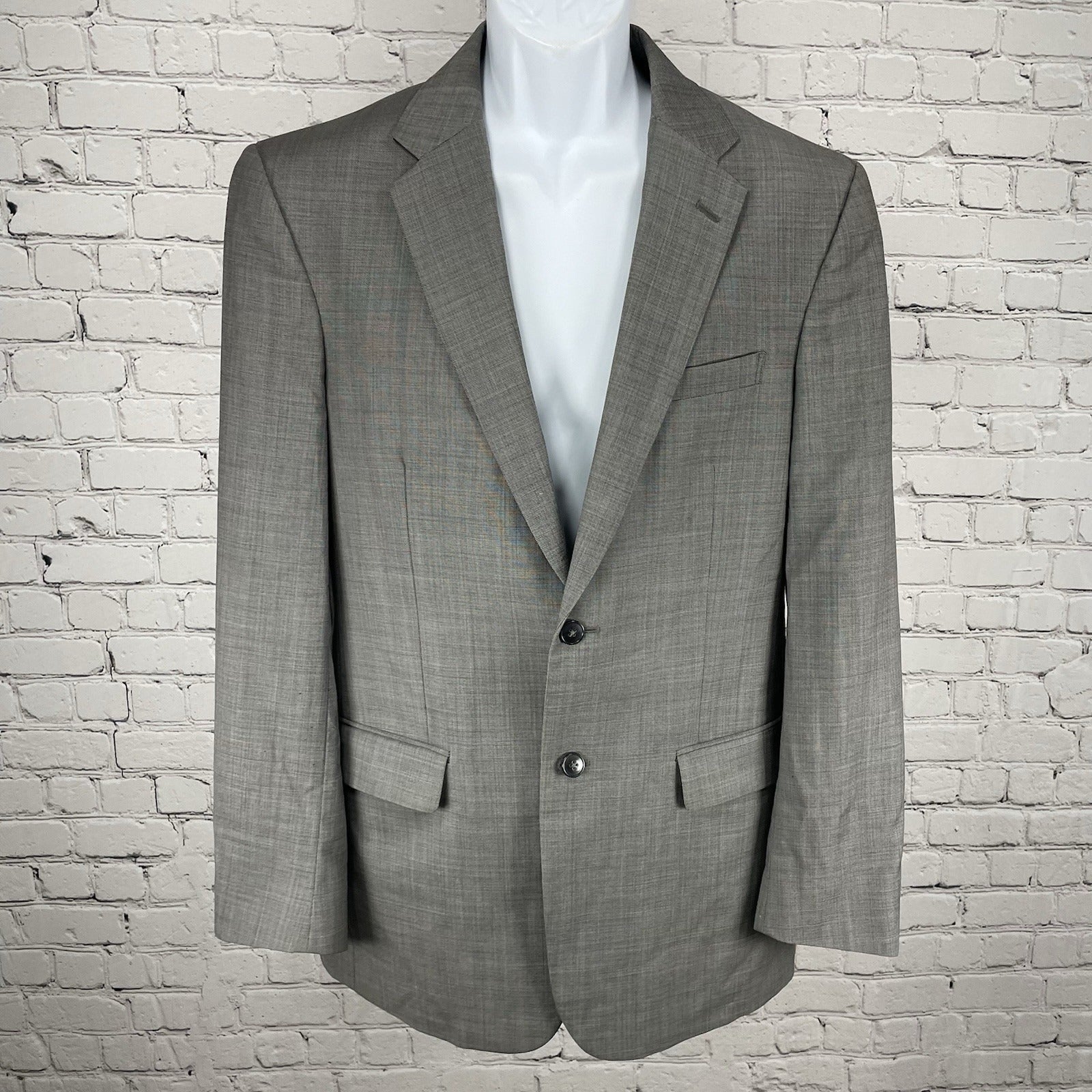 Craft a sophisticated and timeless silhouette with the Jos. A. Bank Tailored Fit Travelers Collection Blazer. In a versatile gray hue, this men's size 40 regular sport coat offers a classic notch lapel style and a sleek single-breasted front with a two-button closure. The wool fabric ensures warmth and comfort, making it ideal for all seasons, from the brisk fall days to mild spring evenings.