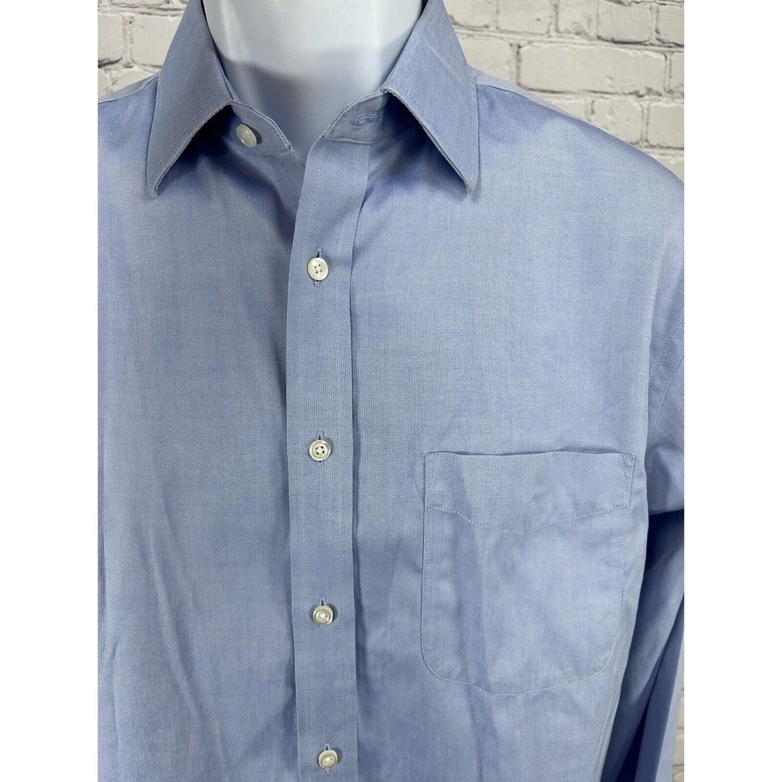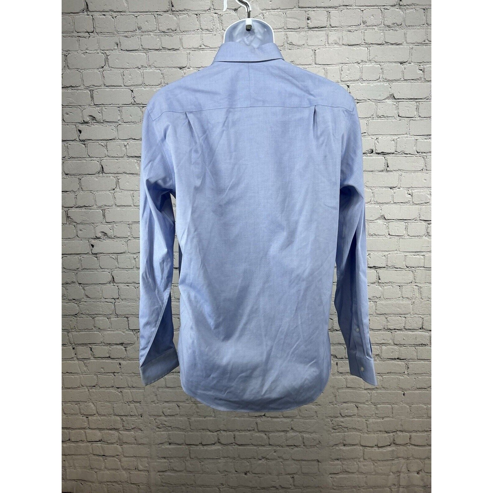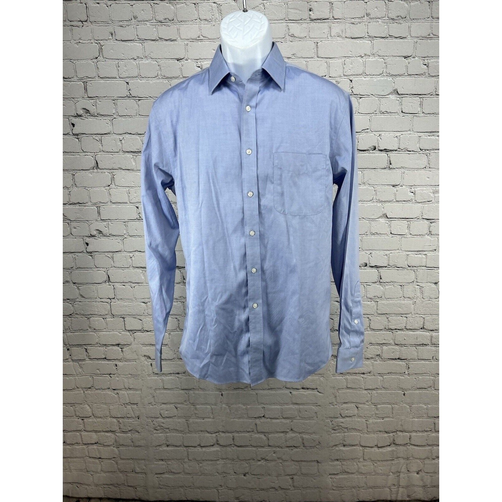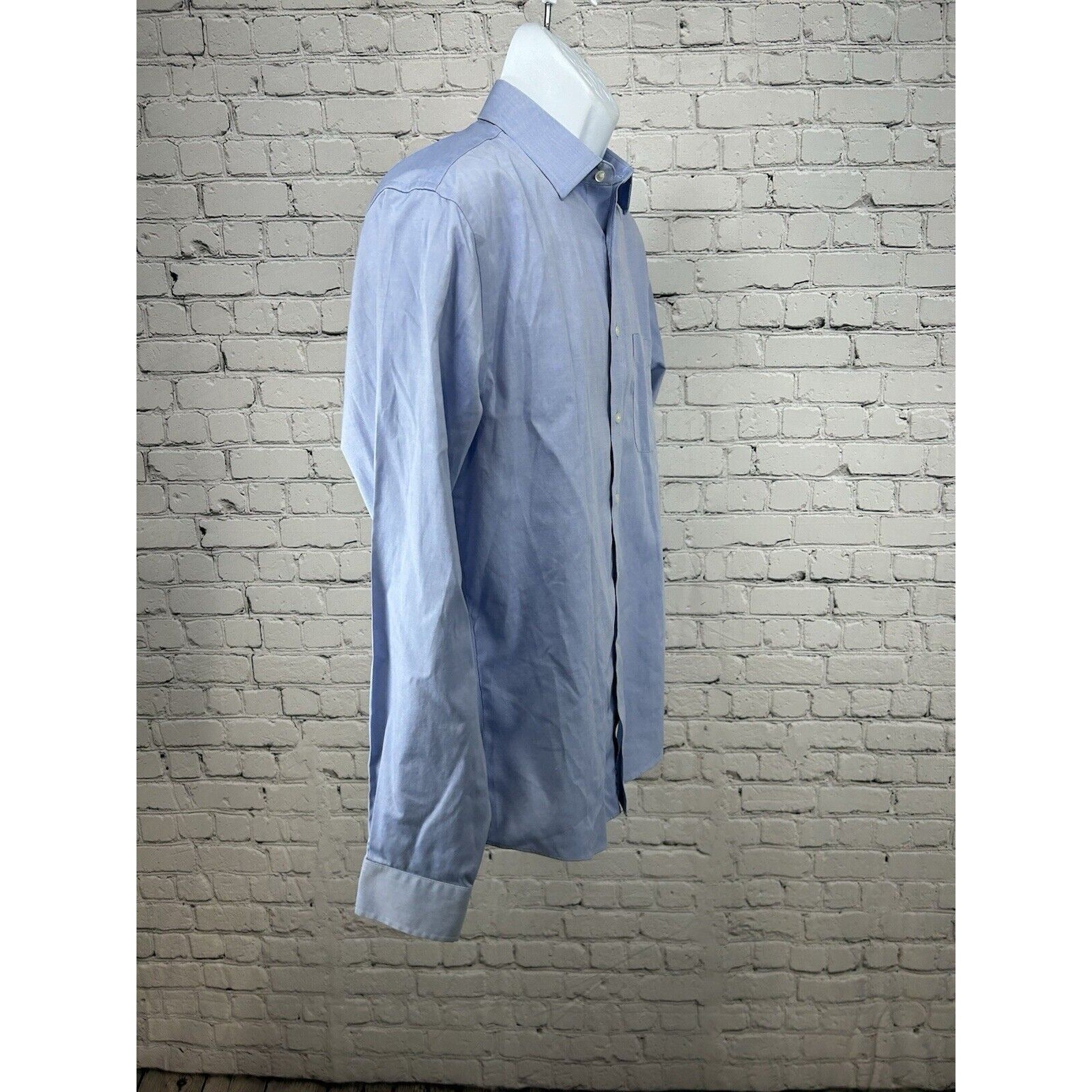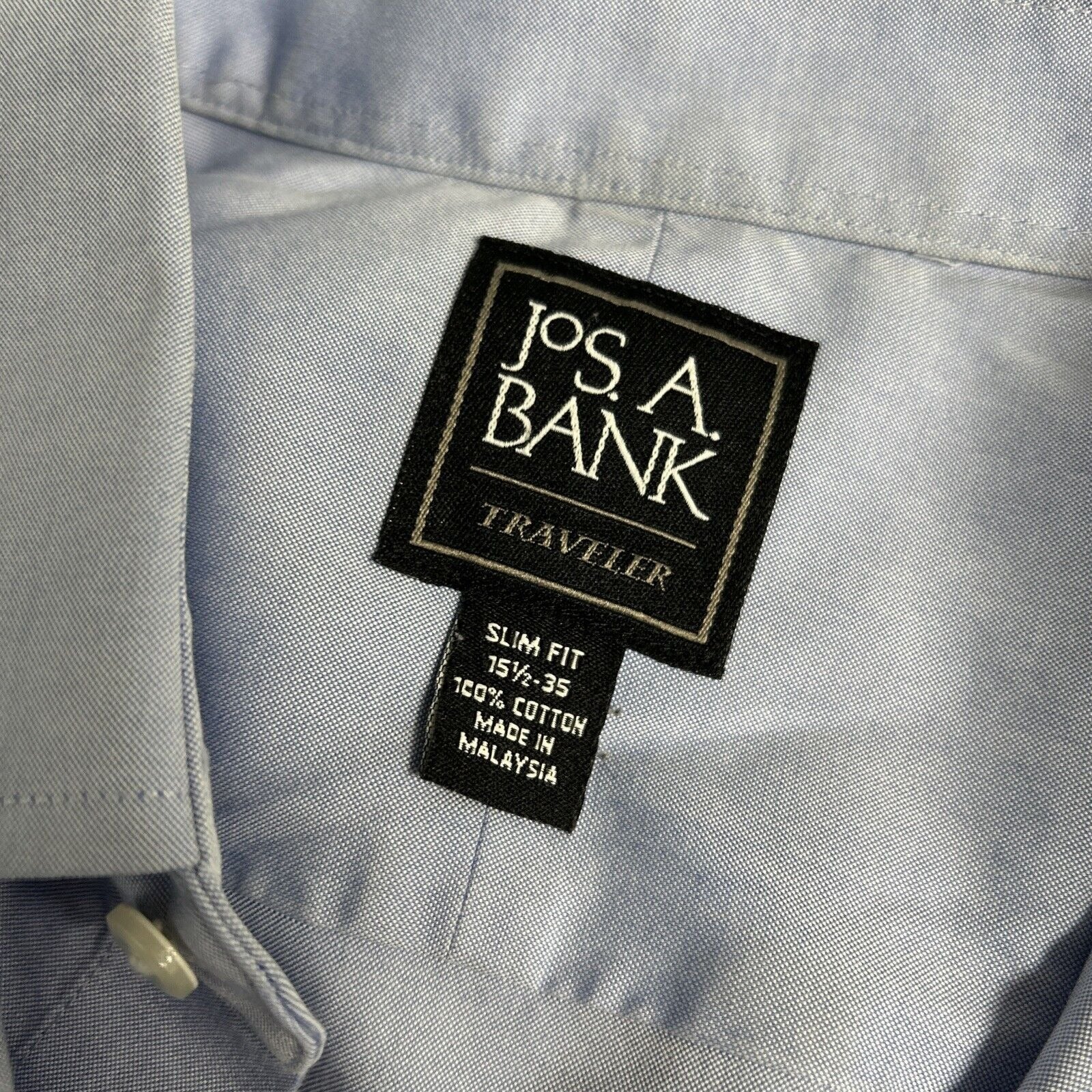 Jos A Bank Traveler Slim Fit Solid Blue 100% Cotton Long Sleeve Button Up L