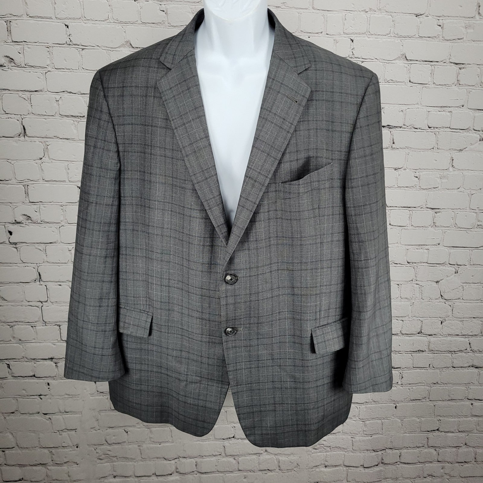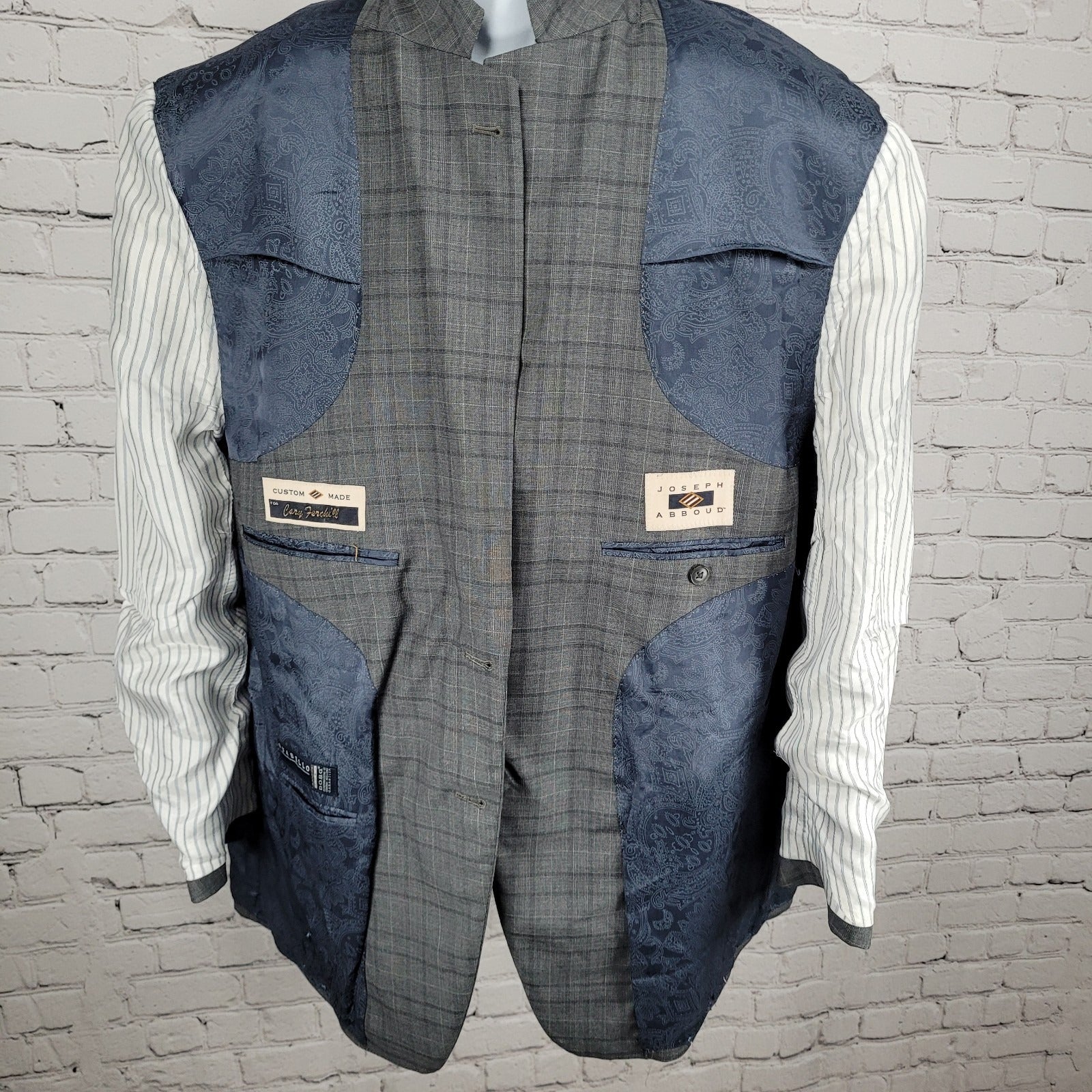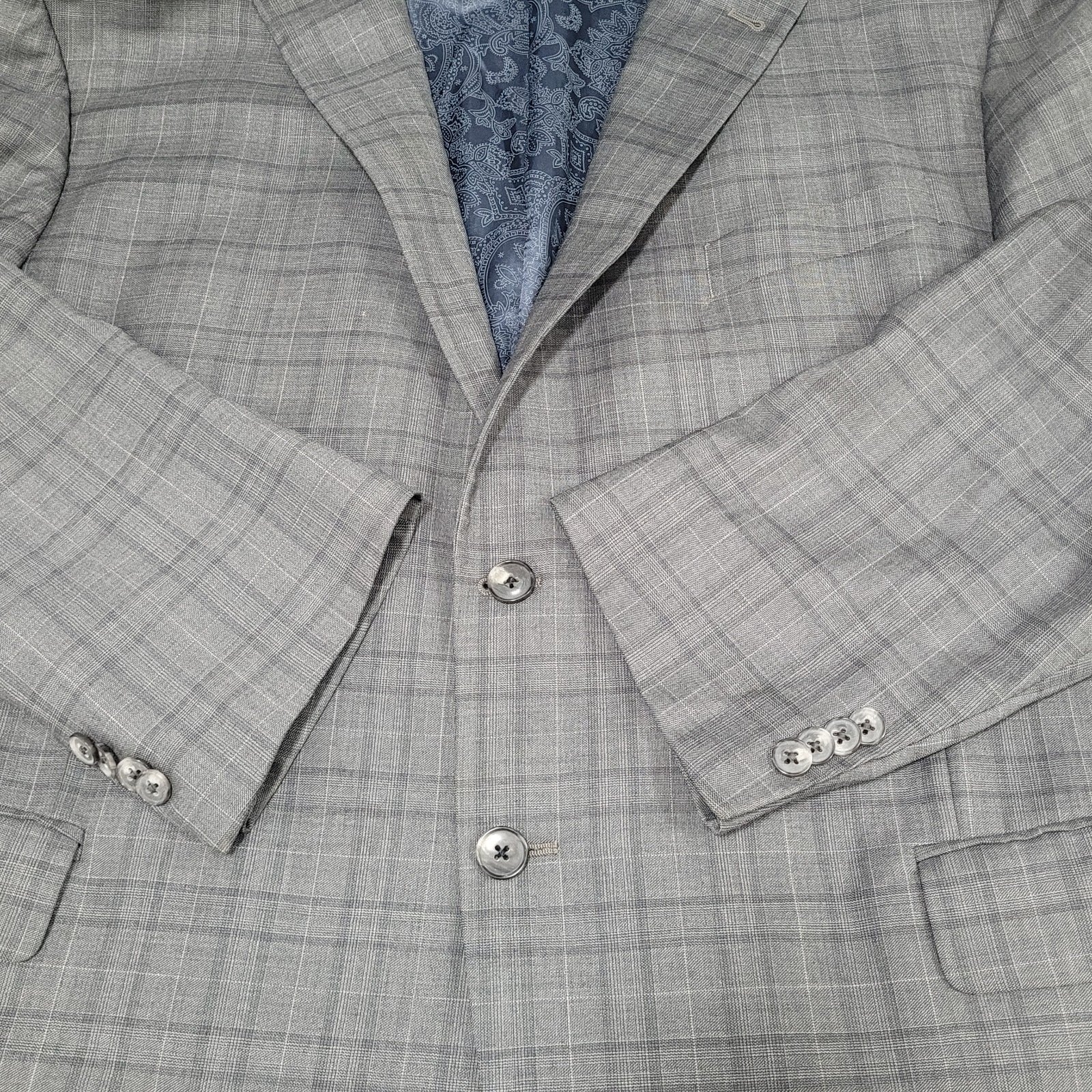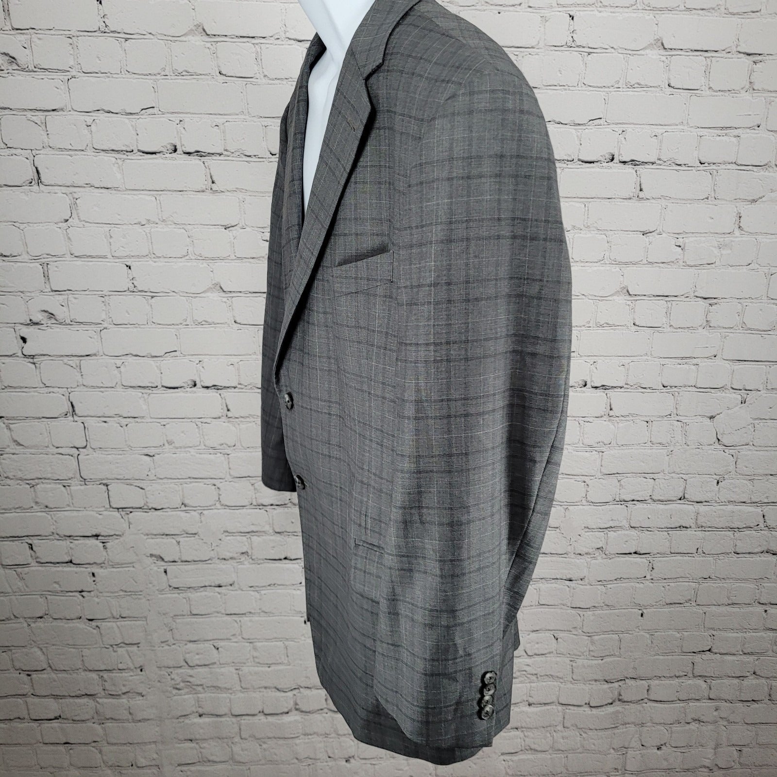 Joseph Abboud Guabello Grey 100% Wool Check Blazer Sport Coat USA Made Size 46S