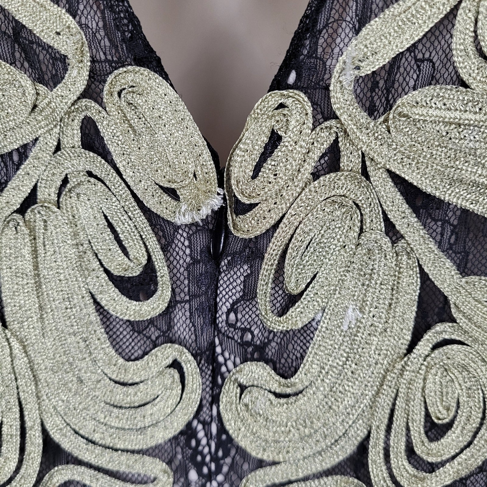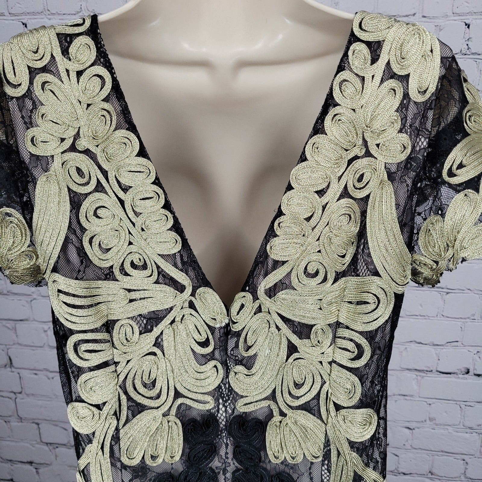 JS Collections Black Gold Overlay Lace Short Sleeve Lined Long Formal Dress 12