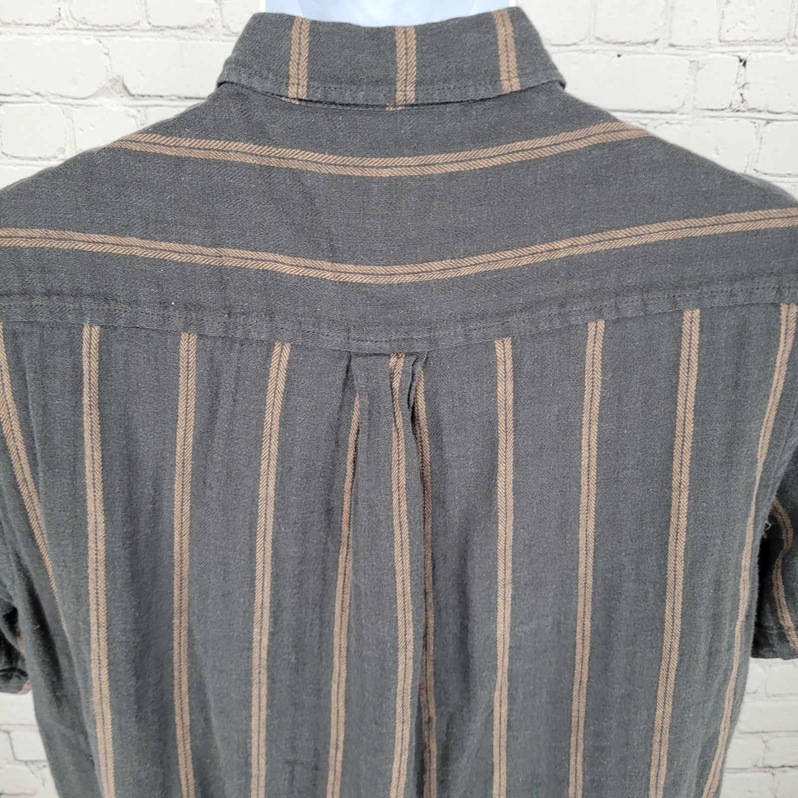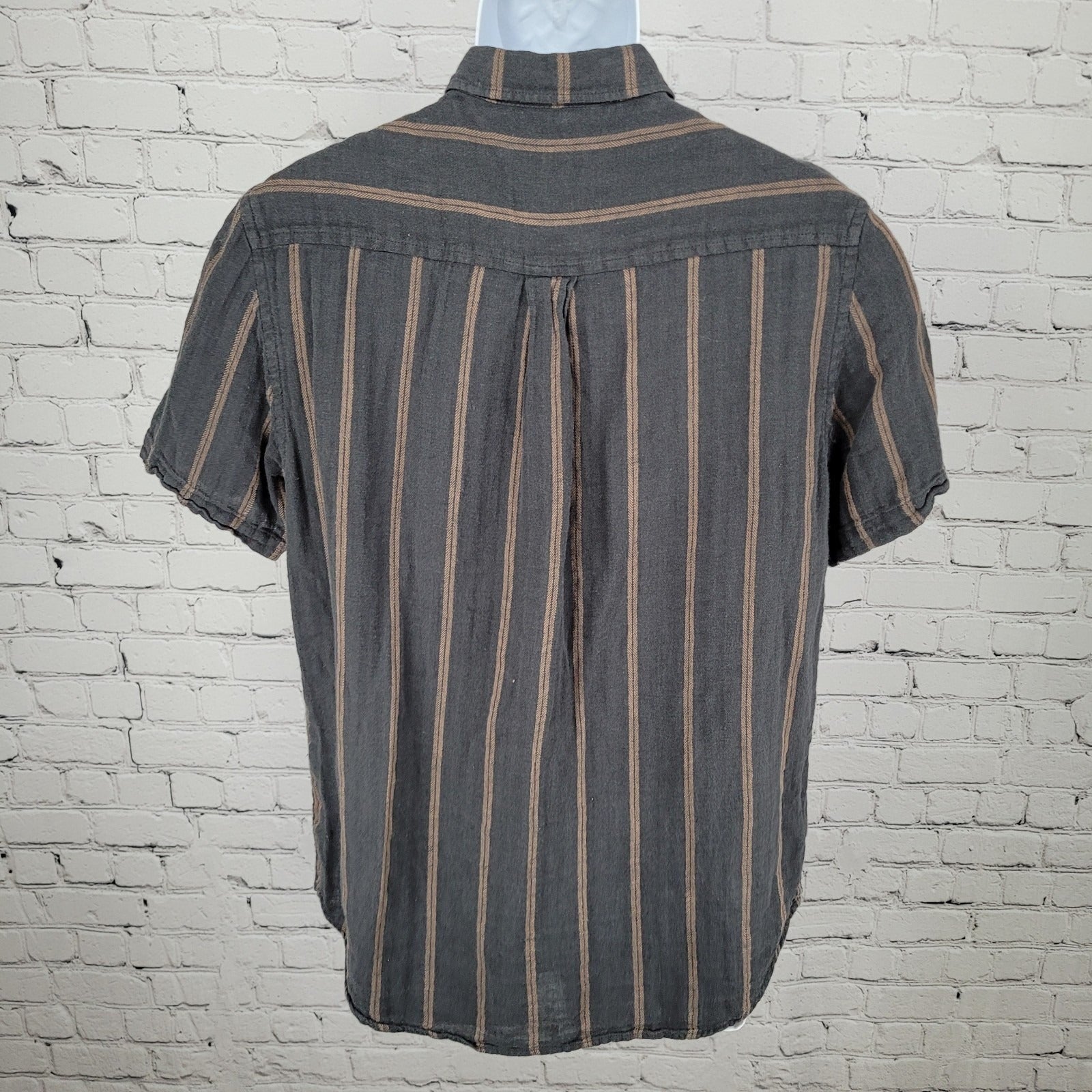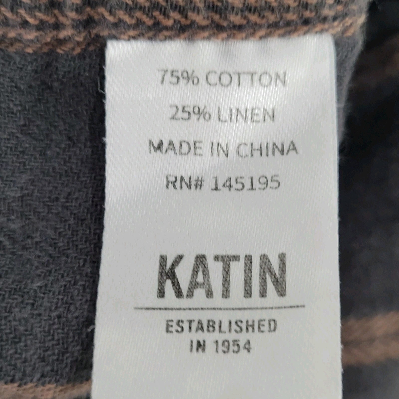 Katin Grey Brown Striped Cotton Linen Blend Button Up Shirt Size MD Medium