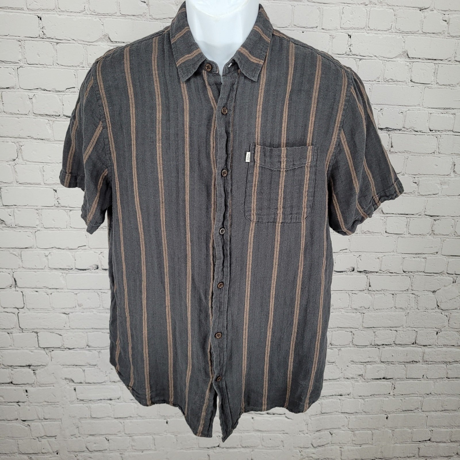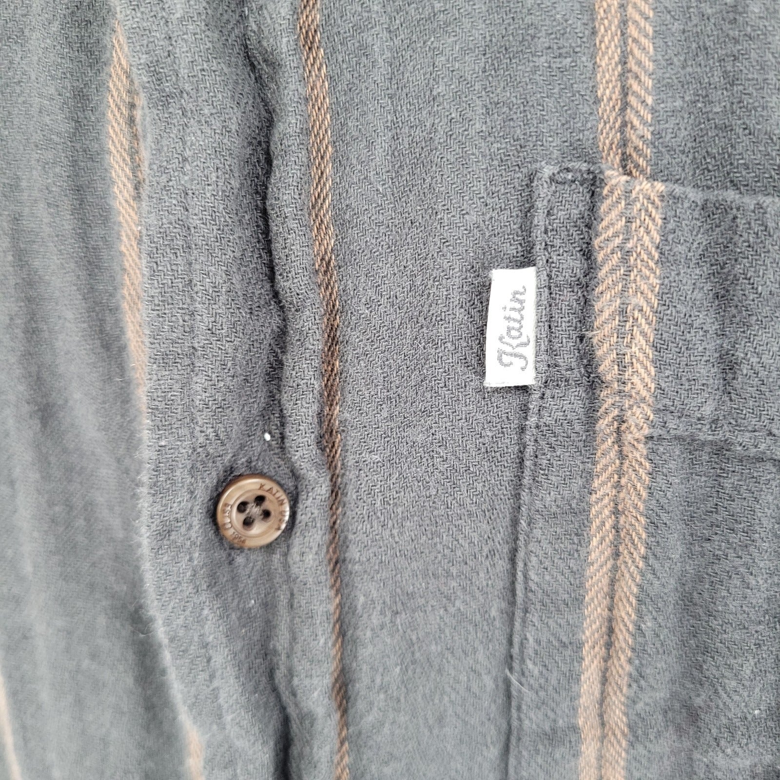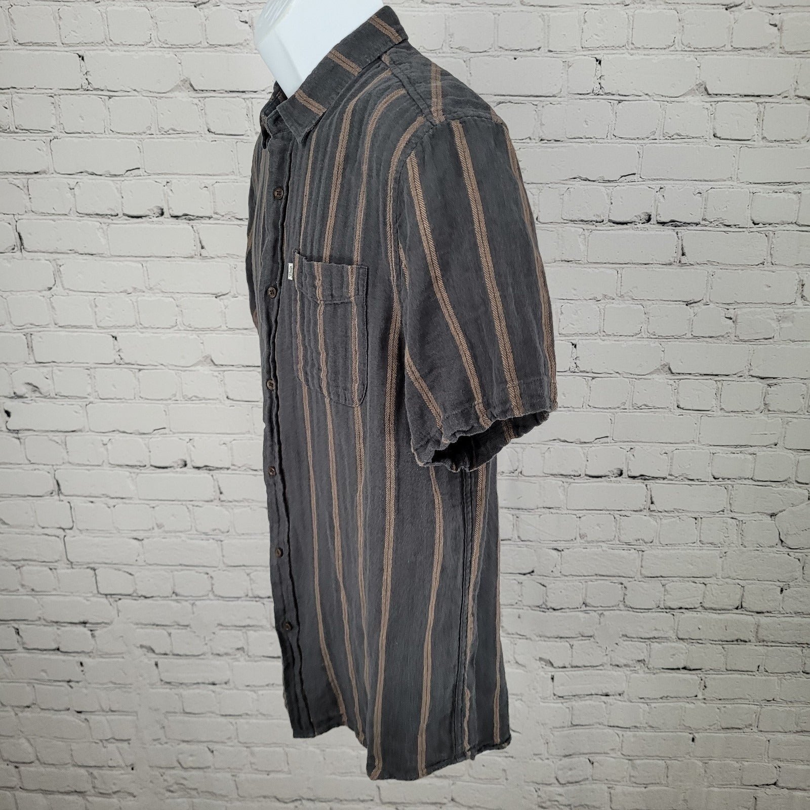 Katin Grey Brown Striped Cotton Linen Blend Button Up Shirt Size MD Medium